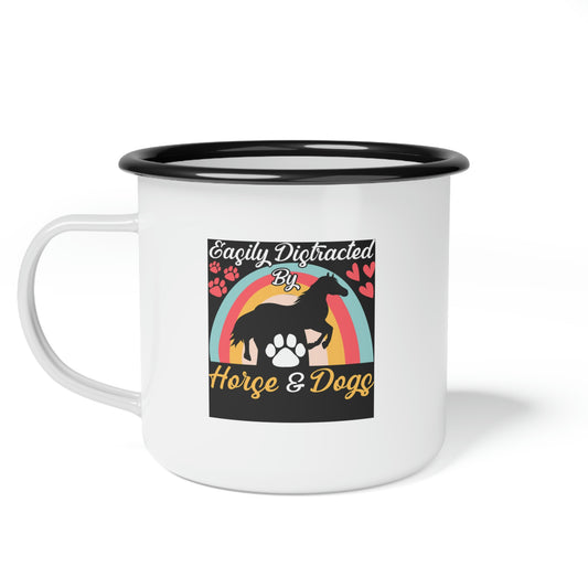 Easily Distracted Horse by Dogs Black Enamel Camp Cup