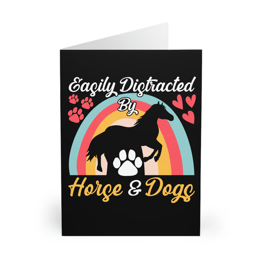 Easily Distracted by Horse and Dogs Greeting Cards (5 Pack)