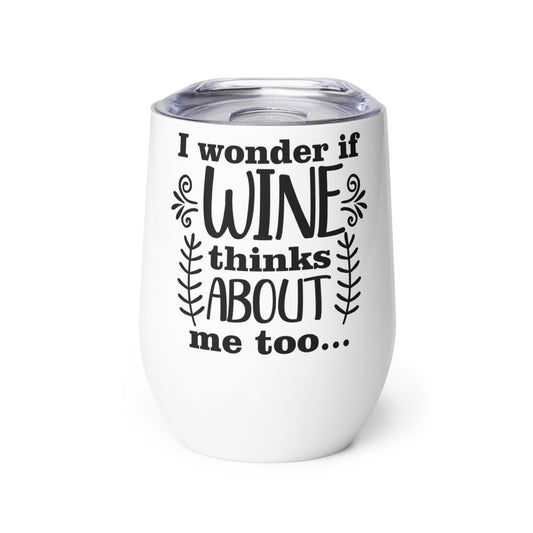 I Wonder if Wine Thinks About Me Too Wine tumbler