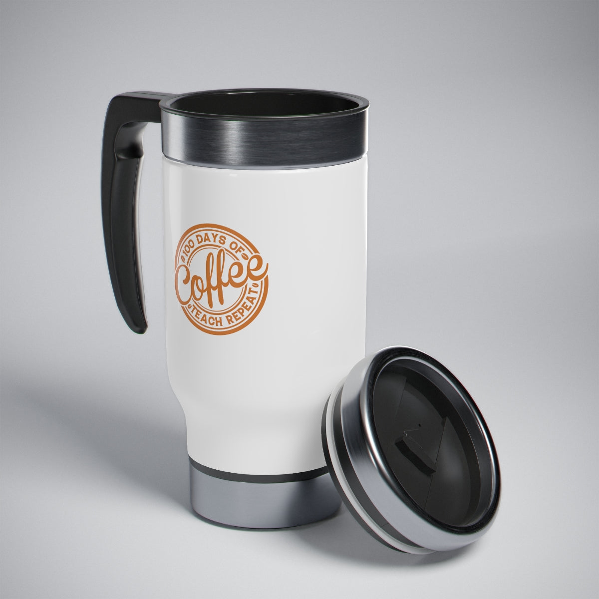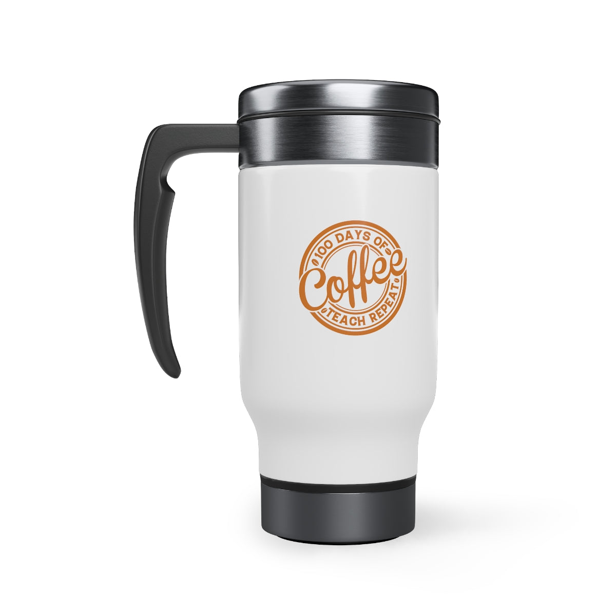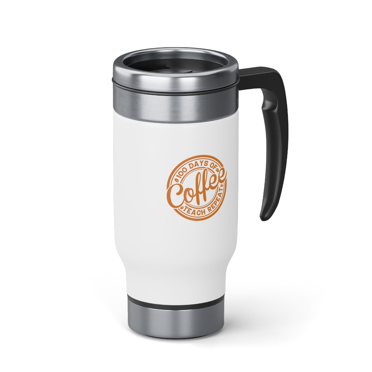 100 Days of Coffee Teach Repeat Stainless Steel Travel Mug with Handle, 14oz