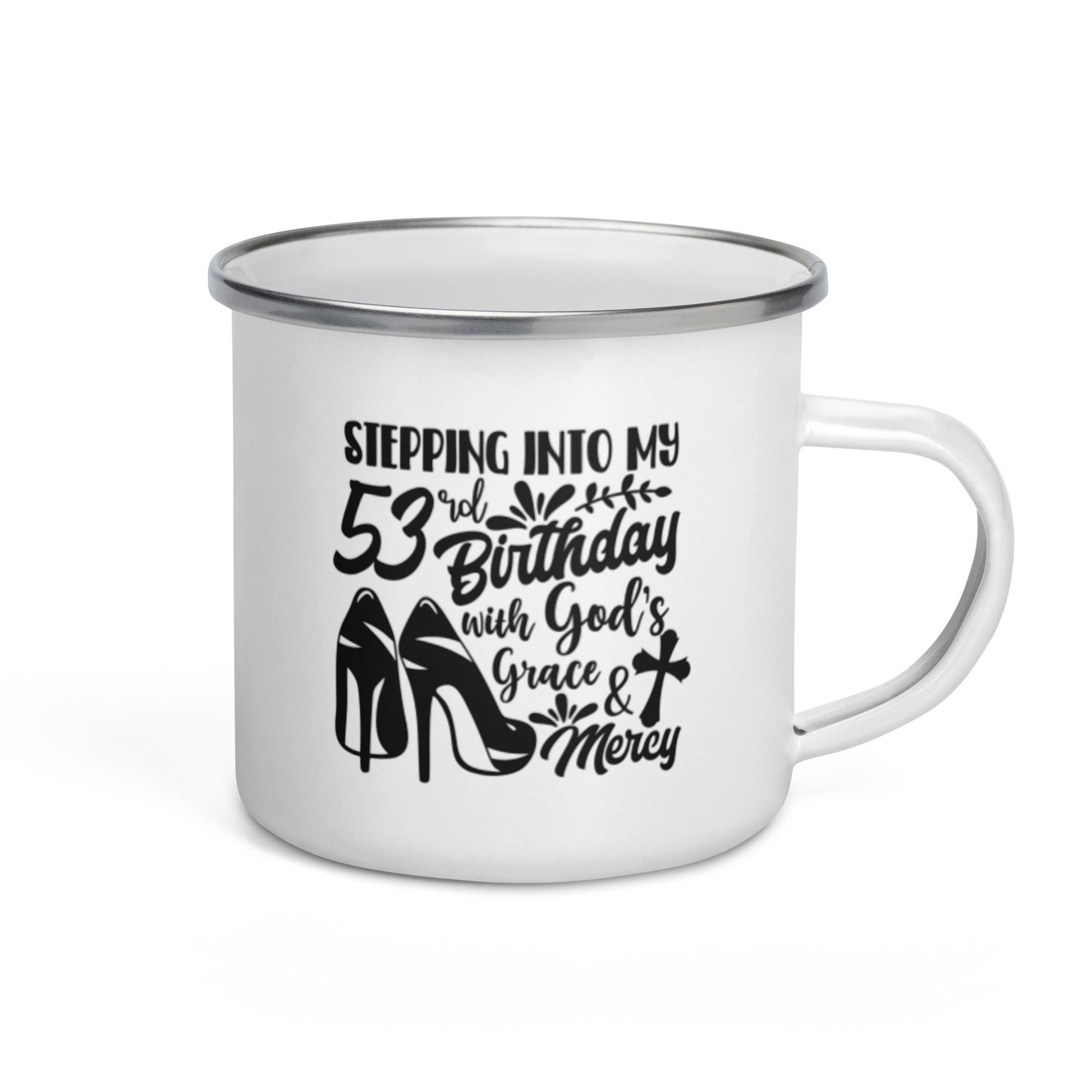 Stepping Into My 53rd Birthday w God's Grace & Mercy Enamel Mug