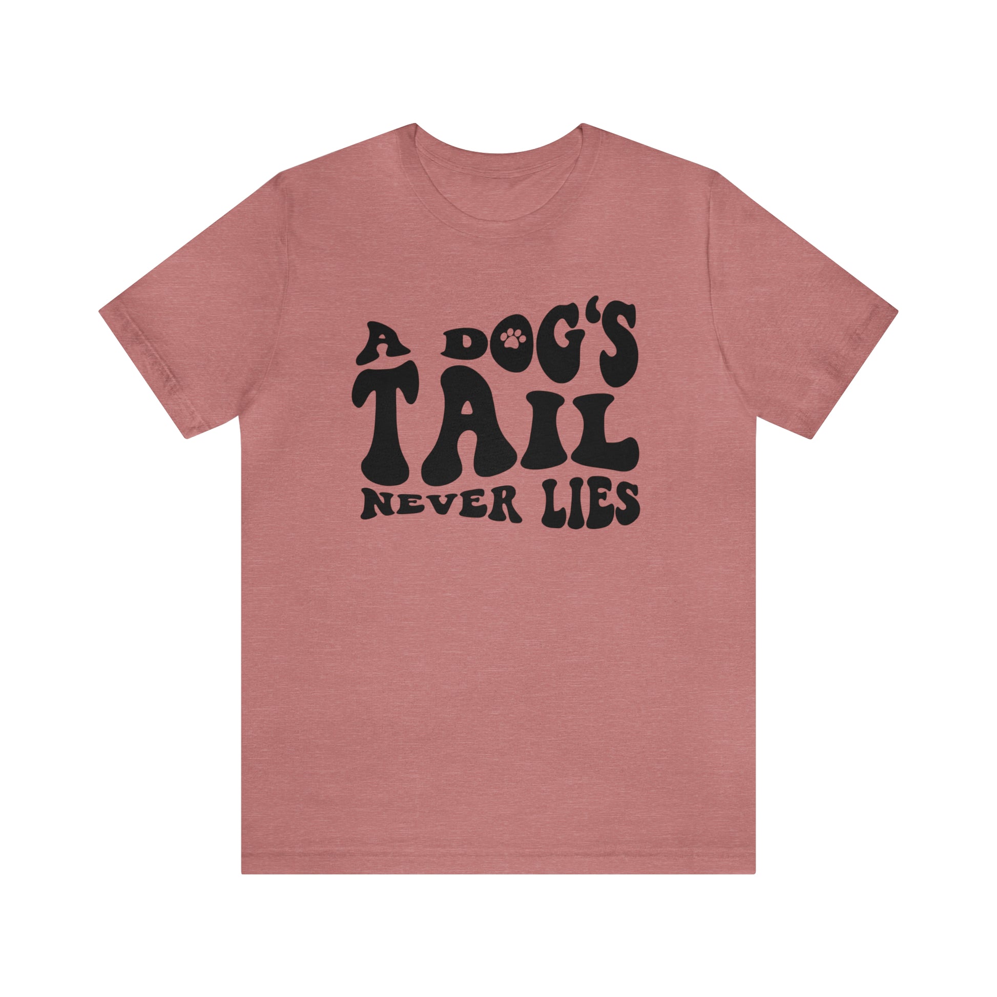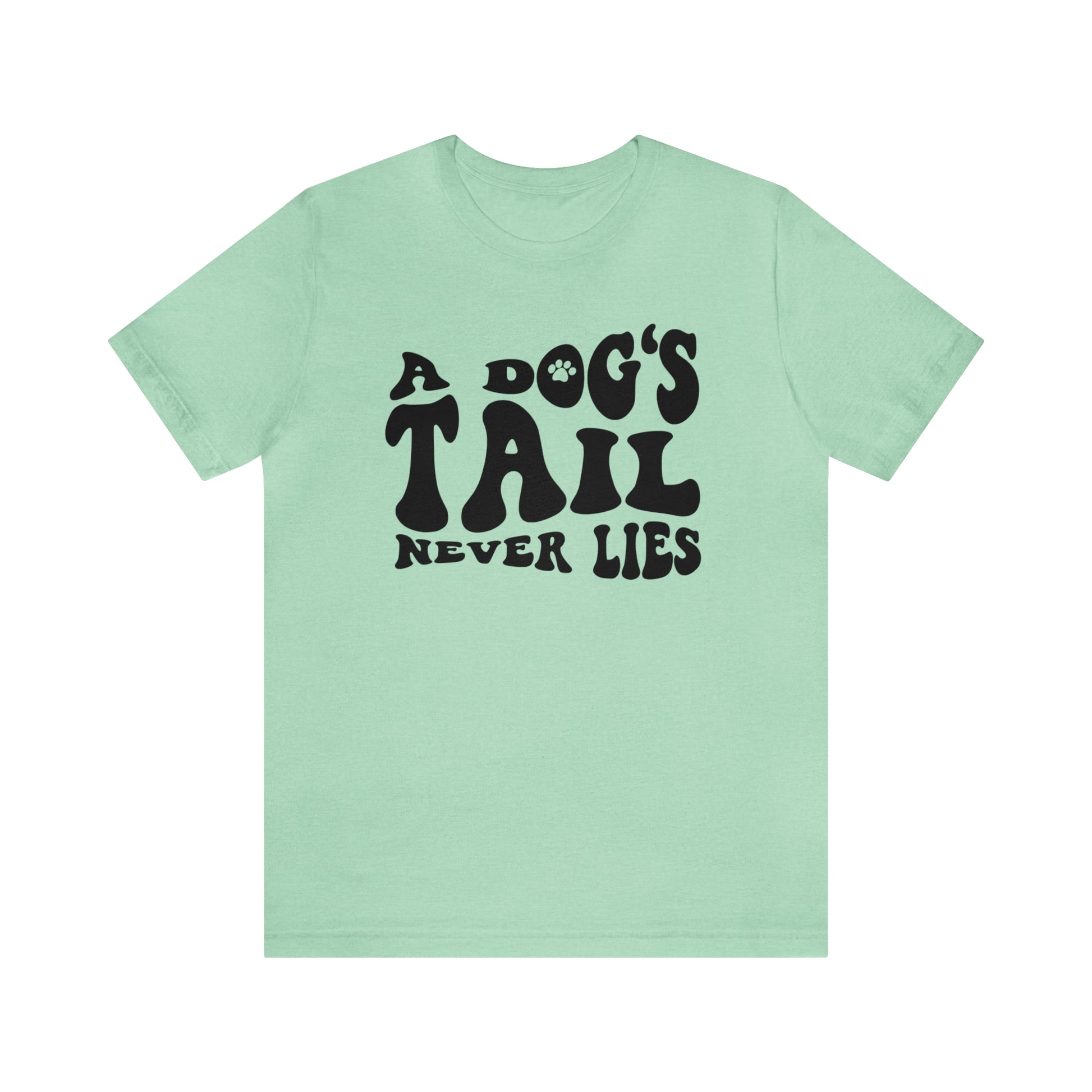 This classic unisex short sleeve dog t-shirt reads A Dog's Tail Never Lies. This tee fits like a well-loved favorite. Soft cotton and quality print make you fall in love with it over and over again. These t-shirts have ribbed knit collars to bolster shaping. The shoulders have taping for better fit over time. Dual side seams hold the garment's shape for longer.
