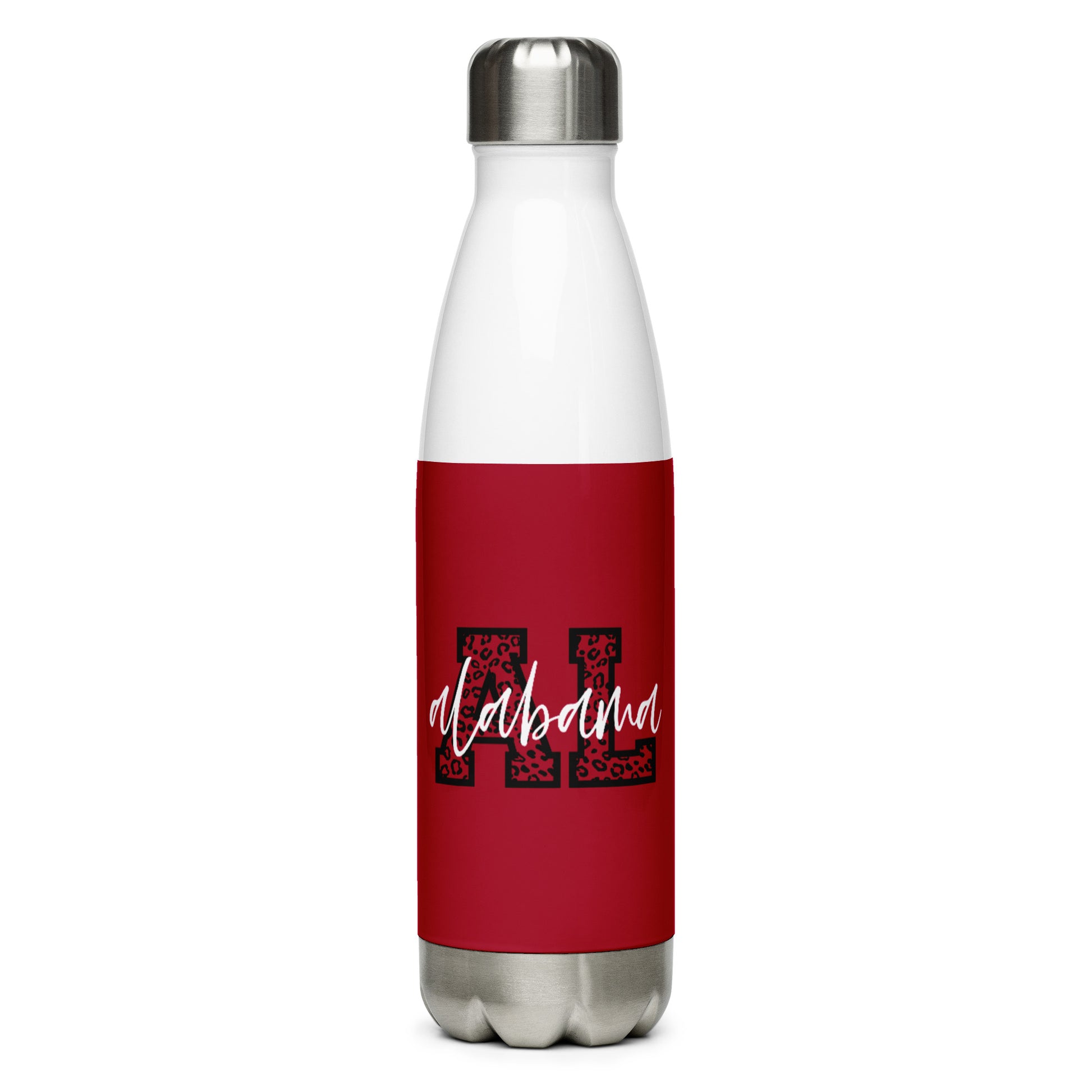 Alabama Script on Leopard AL Stainless Steel Water Bottle