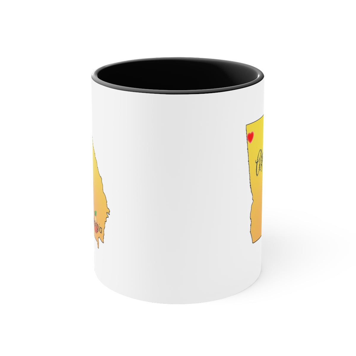 Add some color to your routine with this two-tone, custom accent coffee mug. This 11oz mug features an accented C-Handle that is comfortable to use, as well as an accented interior to add more contrast and character.