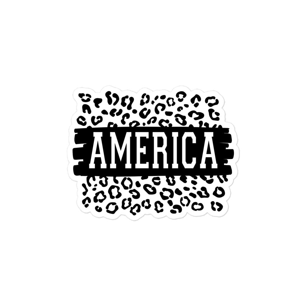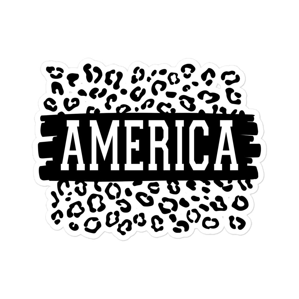 This sticker shows America on a black leopard print background. Perfect for the American patriot to show their love of country.