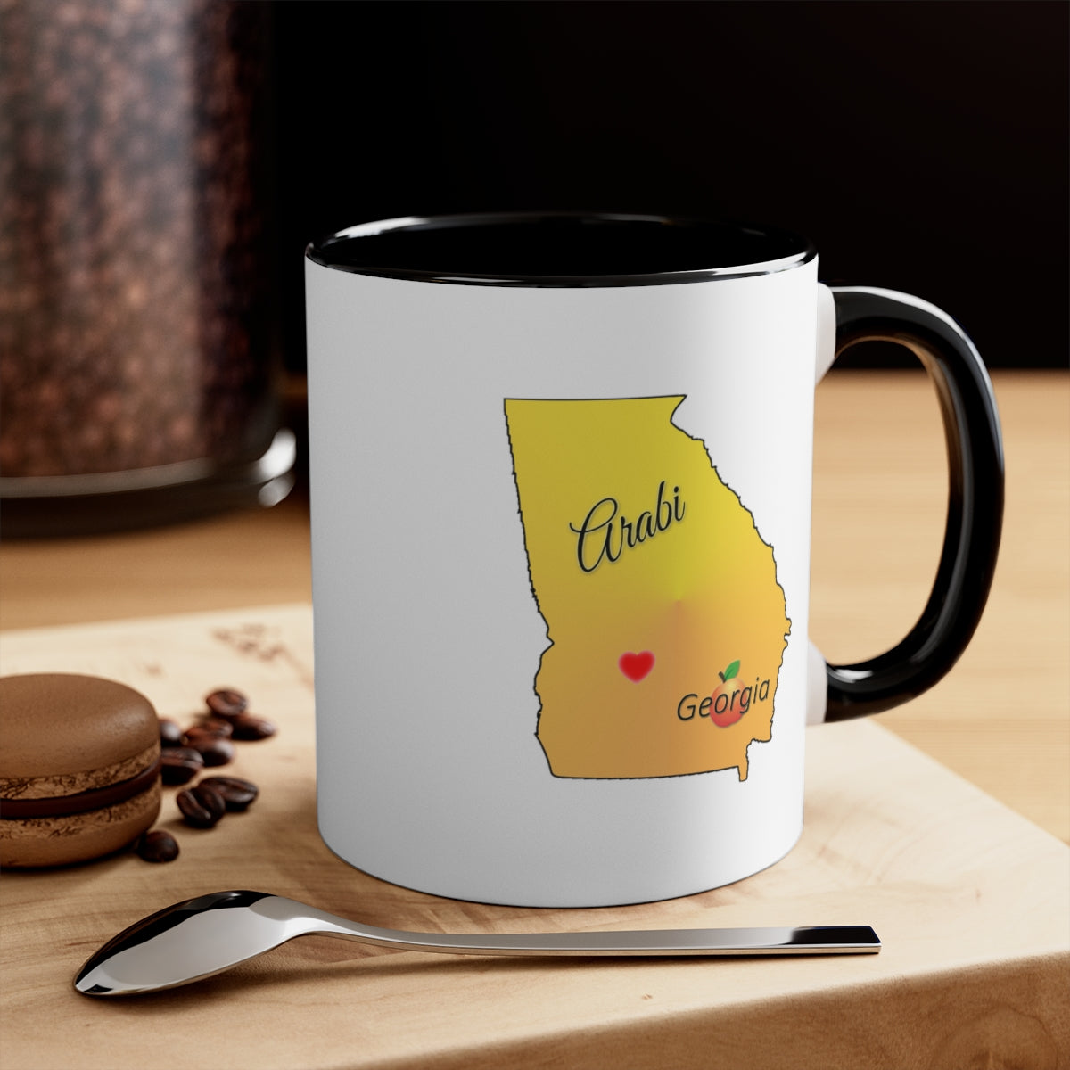 Add some color to your routine with this two-tone, custom accent coffee mug. This 11oz mug features an accented C-Handle that is comfortable to use, as well as an accented interior to add more contrast and character.