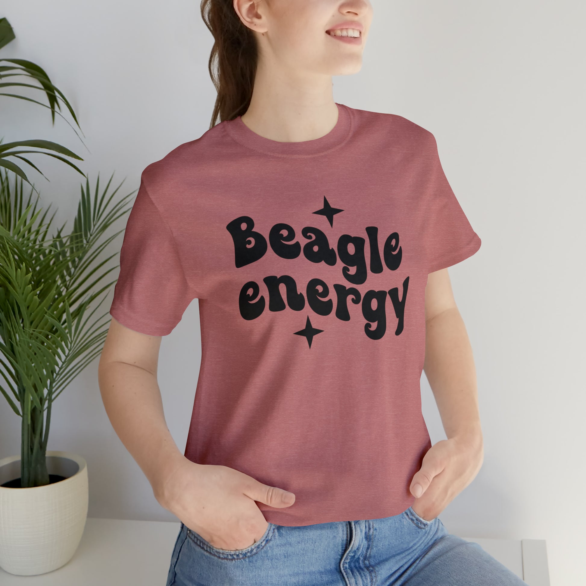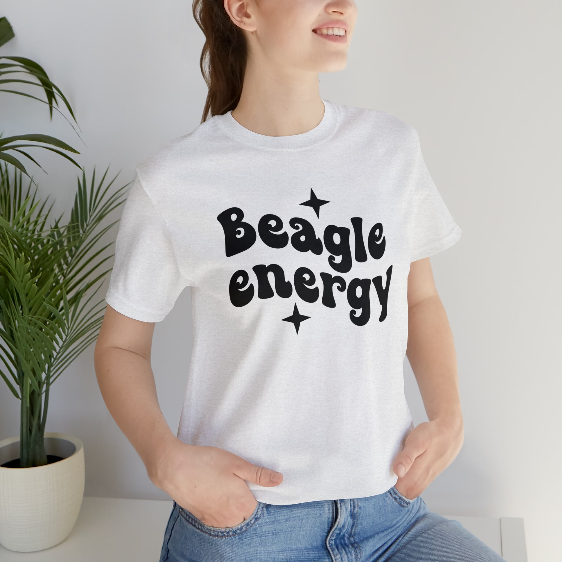 This classic unisex short sleeve dog t-shirt reads Beagle Energy. This tee fits like a well-loved favorite. Soft cotton and quality print make you fall in love with it over and over again. These t-shirts have ribbed knit collars to bolster shaping. The shoulders have taping for better fit over time. Dual side seams hold the garment's shape for longer.