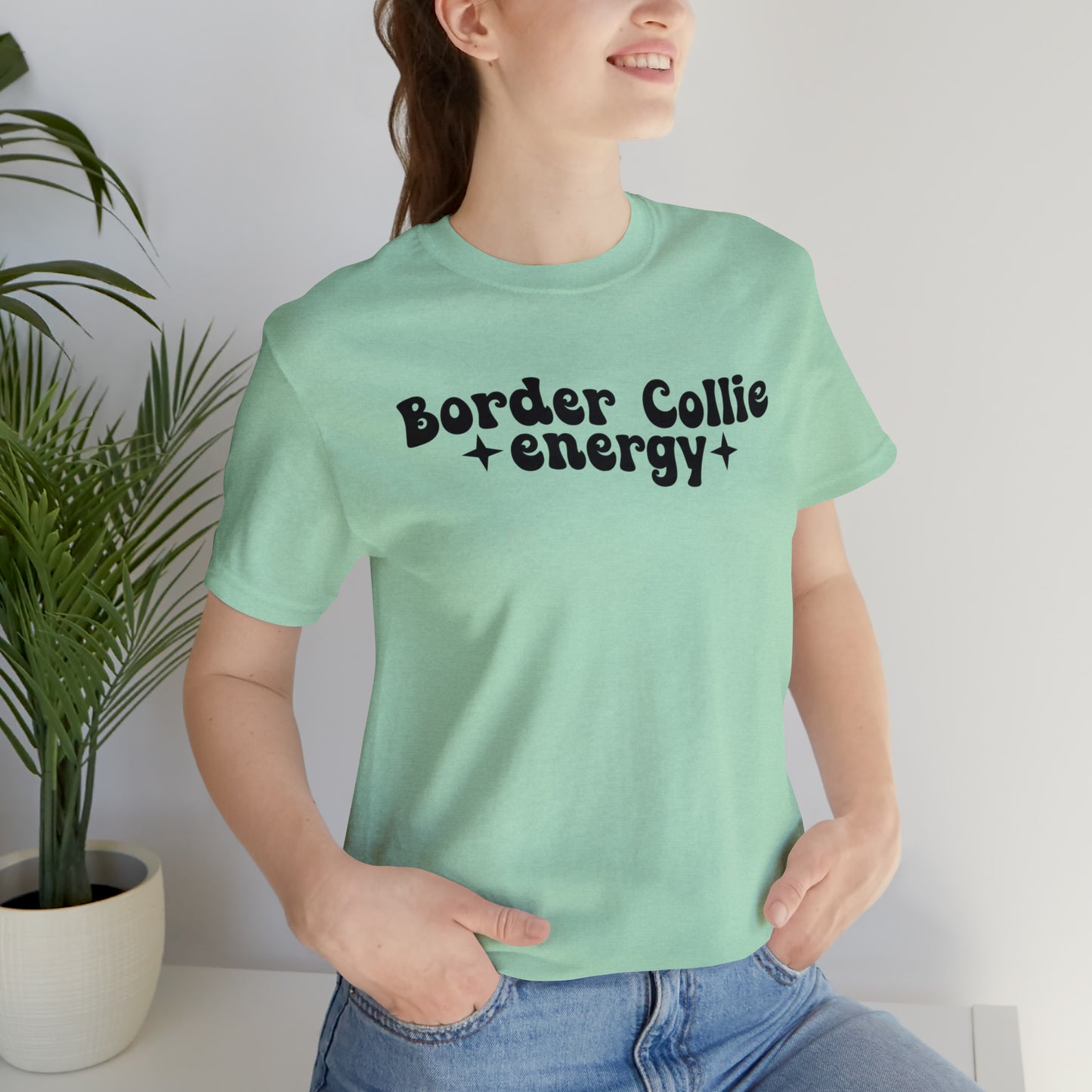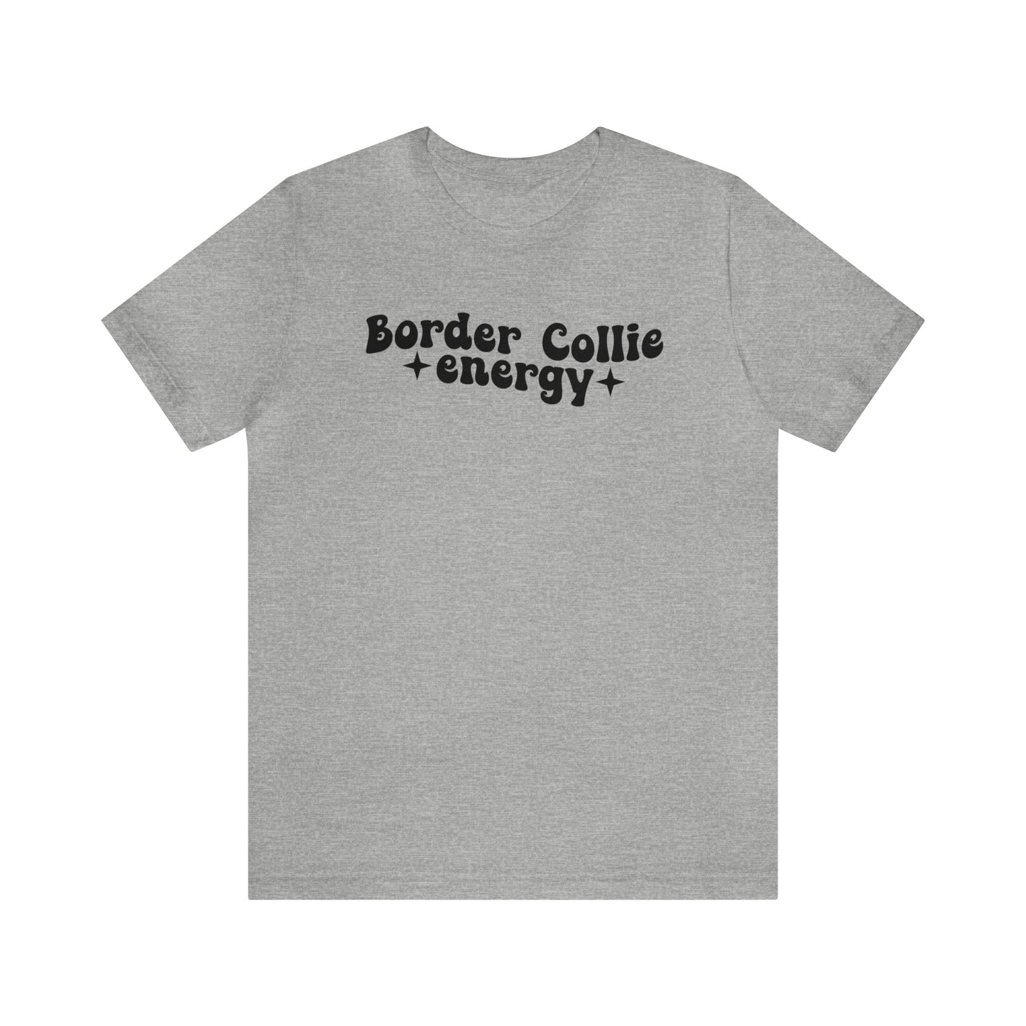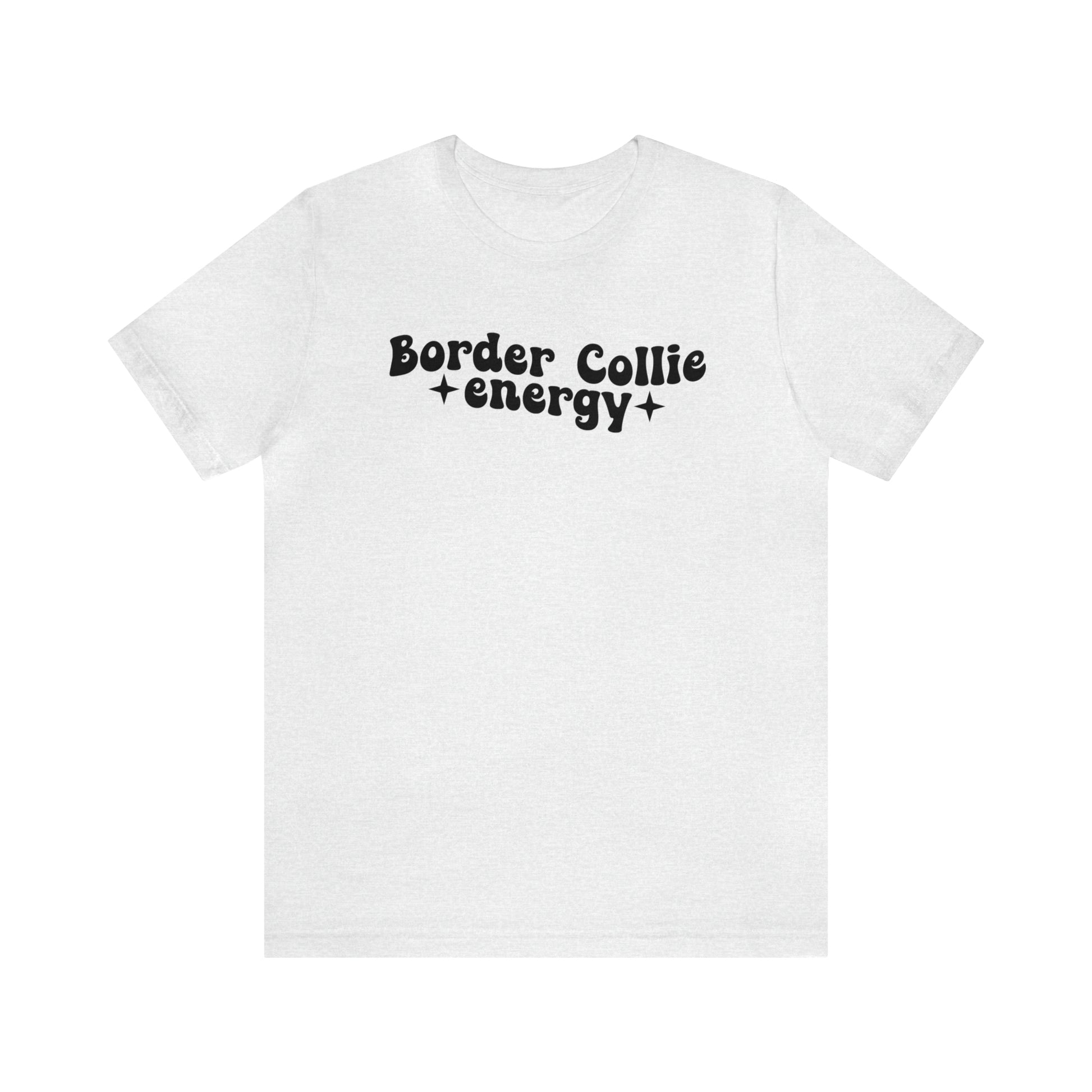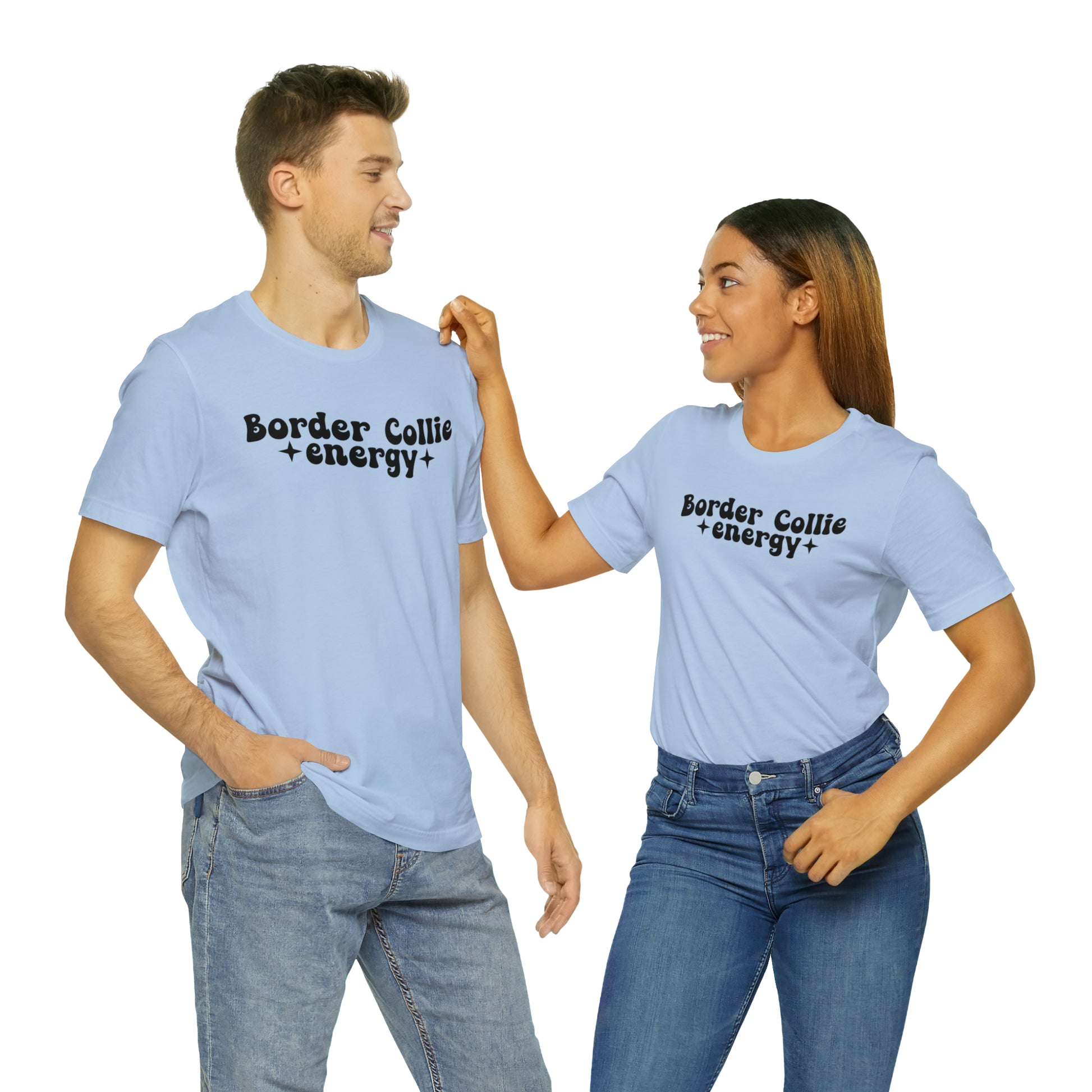 This classic unisex short sleeve dog t-shirt reads Border Collie Energy. This tee fits like a well-loved favorite. Soft cotton and quality print make you fall in love with it over and over again. These t-shirts have ribbed knit collars to bolster shaping. The shoulders have taping for better fit over time. Dual side seams hold the garment's shape for longer.