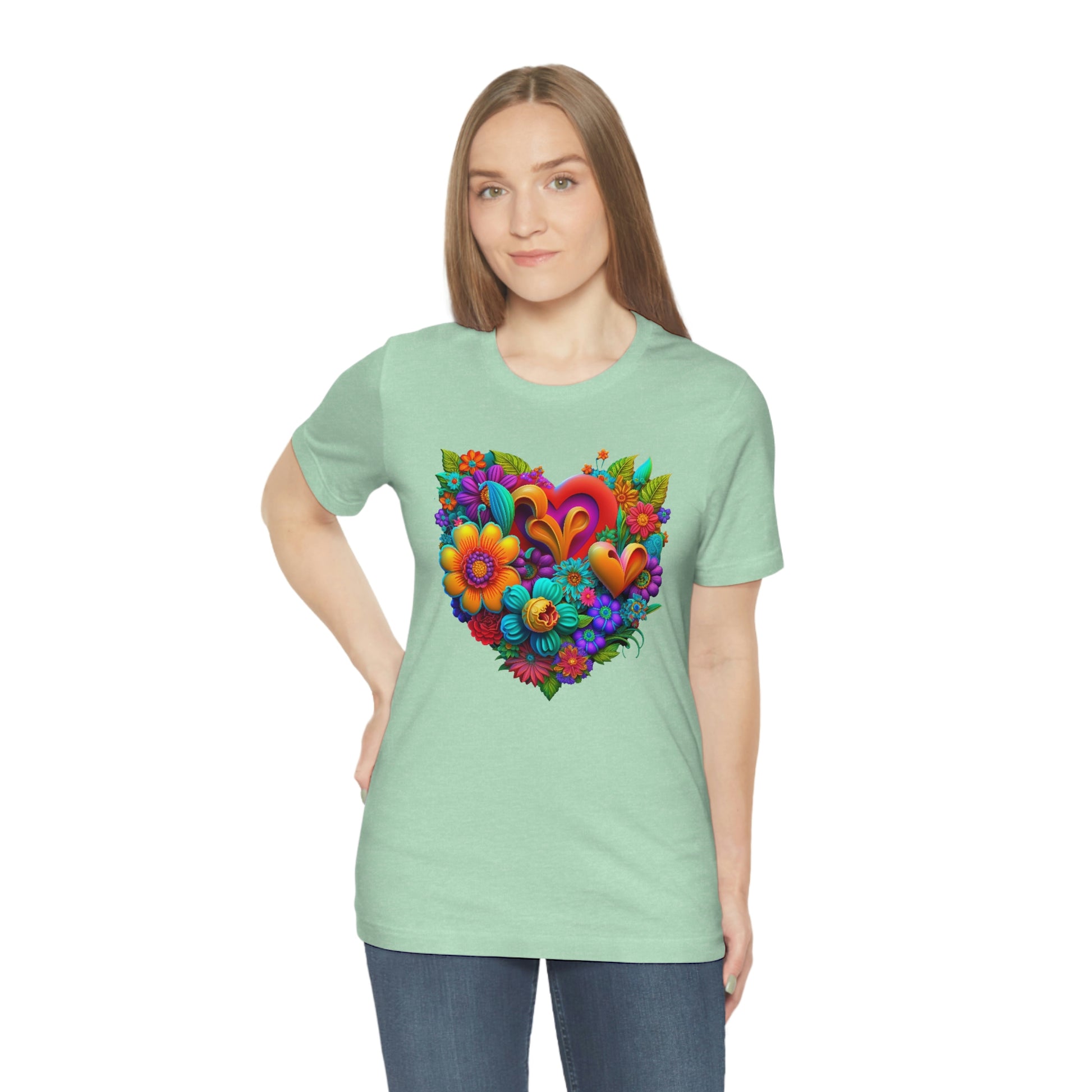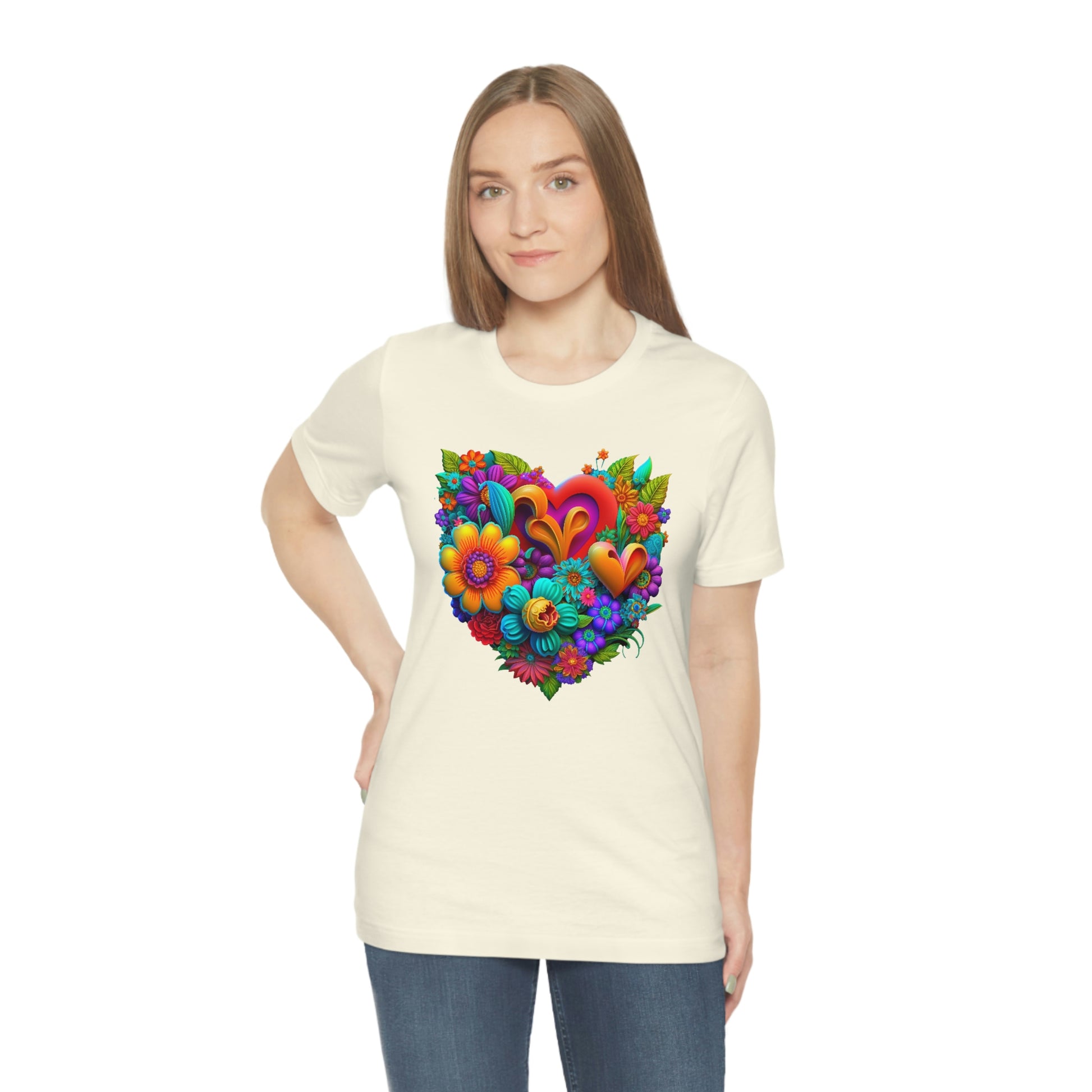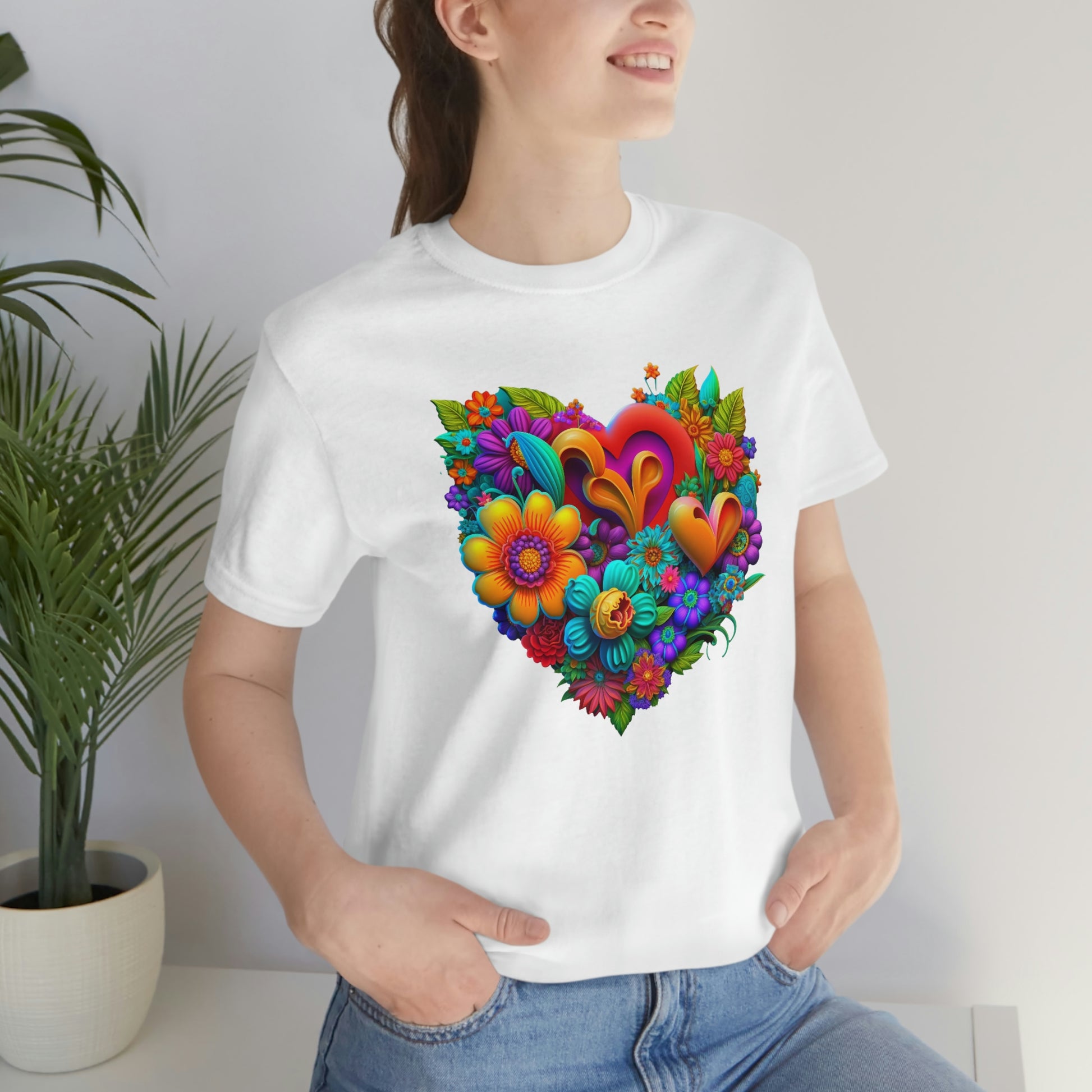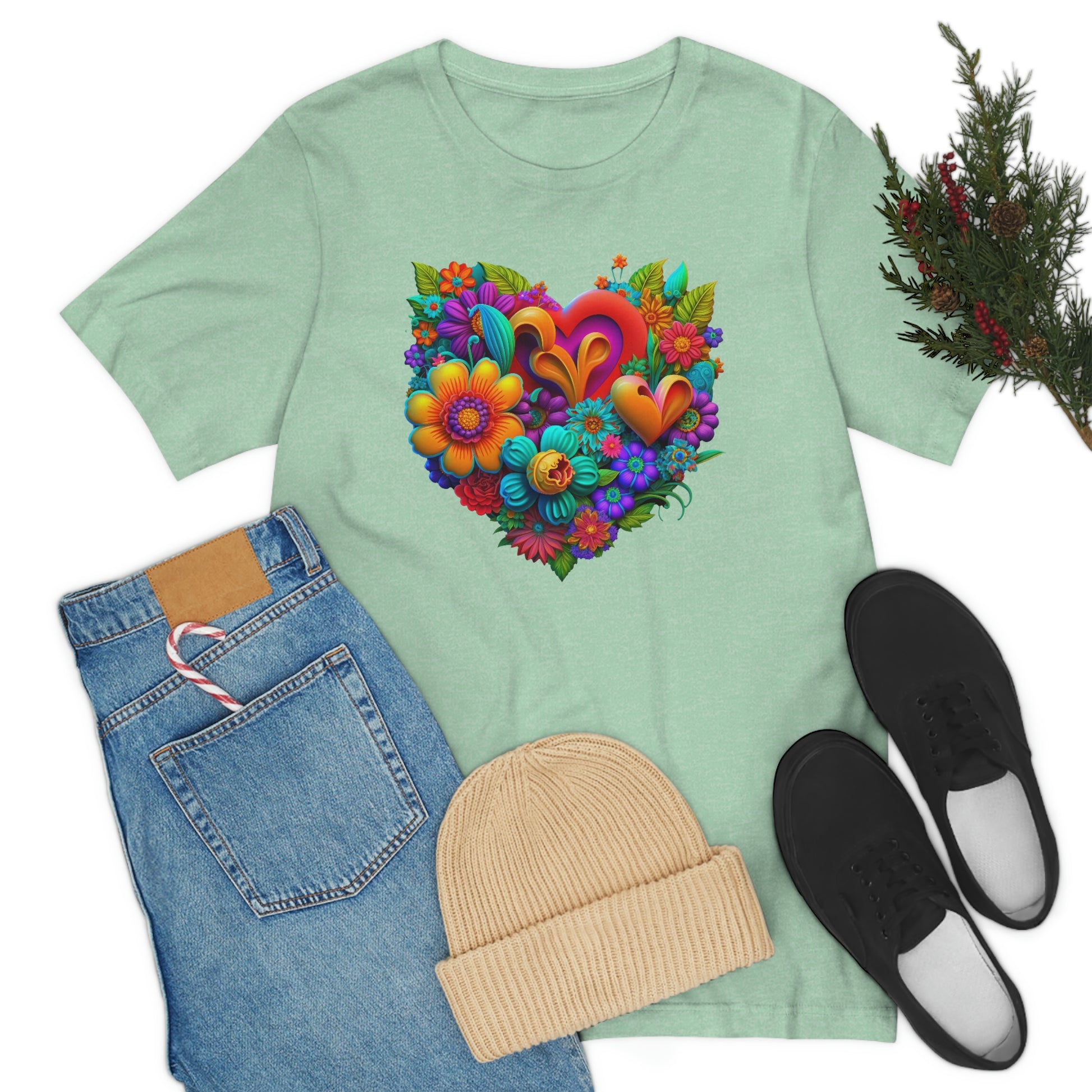 Bright Floral Heart Unisex Jersey Short Sleeve Tee