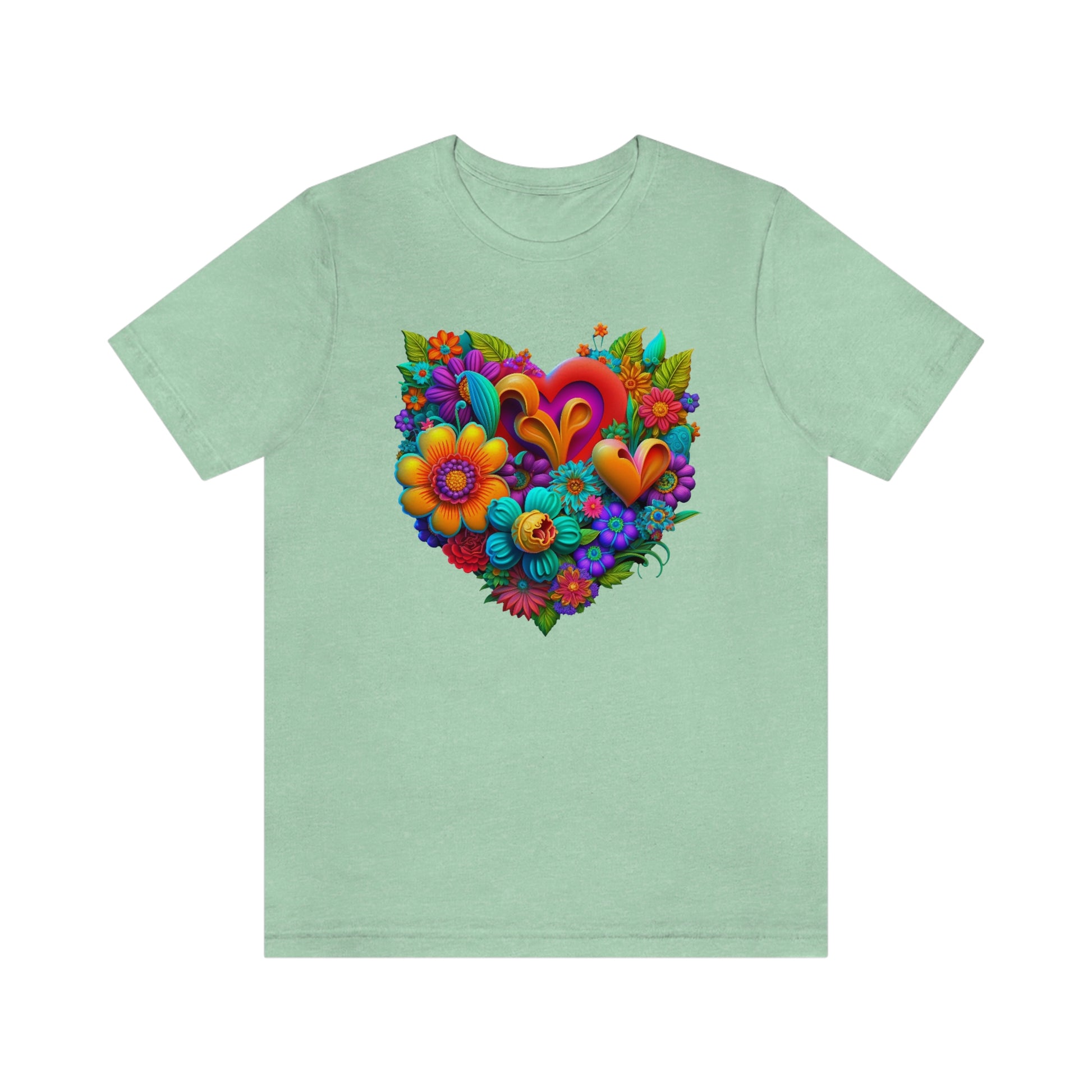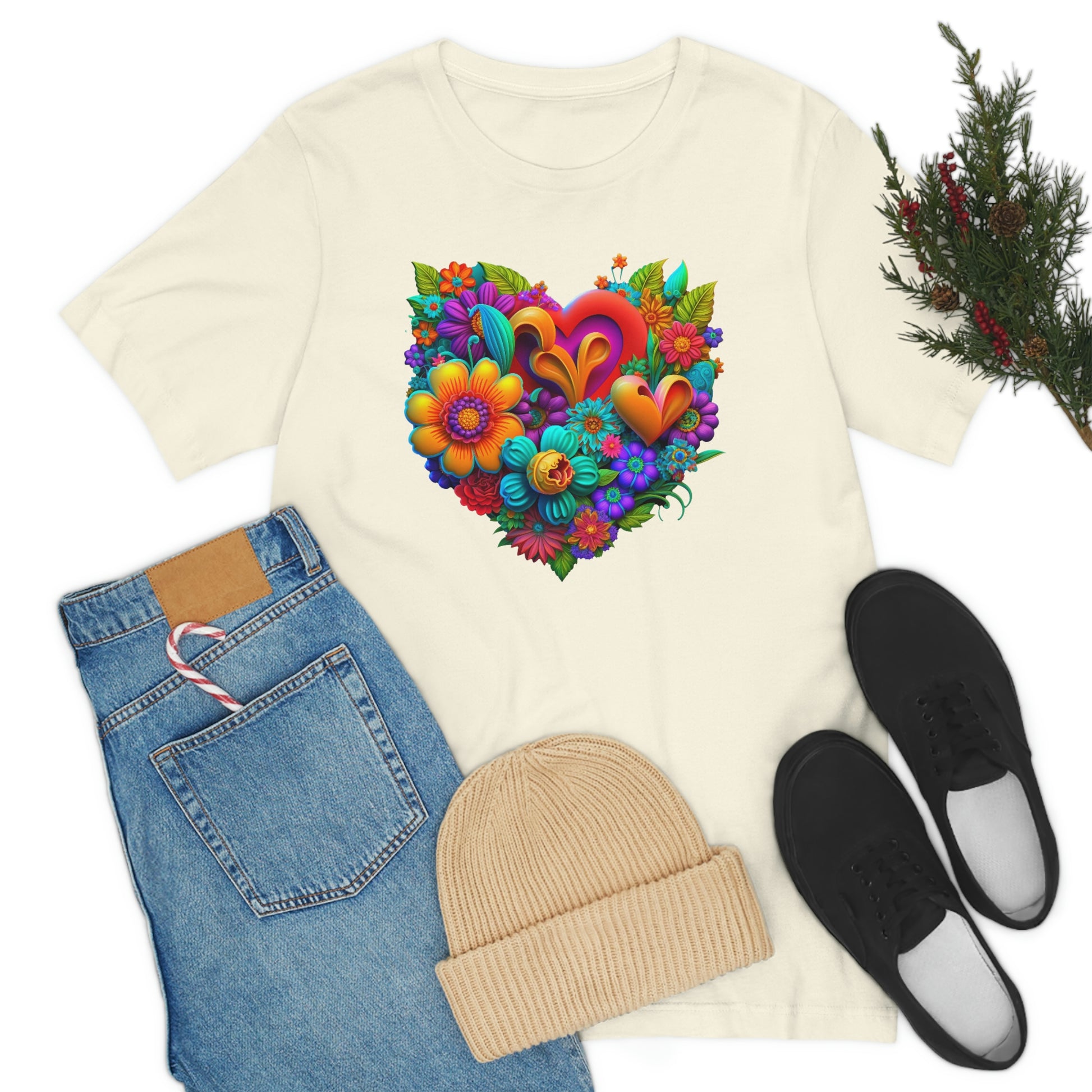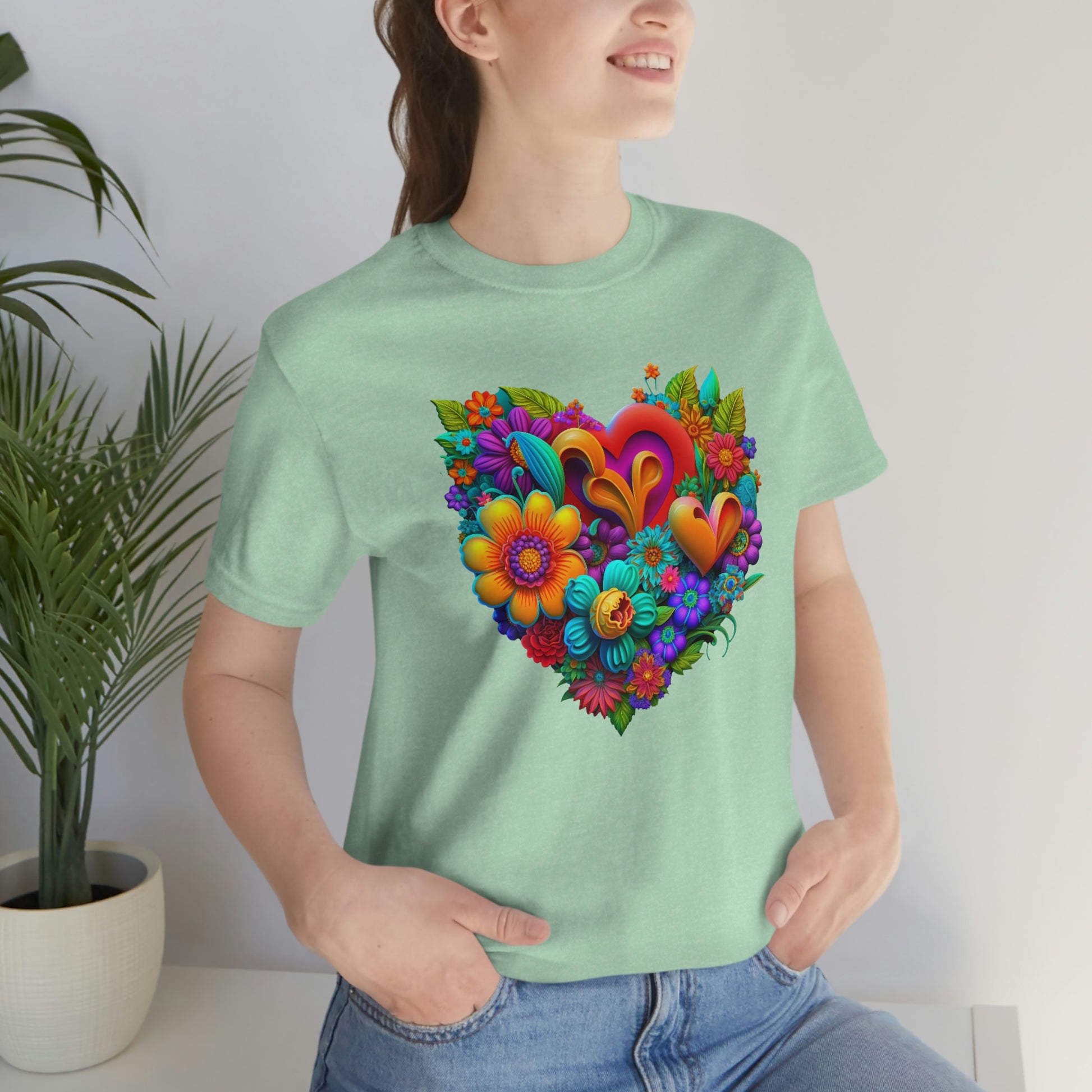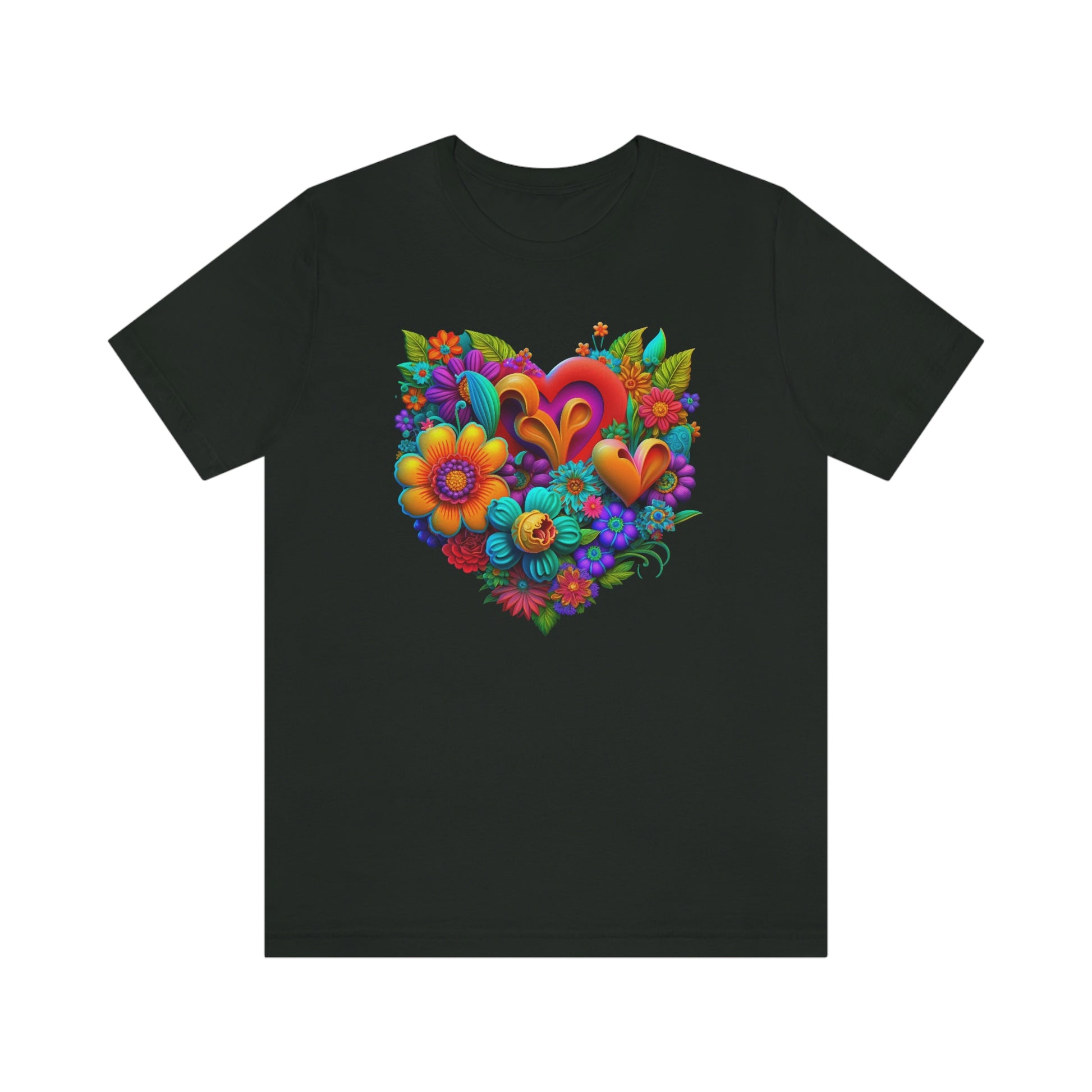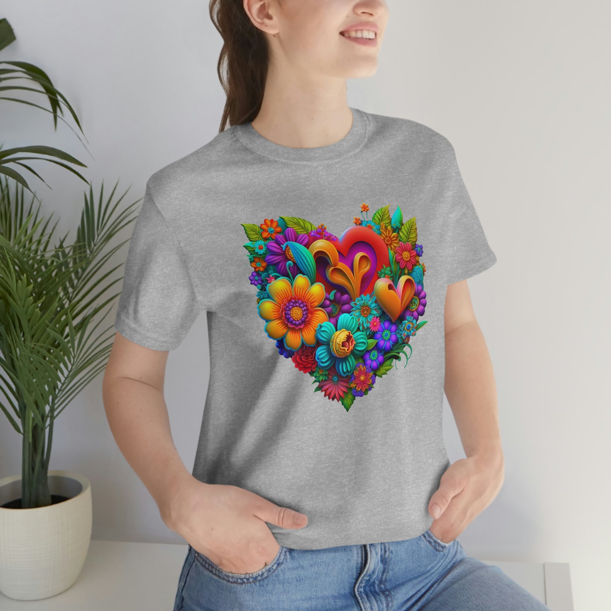 Bright Floral Heart Unisex Jersey Short Sleeve Tee