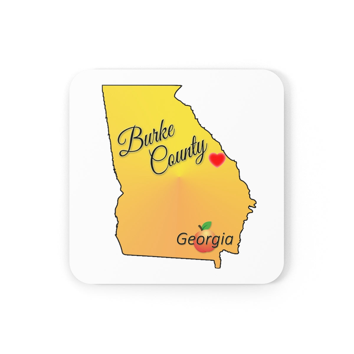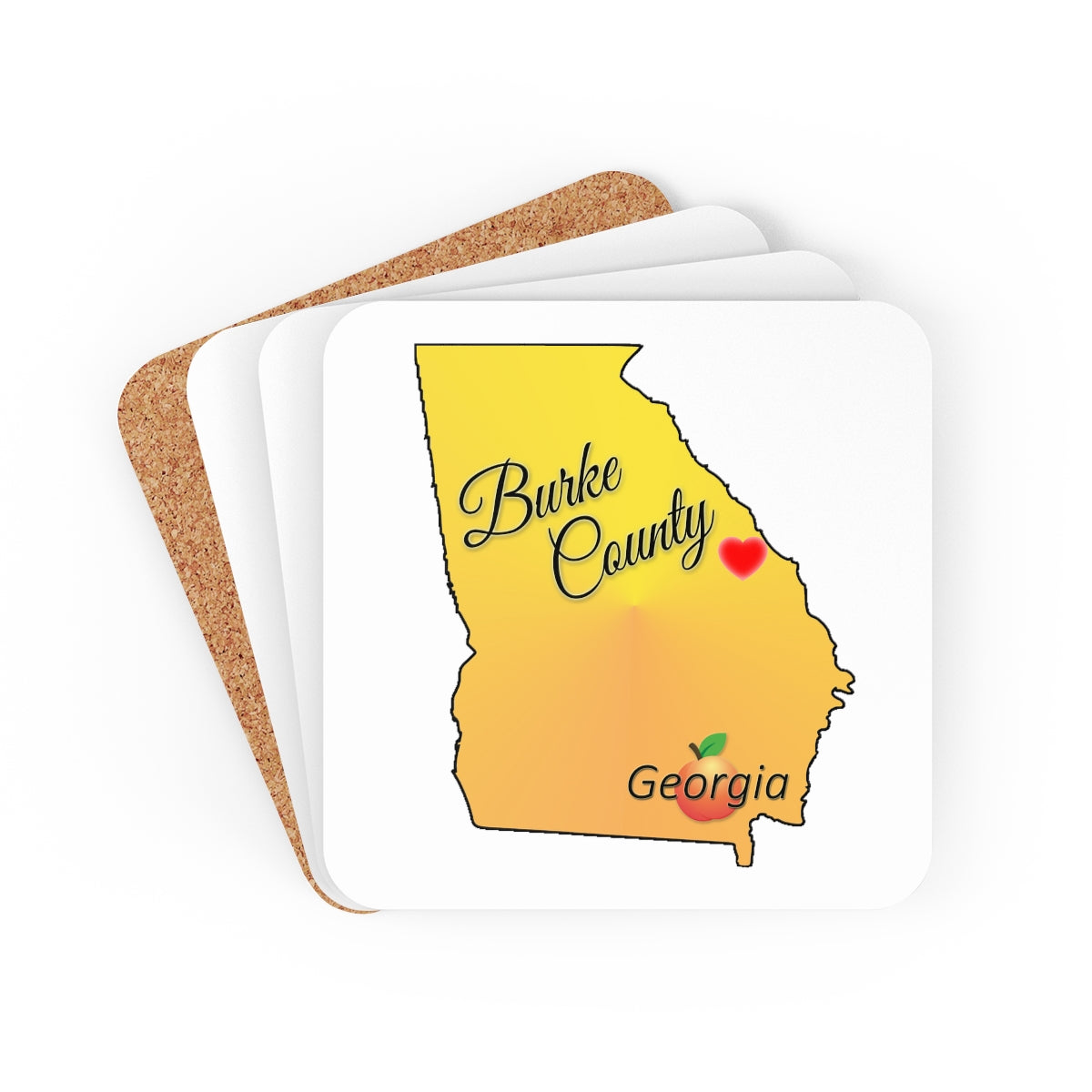This coaster set comes with 4 coasters in one size. They are made with a high-gloss top and feature a cork back to prevent sliding.