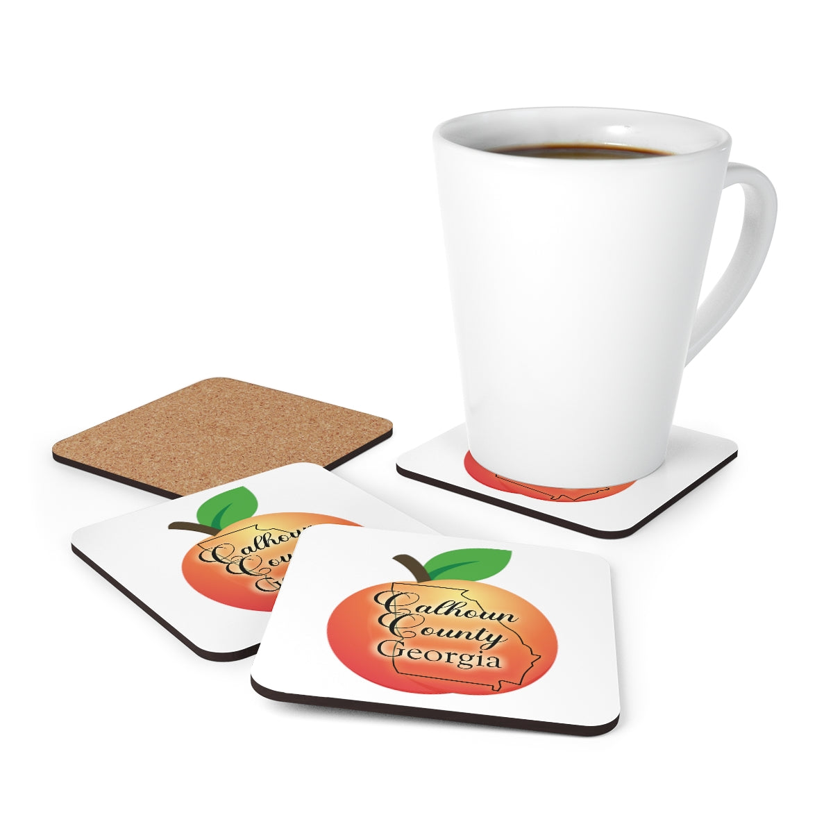 This coaster set comes with 4 coasters in one size. They are made with a high-gloss top and feature a cork back to prevent sliding.