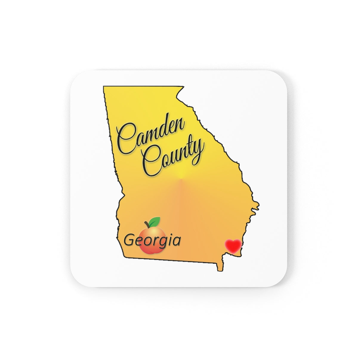 This coaster set comes with 4 coasters in one size. They are made with a high-gloss top and feature a cork back to prevent sliding.
