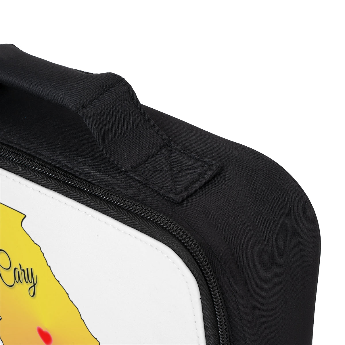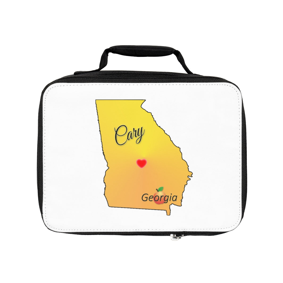 Show your love and pride in your home town or county. This lunch bag has a zippered closure, a convenient carrying handle, and a durable fabric made with 20% cotton - 80% polyester.