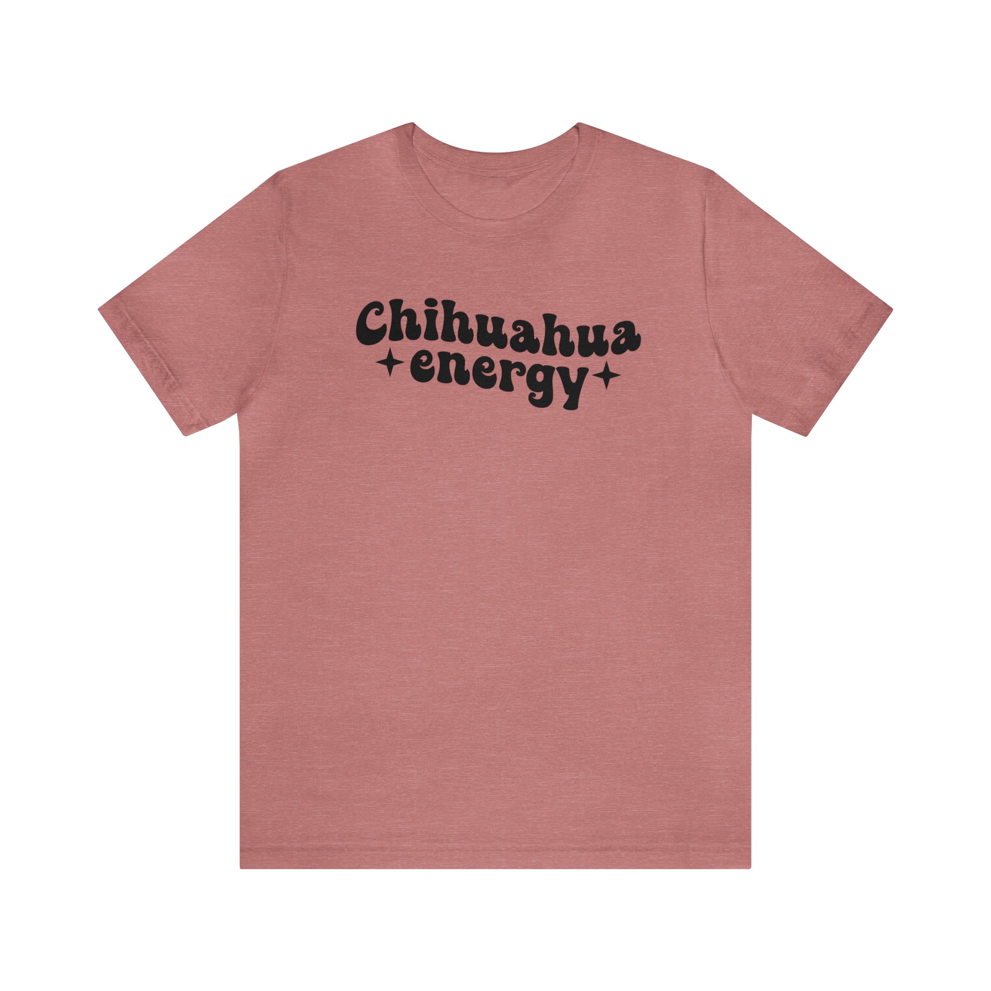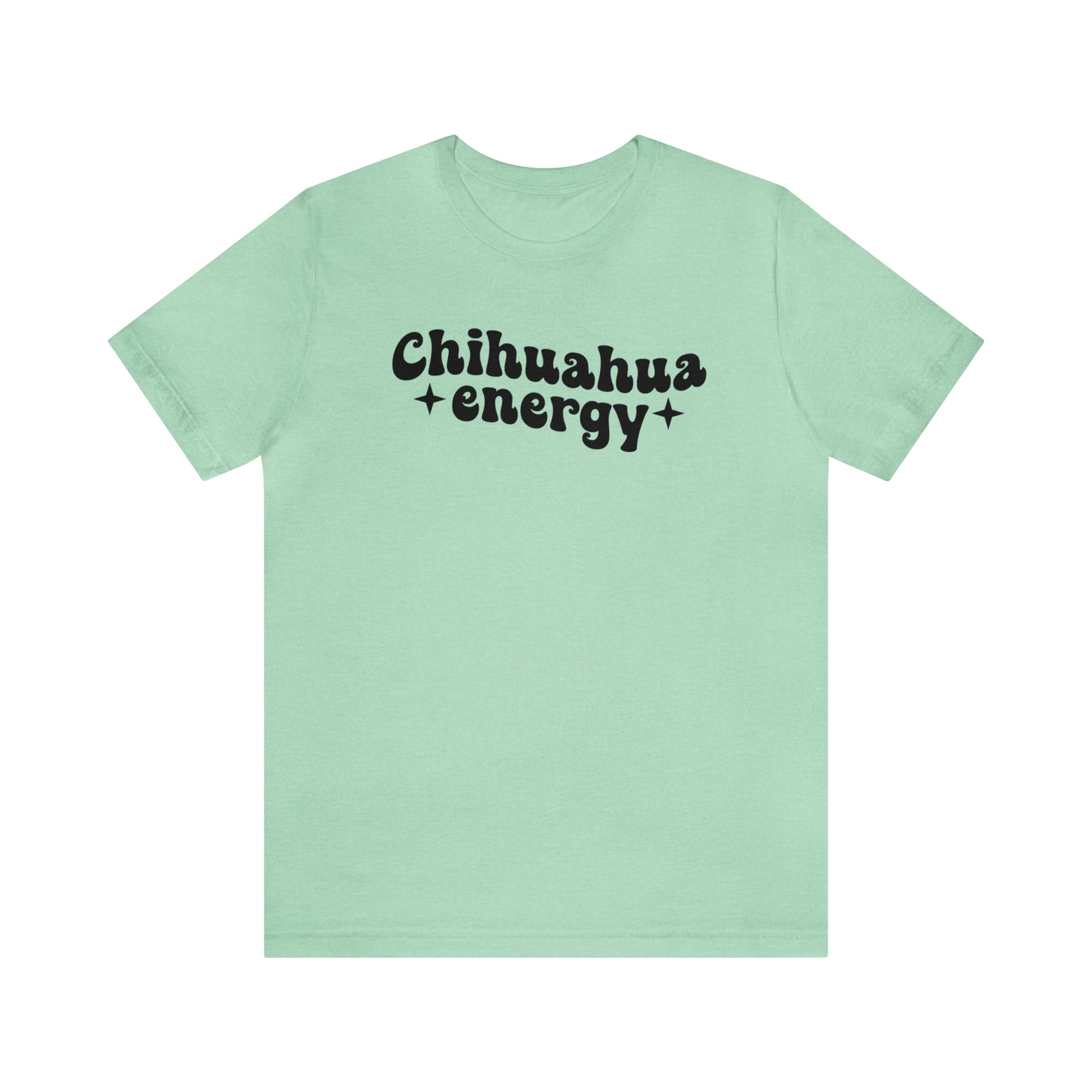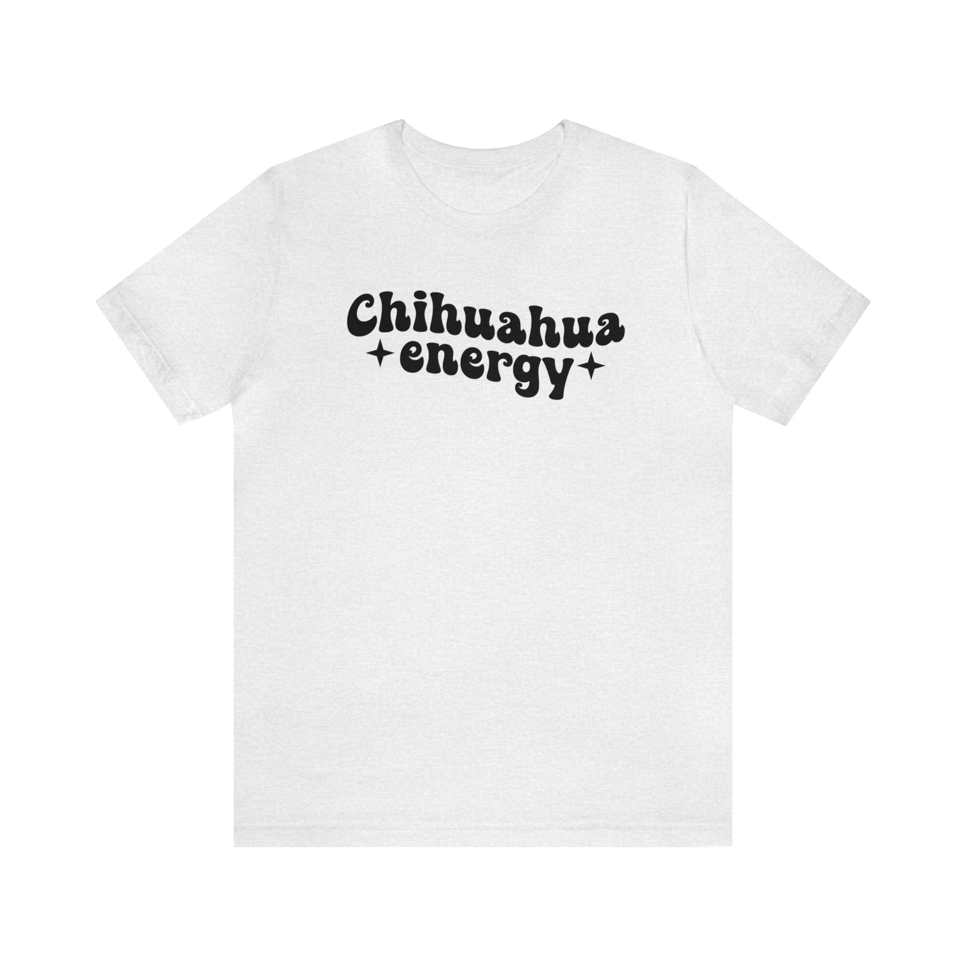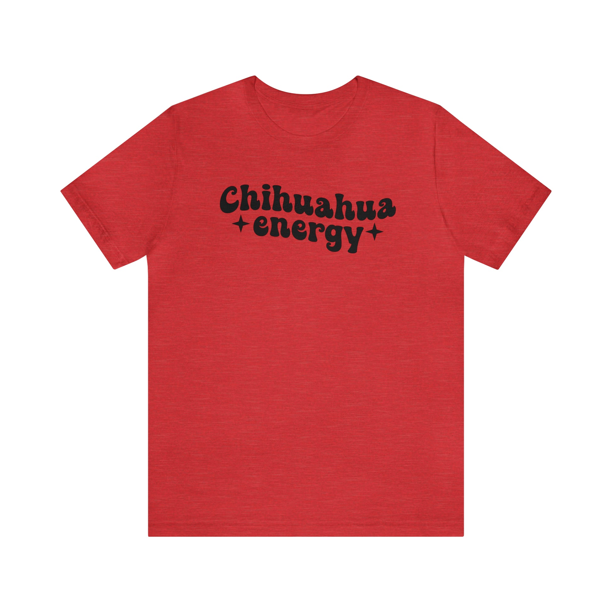 This classic unisex short sleeve dog t-shirt reads Chihuahua Energy. This tee fits like a well-loved favorite. Soft cotton and quality print make you fall in love with it over and over again. These t-shirts have ribbed knit collars to bolster shaping. The shoulders have taping for better fit over time. Dual side seams hold the garment's shape for longer.