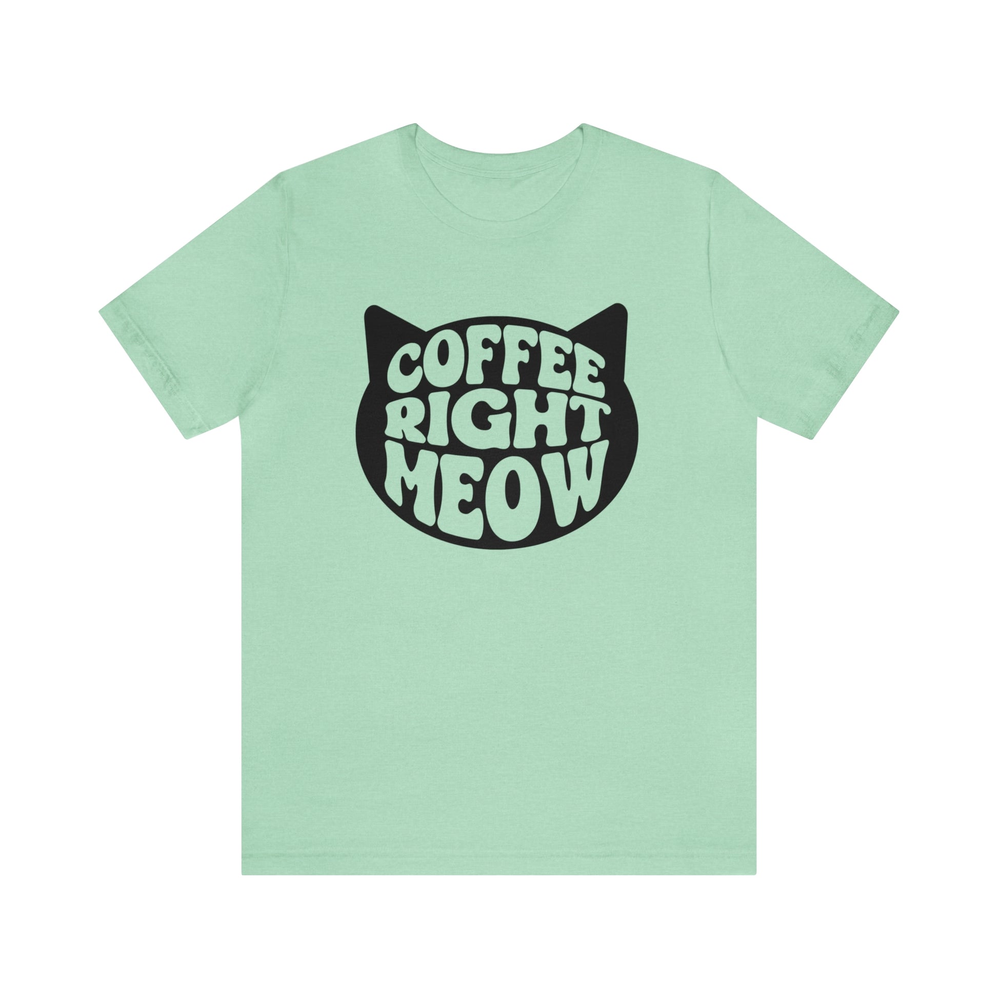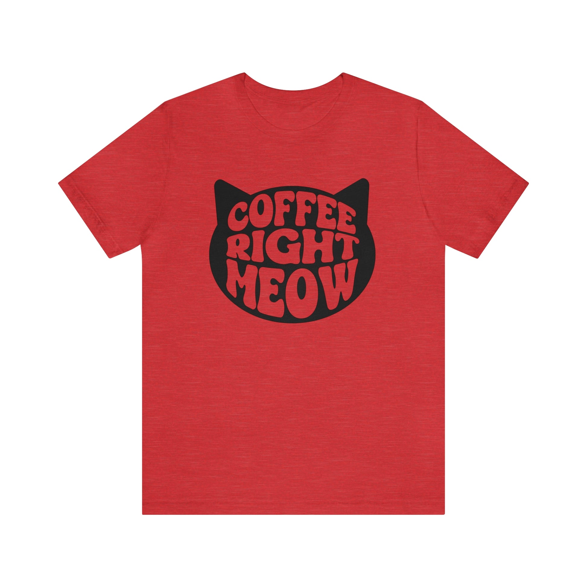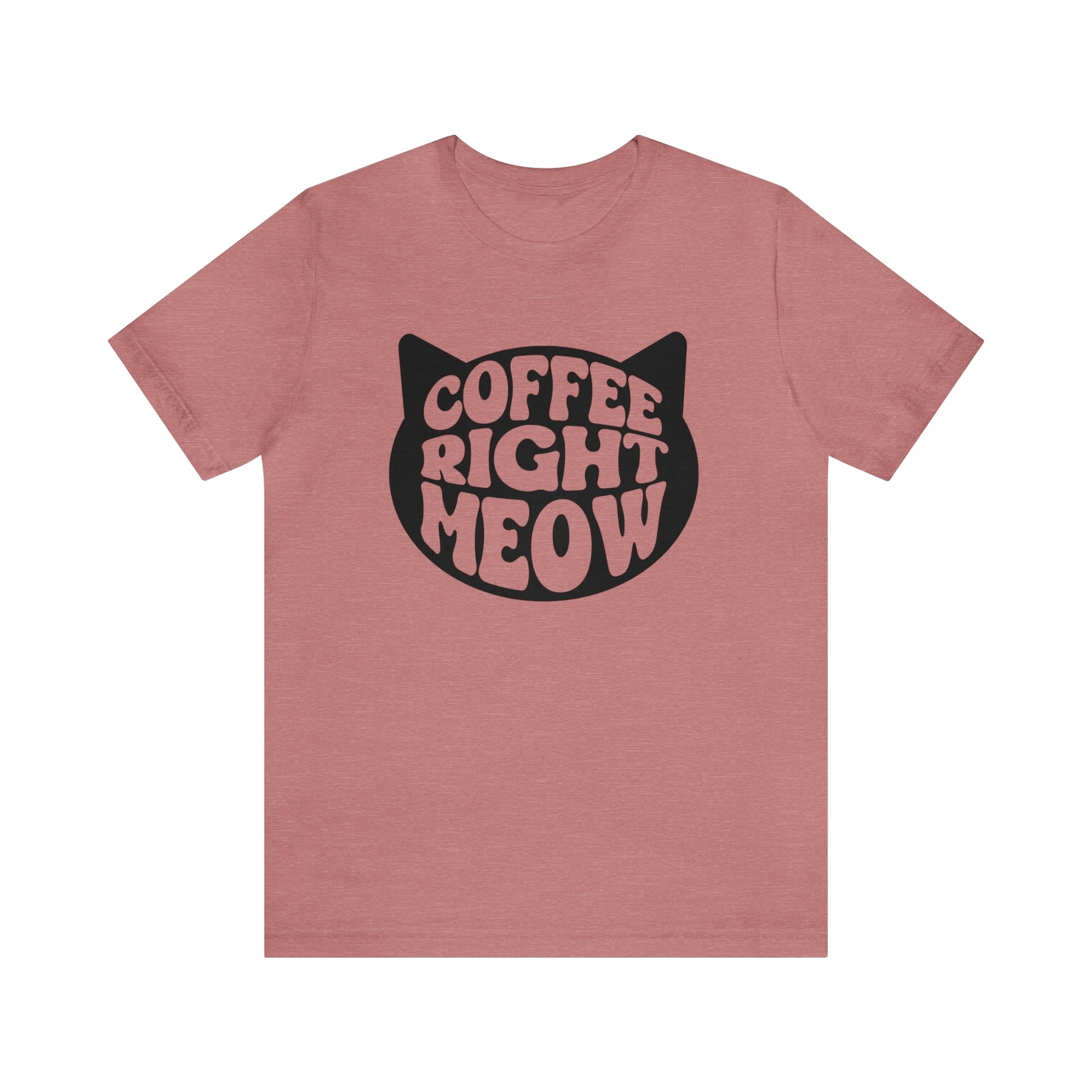 This classic unisex short sleeve t-shirt reads Coffee Right Meow. This tee fits like a well-loved favorite. Soft cotton and quality print make you fall in love with it over and over again. These t-shirts have ribbed knit collars to bolster shaping. The shoulders have taping for better fit over time. Dual side seams hold the garment's shape for longer.