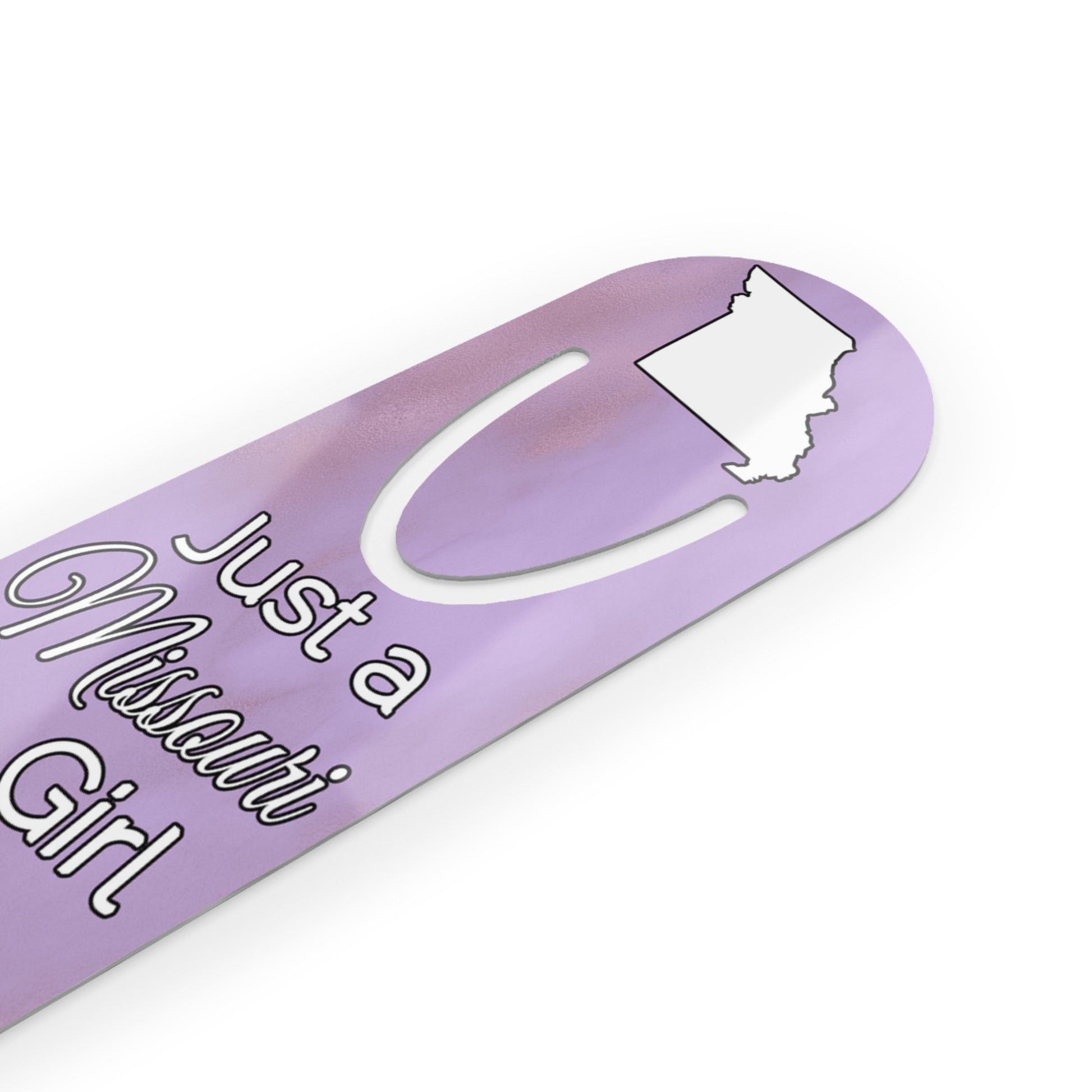 Show your pride in your home state with this bookmark showing Just a Missouri Girl in an Alabama World. Made with robust aluminum, features top slot that holds single pages in place.