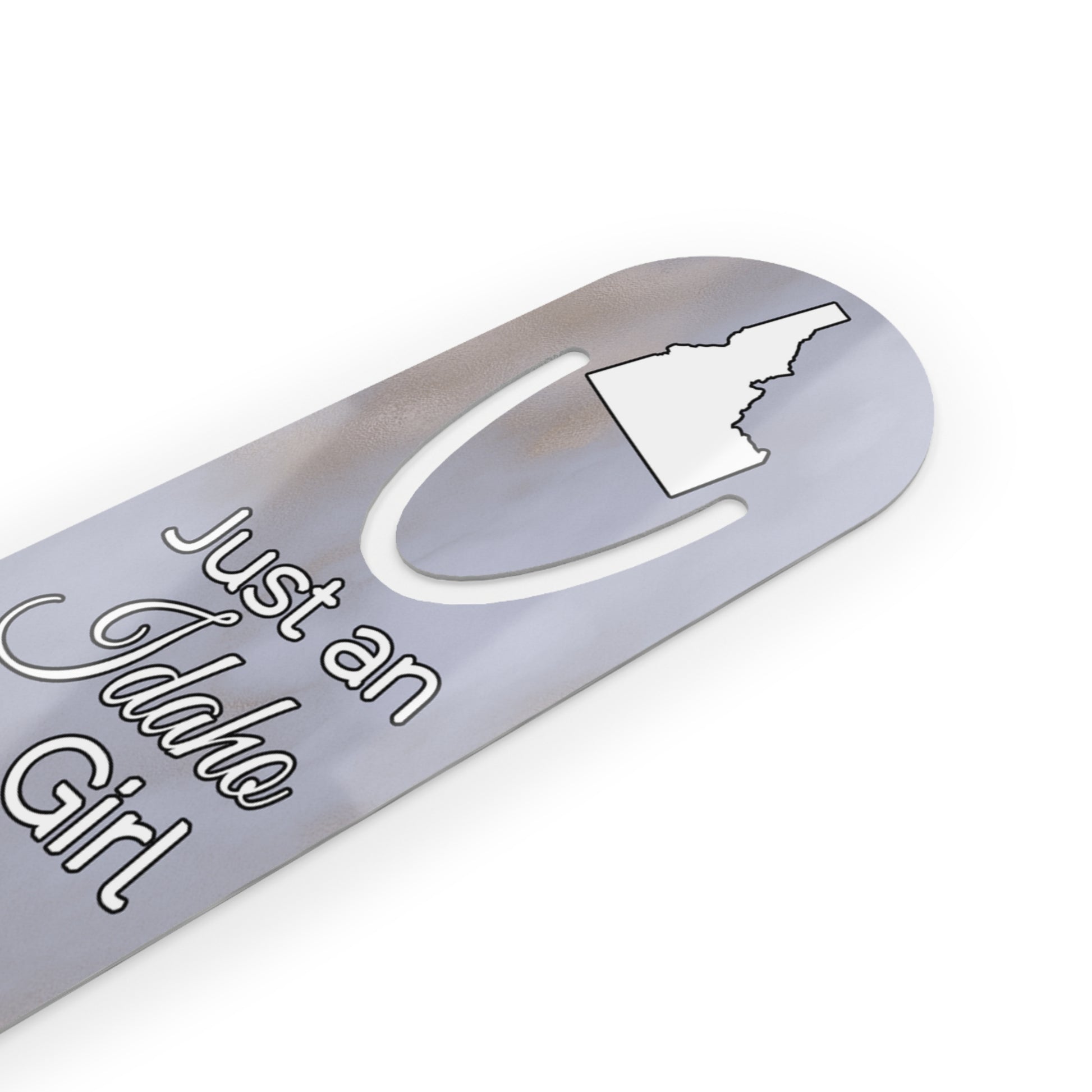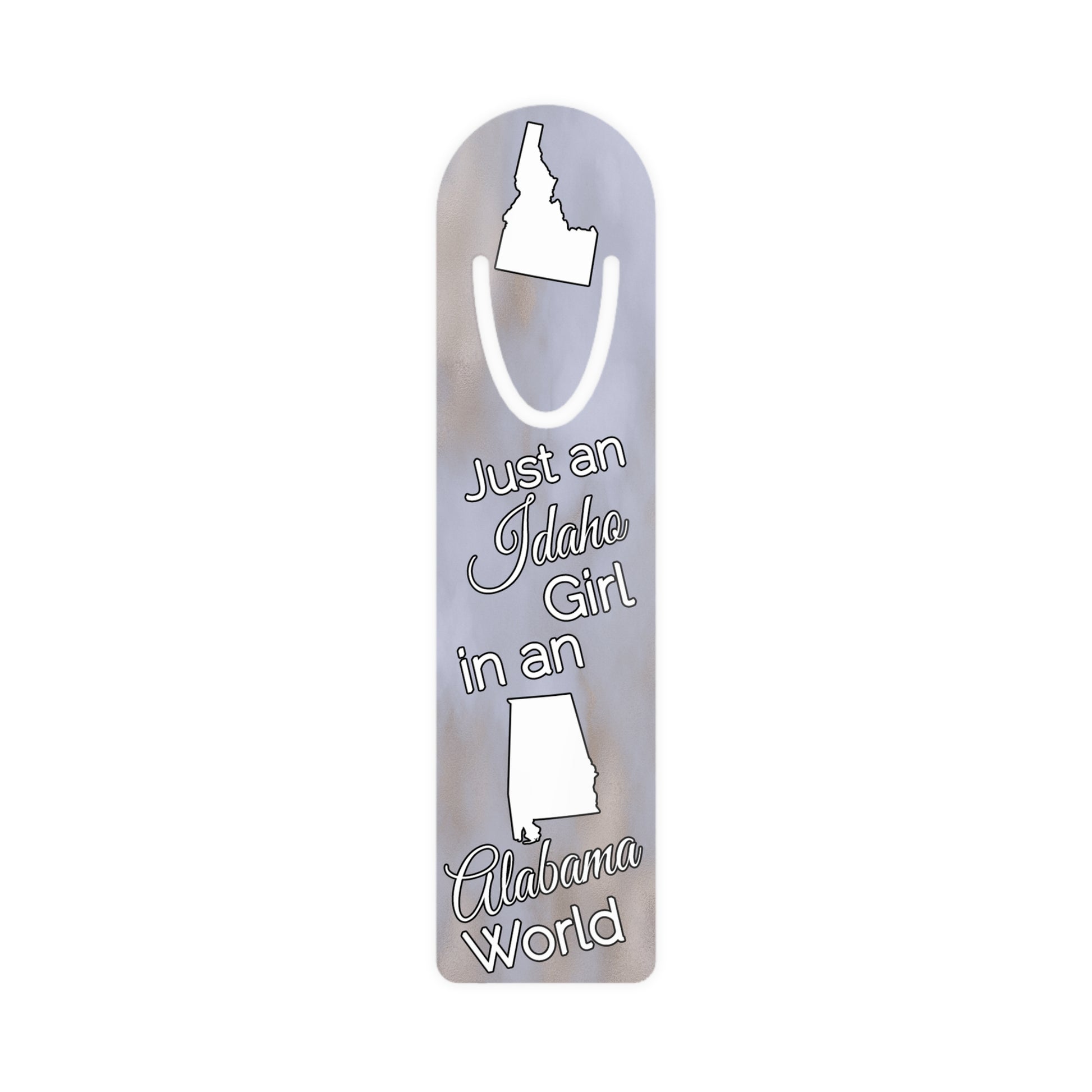 Show your pride in your home state with this bookmark showing Just an Idaho Girl in an Alabama World. Made with robust aluminum, features top slot that holds single pages in place.