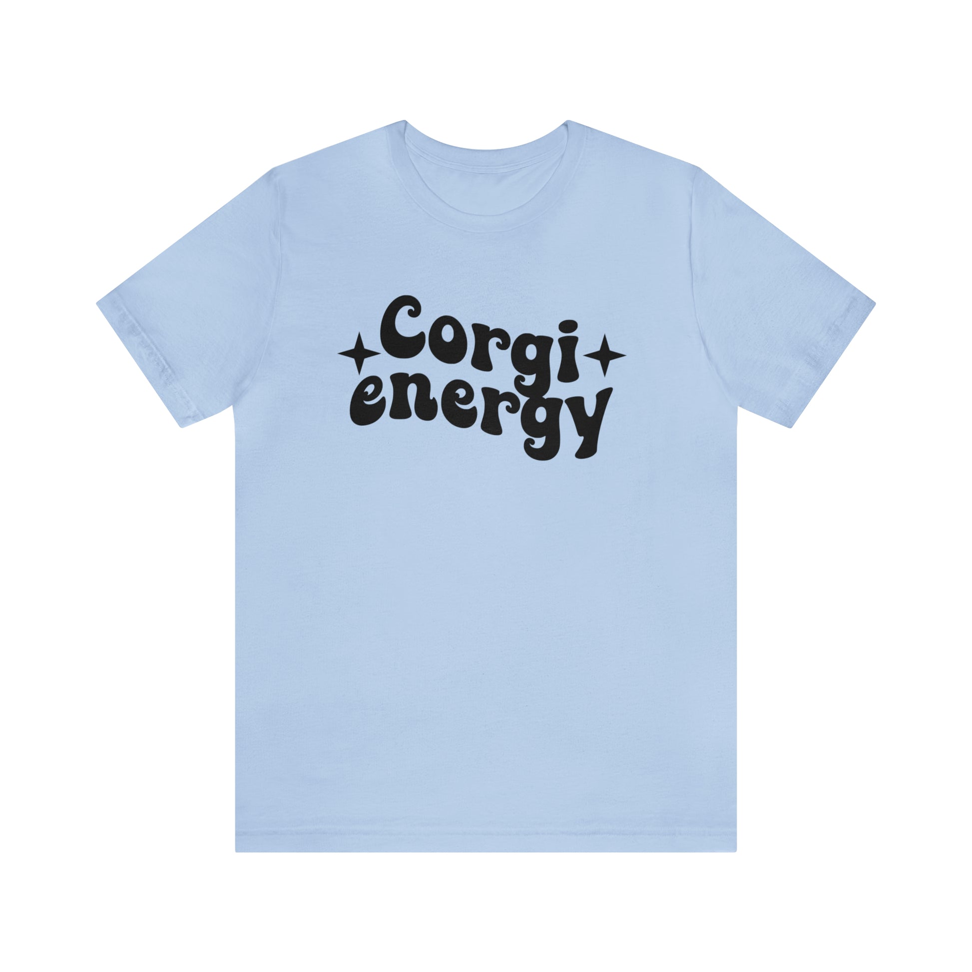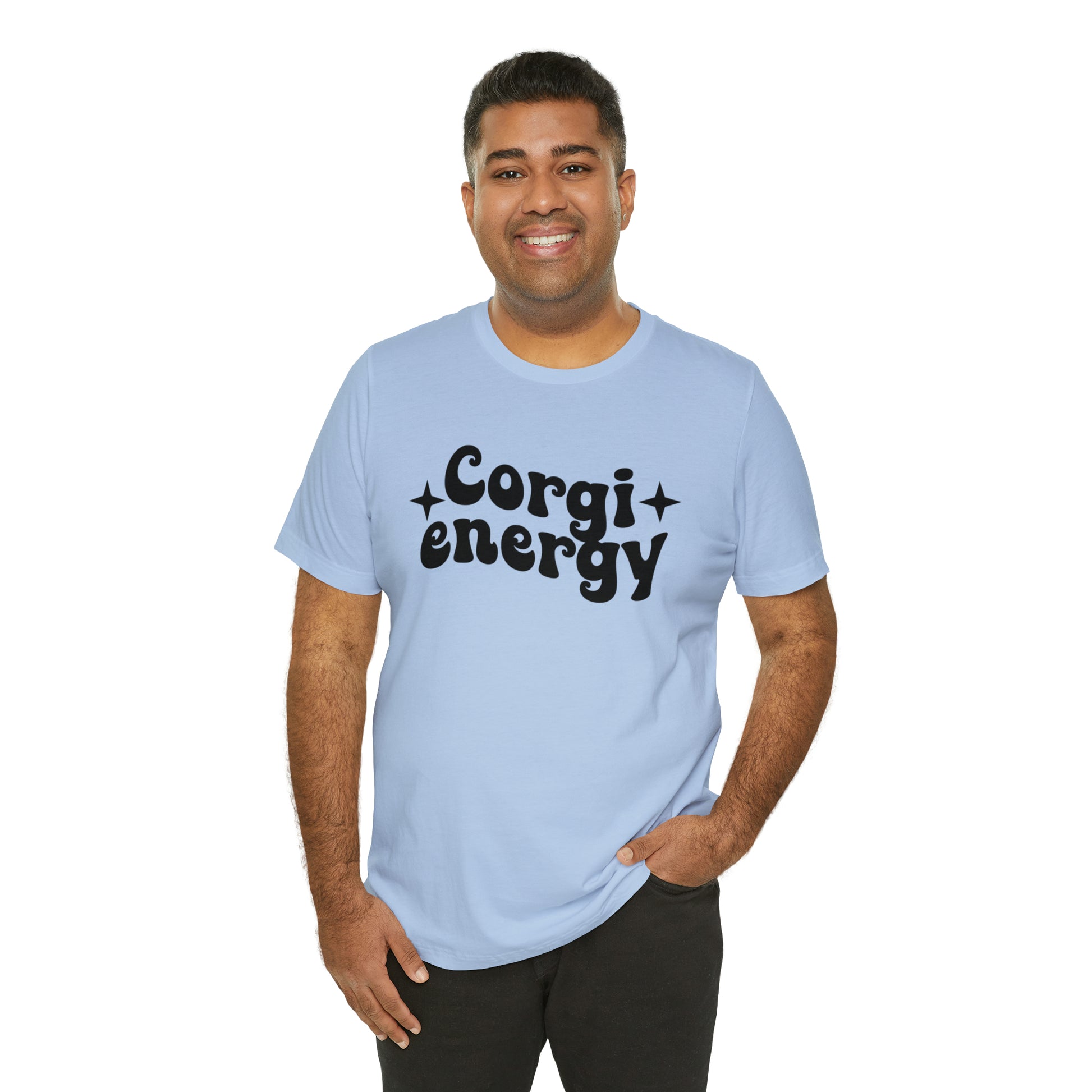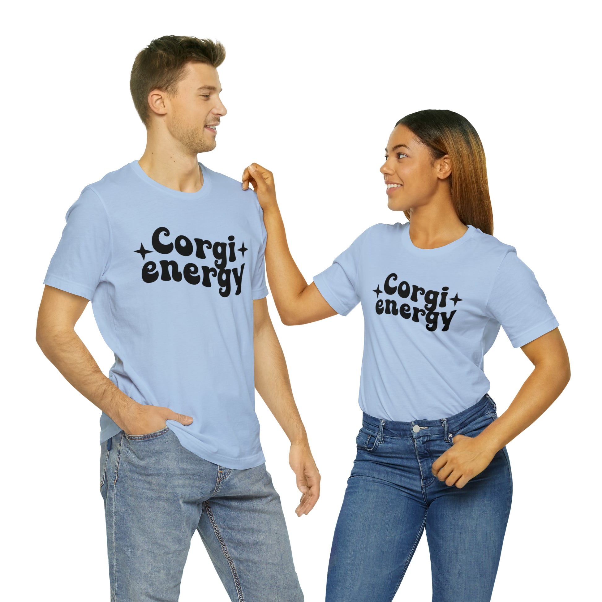 This classic unisex short sleeve dog t-shirt reads Corgi Energy. This tee fits like a well-loved favorite. Soft cotton and quality print make you fall in love with it over and over again. These t-shirts have ribbed knit collars to bolster shaping. The shoulders have taping for better fit over time. Dual side seams hold the garment's shape for longer.