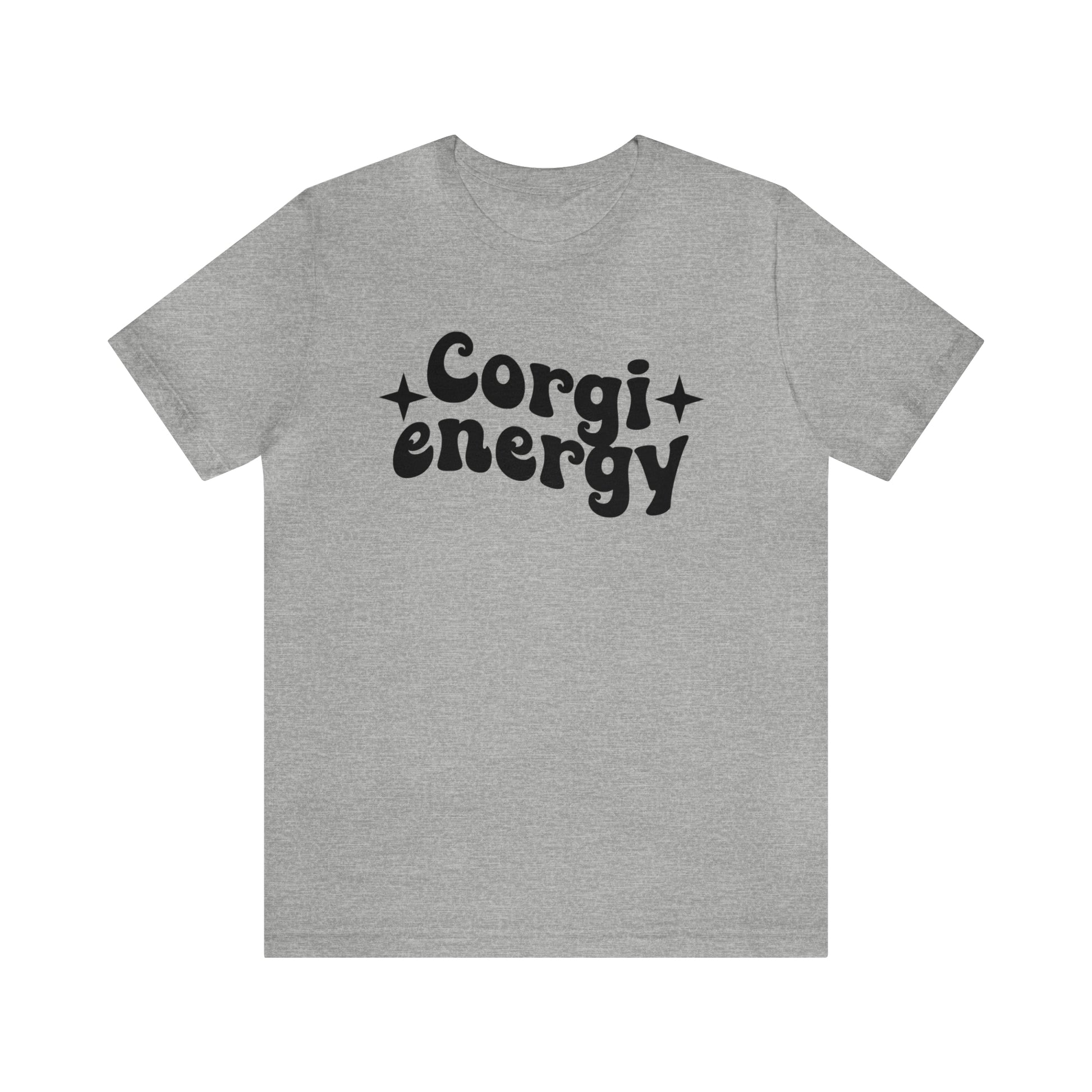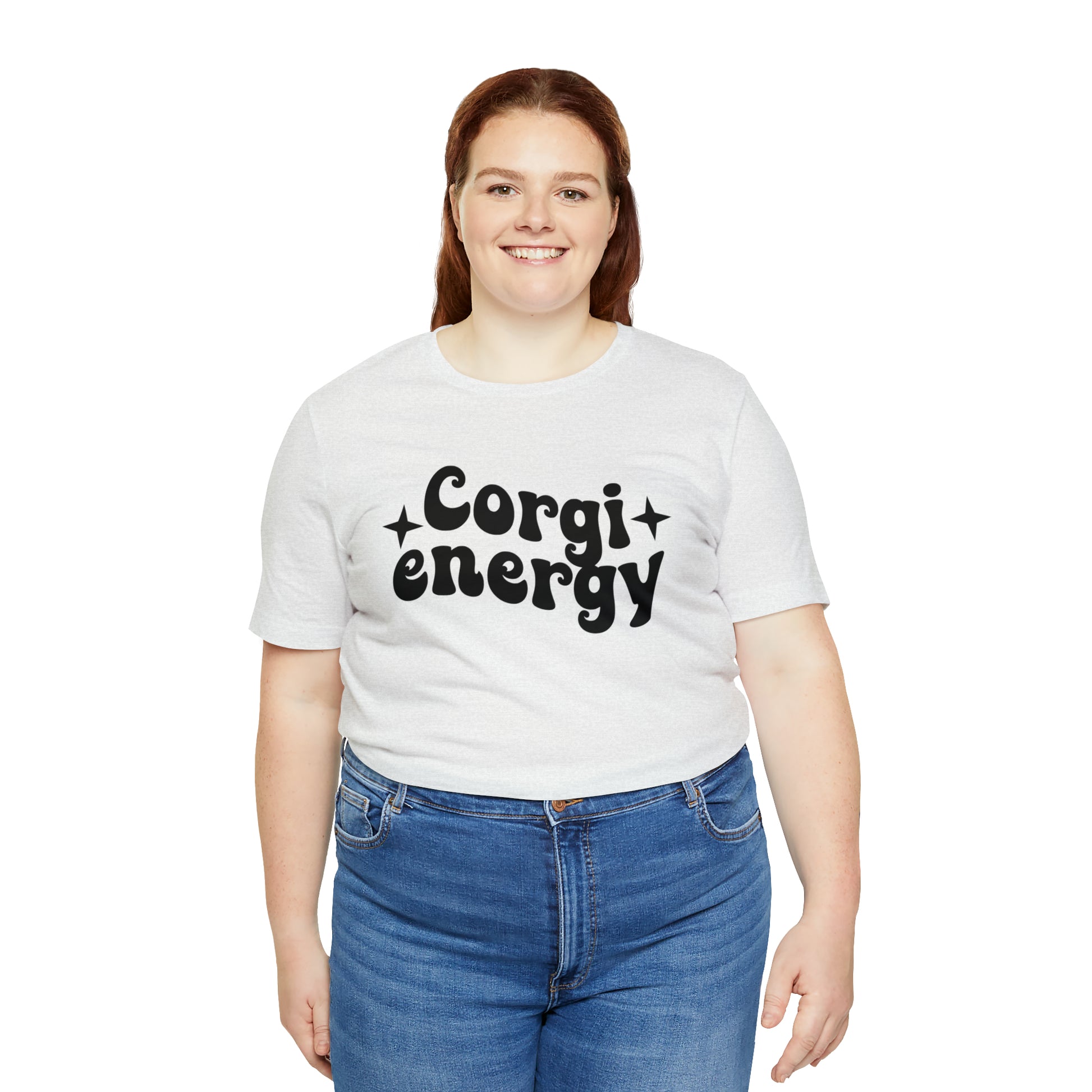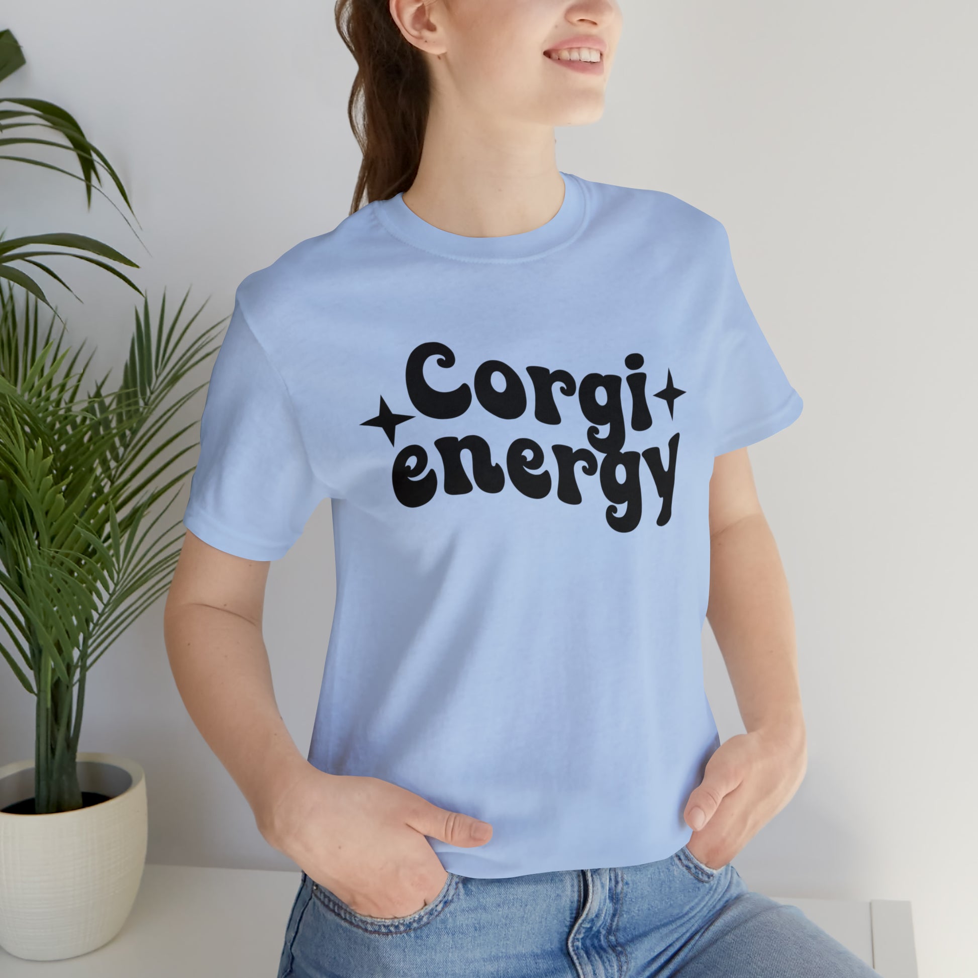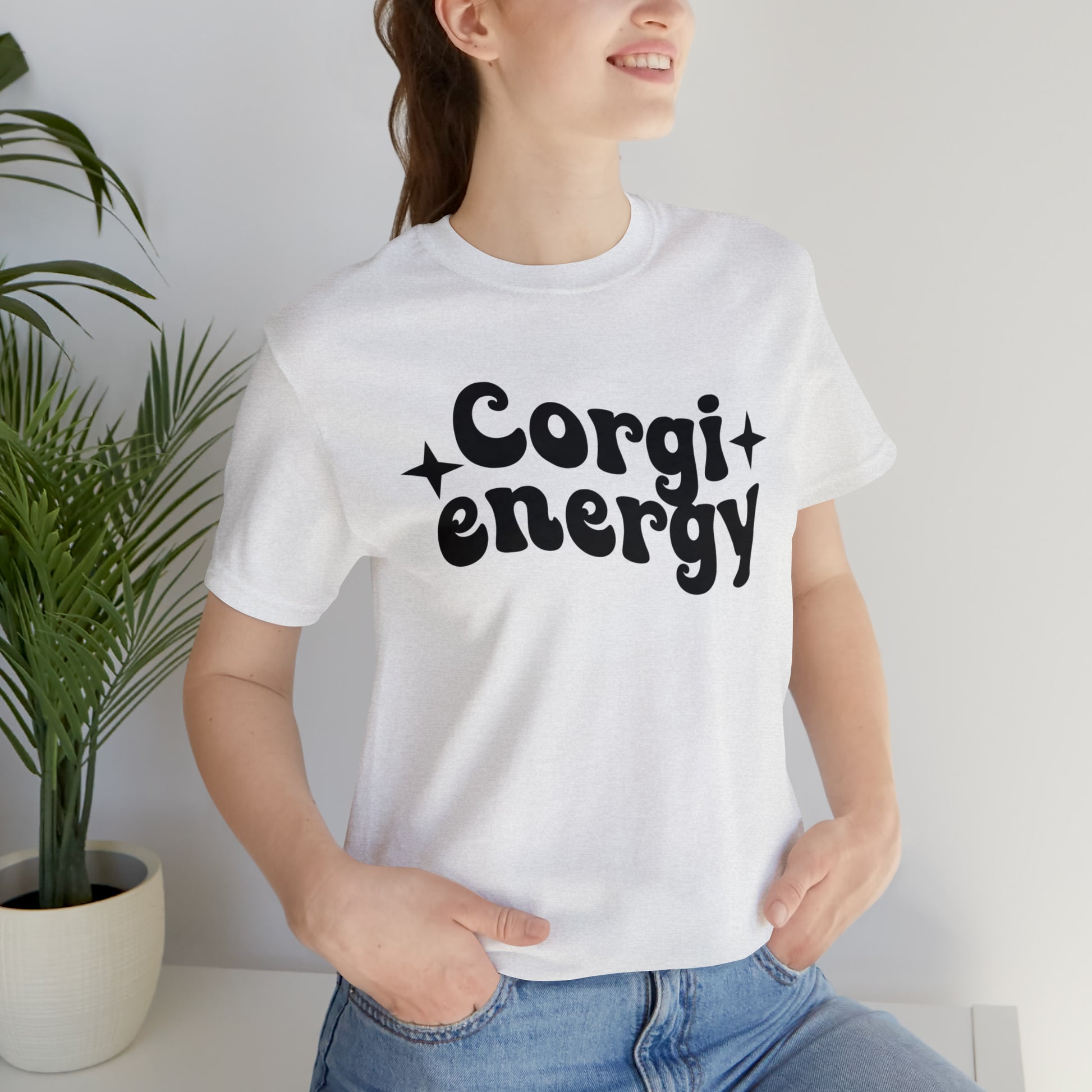 This classic unisex short sleeve dog t-shirt reads Corgi Energy. This tee fits like a well-loved favorite. Soft cotton and quality print make you fall in love with it over and over again. These t-shirts have ribbed knit collars to bolster shaping. The shoulders have taping for better fit over time. Dual side seams hold the garment's shape for longer.