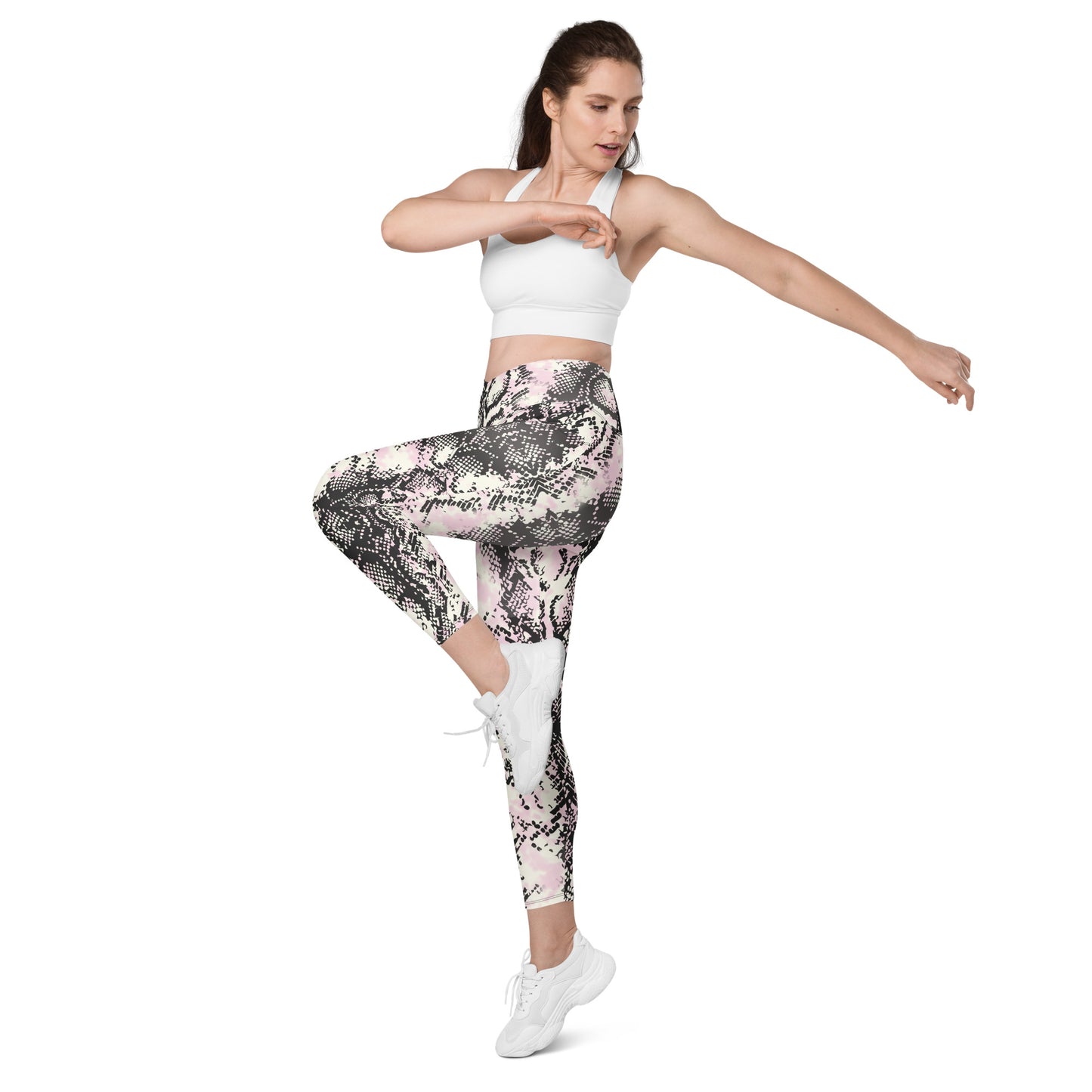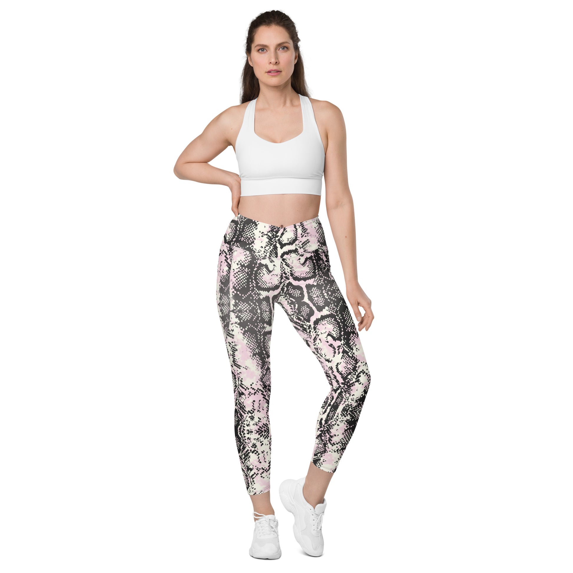 Snakeskin Design Crossover leggings with pockets