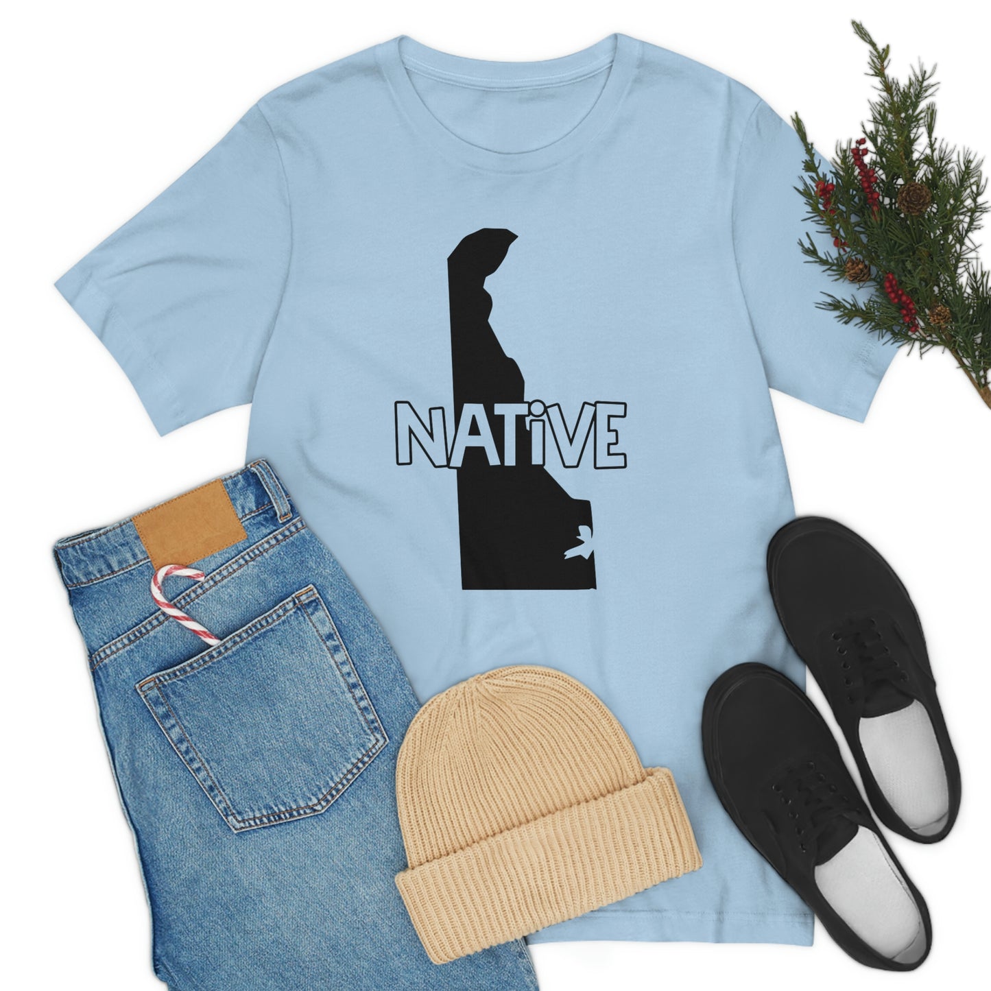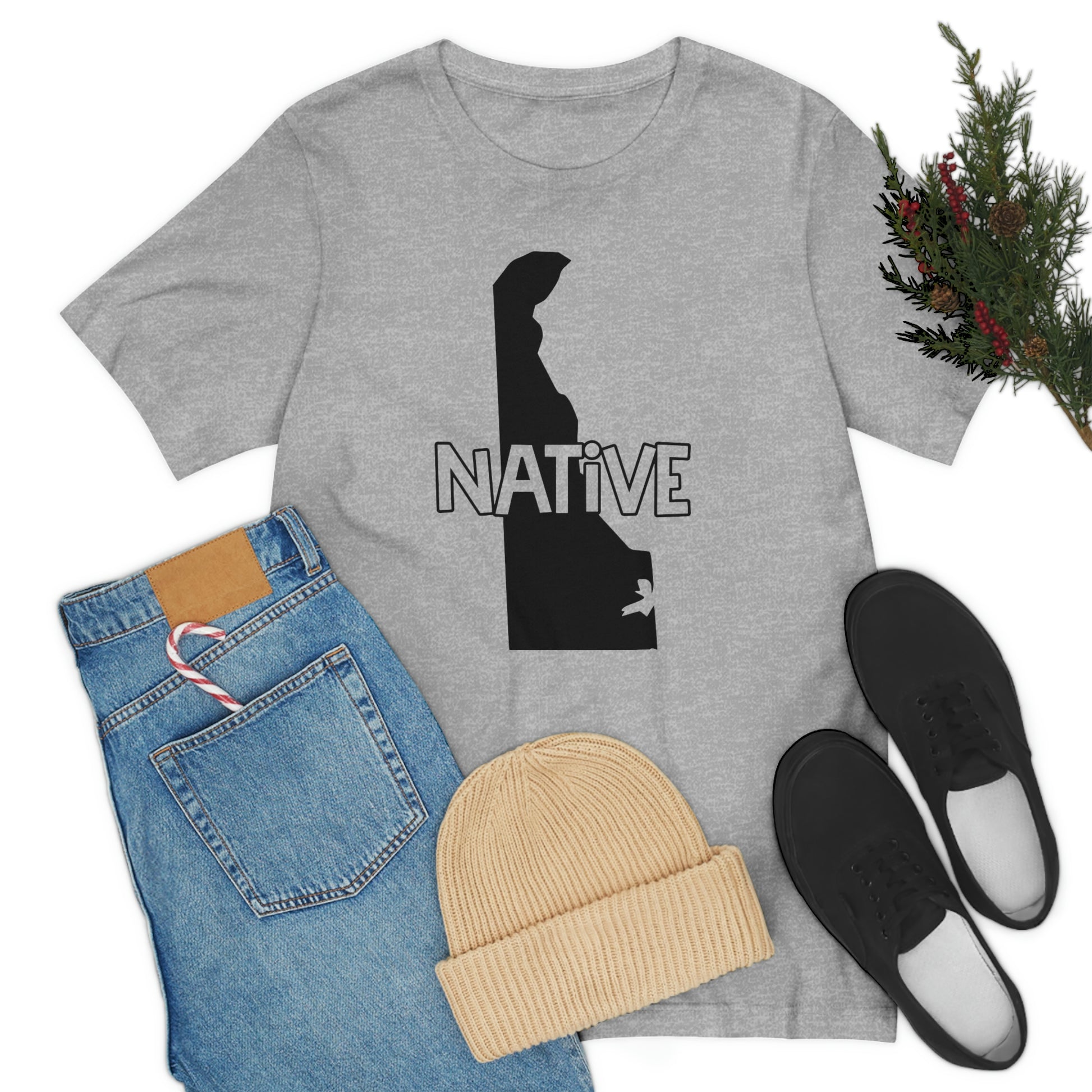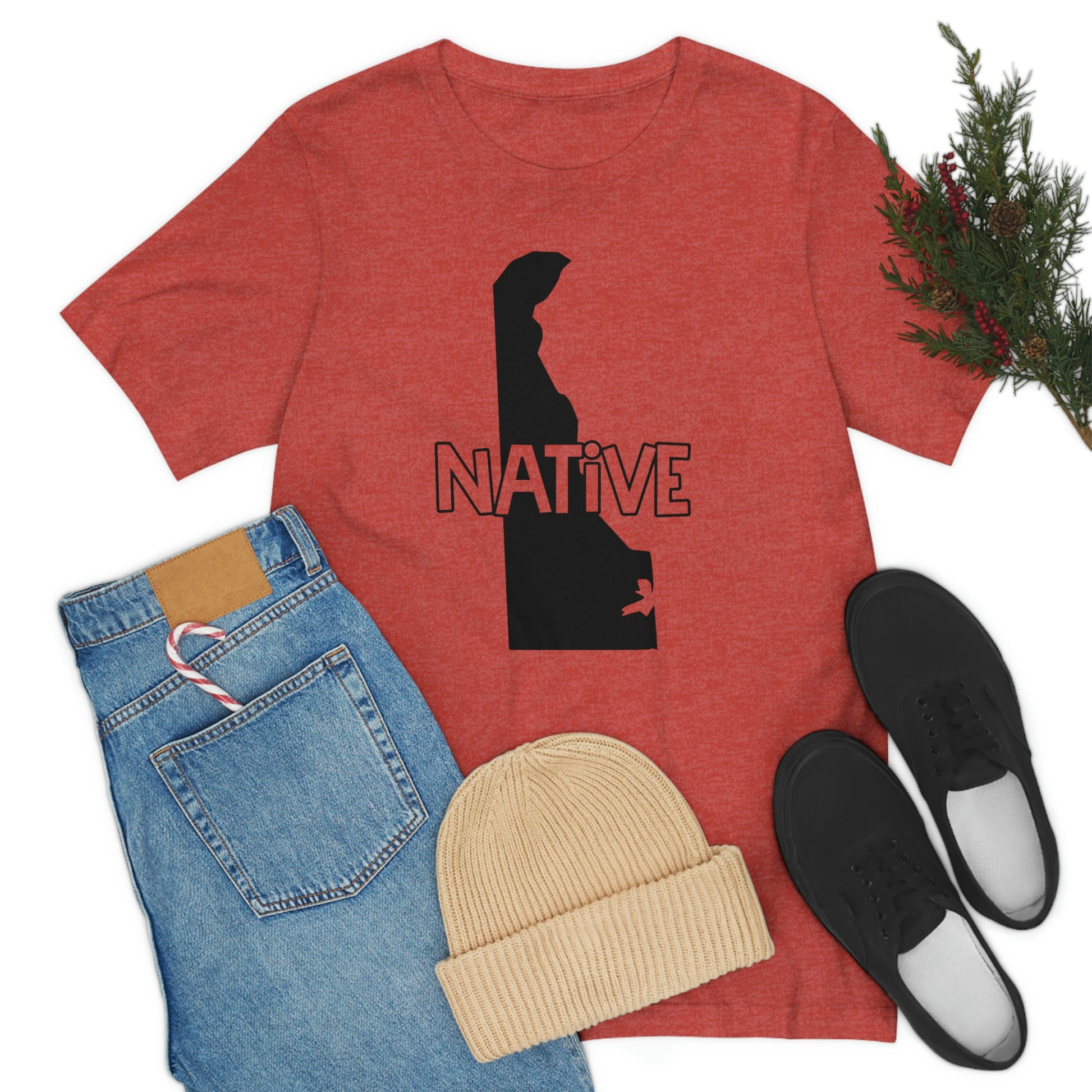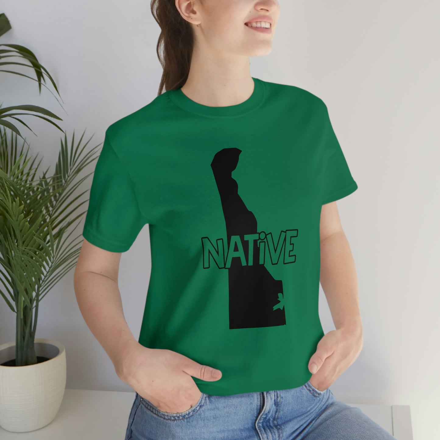 Show off your love and pride in Delaware with this classic unisex short sleeve t-shirt showing the outline of the state with the word "native" across it. This tee fits like a well-loved favorite. Soft cotton and quality print make you fall in love with it over and over again. These t-shirts have ribbed knit collars to bolster shaping. The shoulders have taping for better fit over time. Dual side seams hold the garment's shape for longer.