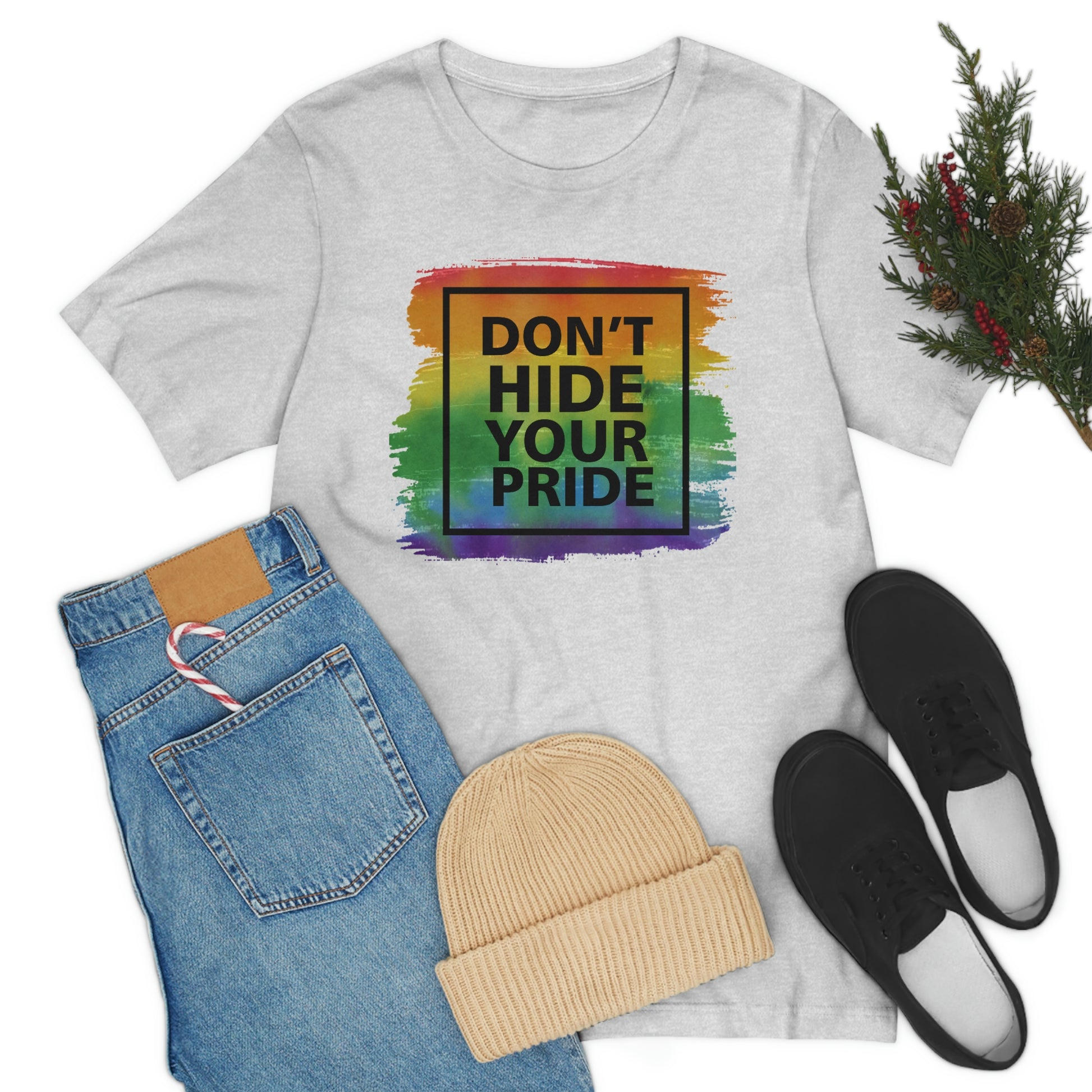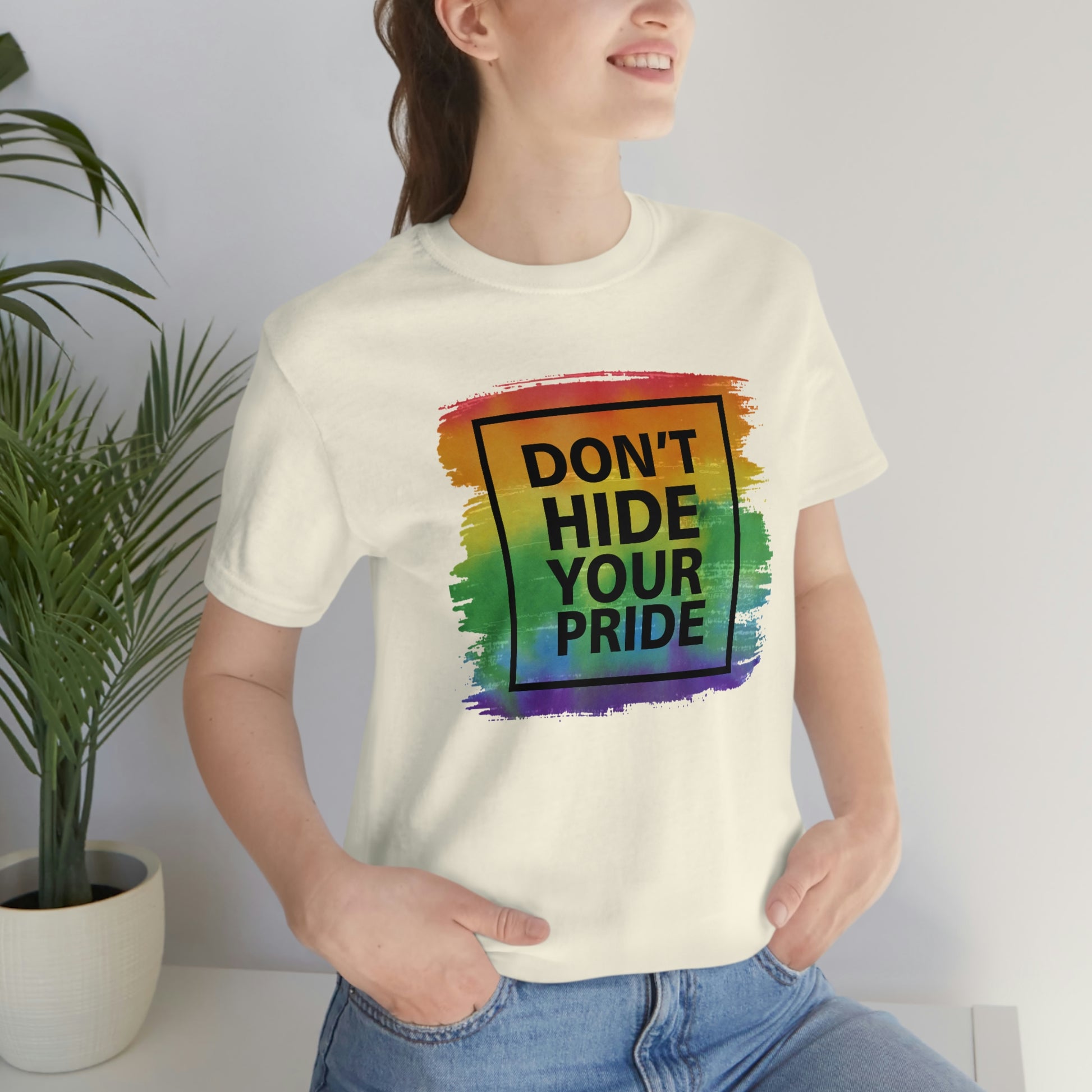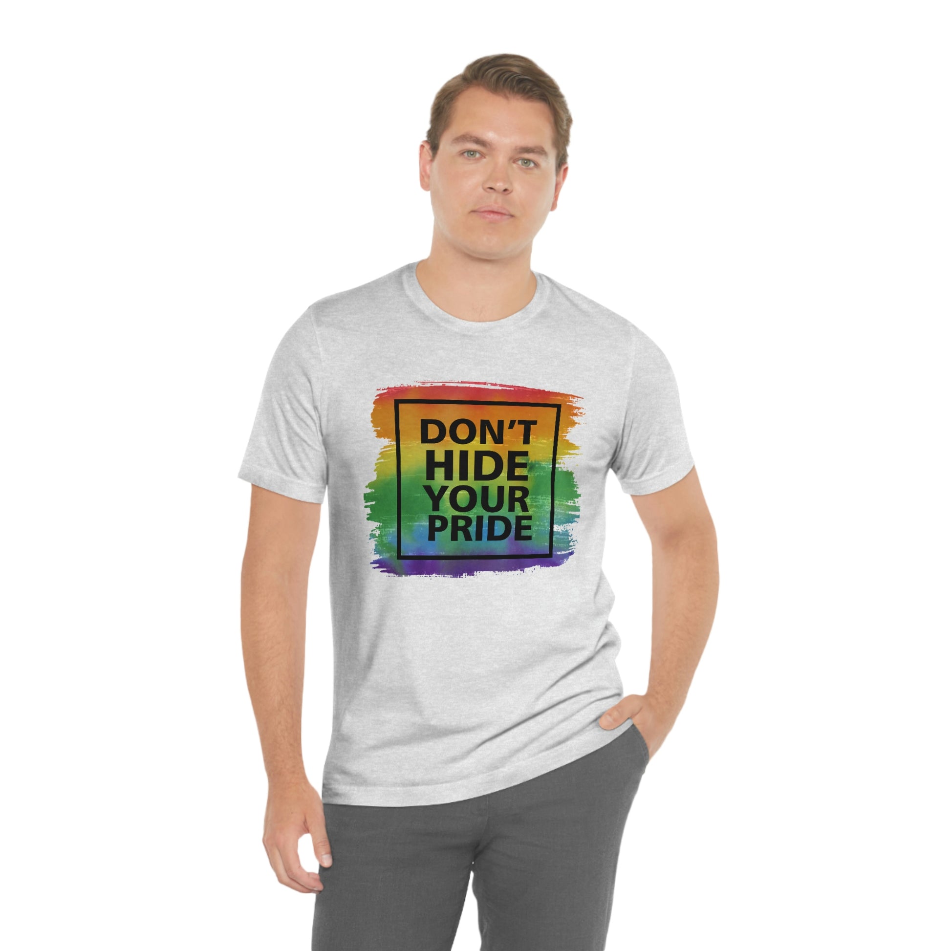 Don't Hide Your Pride LGBTQIA Print Unisex Jersey Short Sleeve Tee