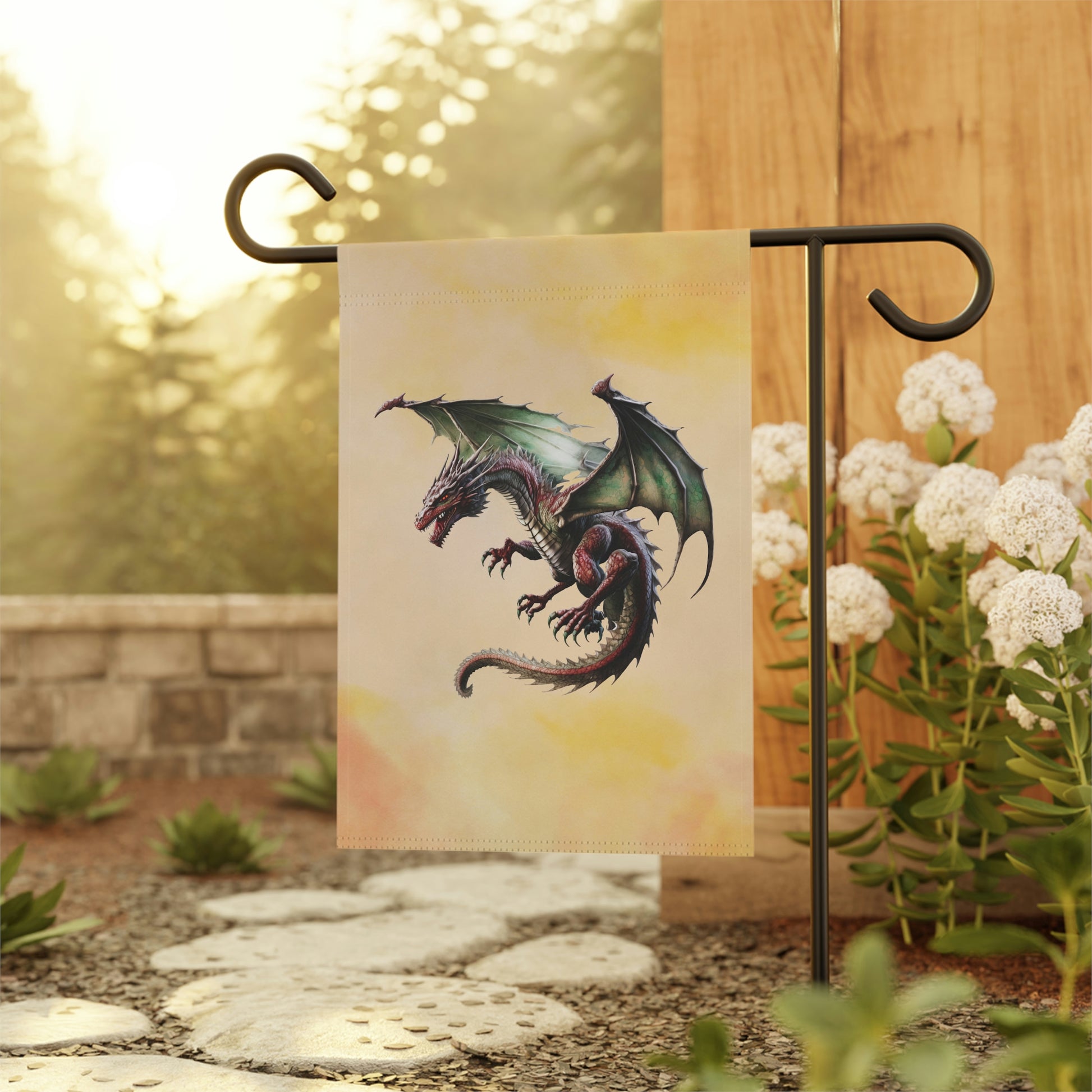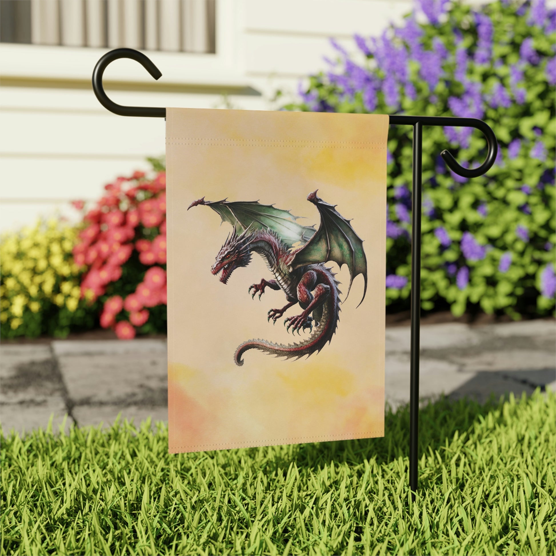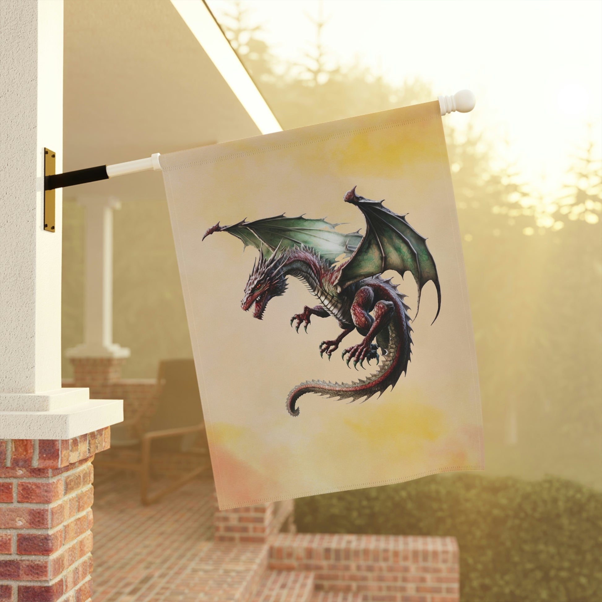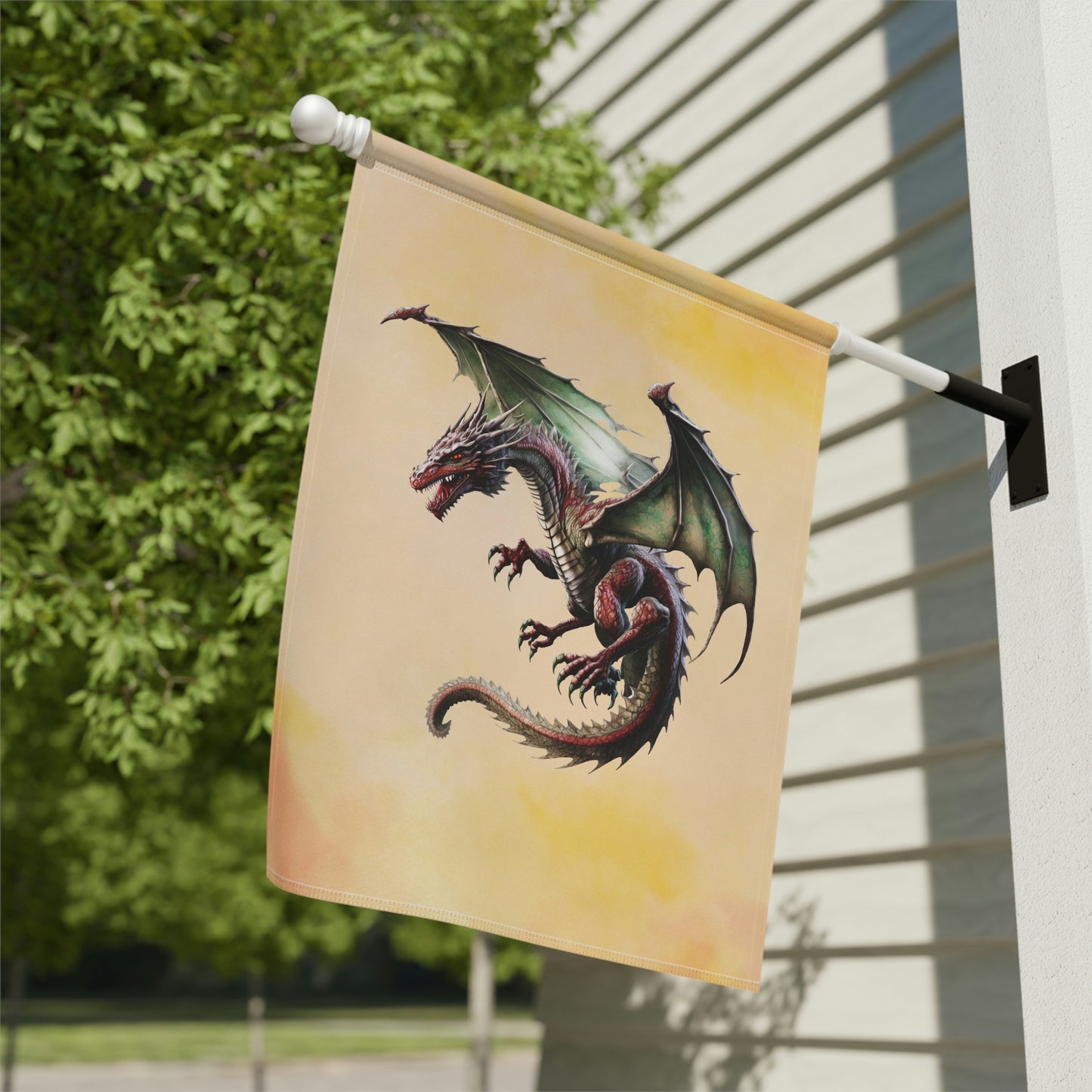 This flag comes in both the garden size and house size and shows a open winged flyring dragon.