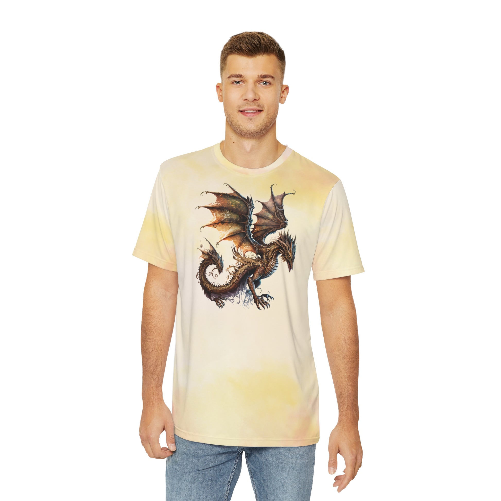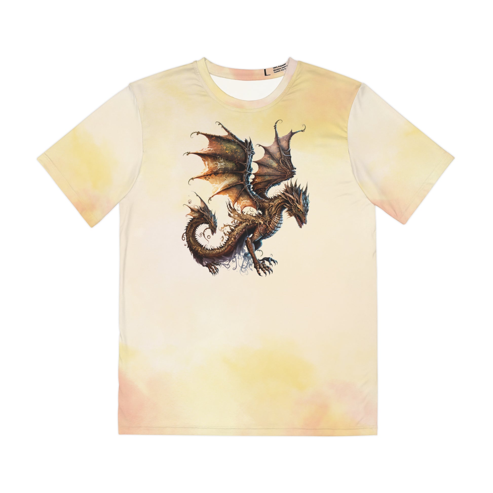 This t-shirt features a watercolor background with a flying dragon with open wings. Made with 100% silky smooth, brushed polyester, these t-shirts are comfy, and designed to be shrink and fade-resistant. All panels are cut and sewn together by skilled artisans for picture-prefect printing and excellent fit.