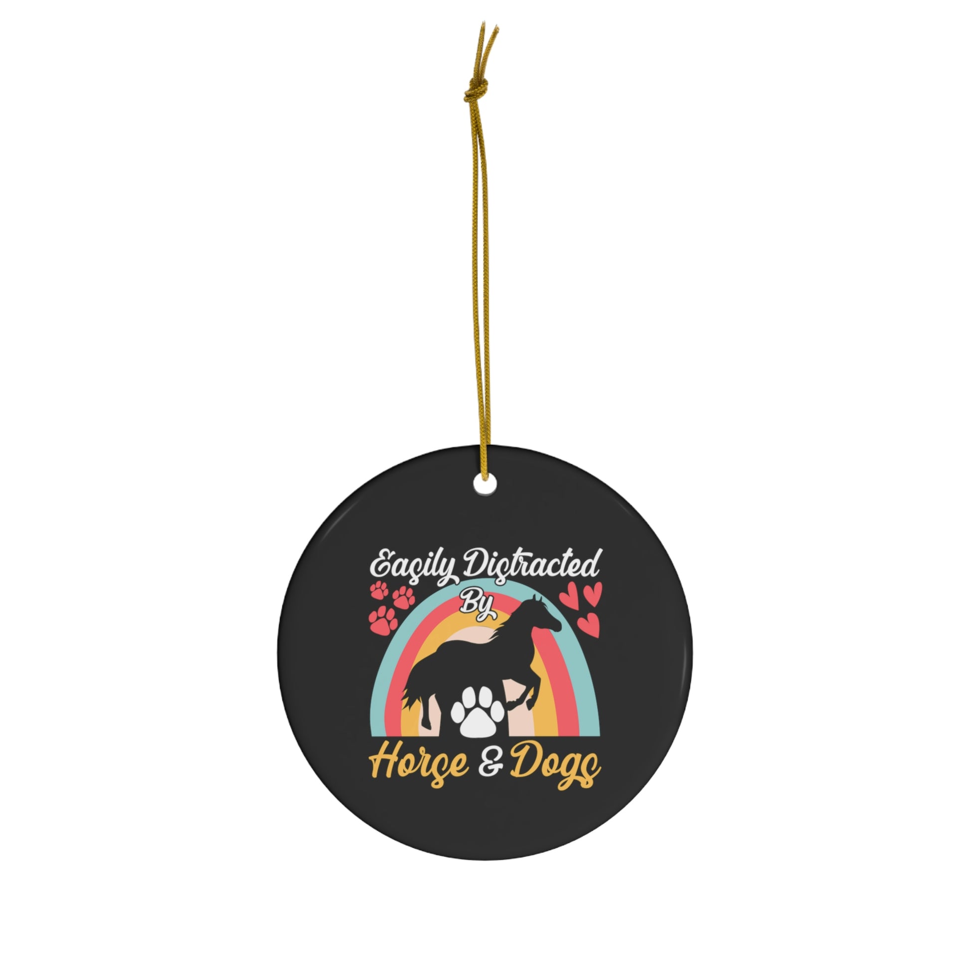 Easily Distracted by Horse and Dogs Ceramic Ornament
