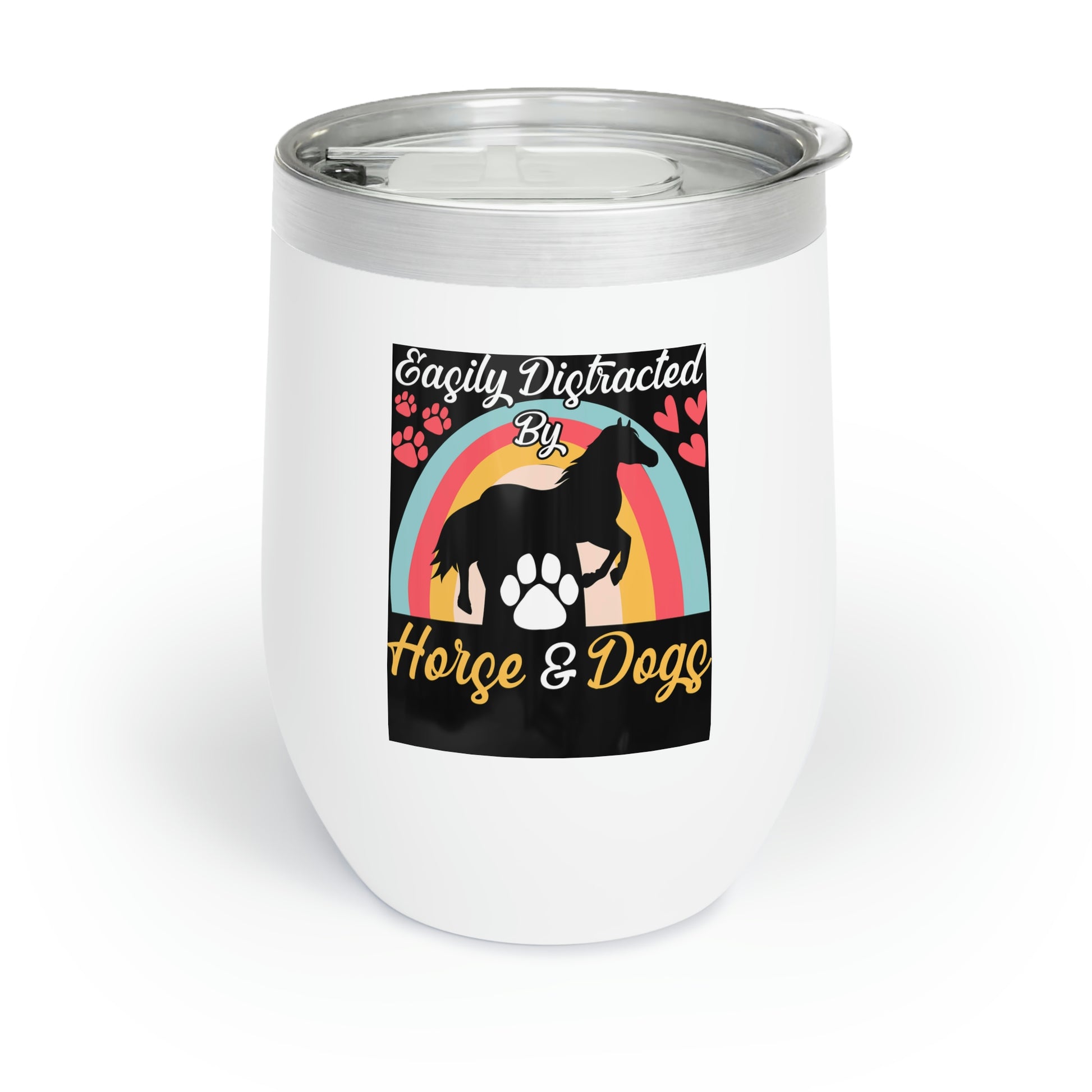 Easily Distracted by Horse and Dogs Chill Wine Tumbler