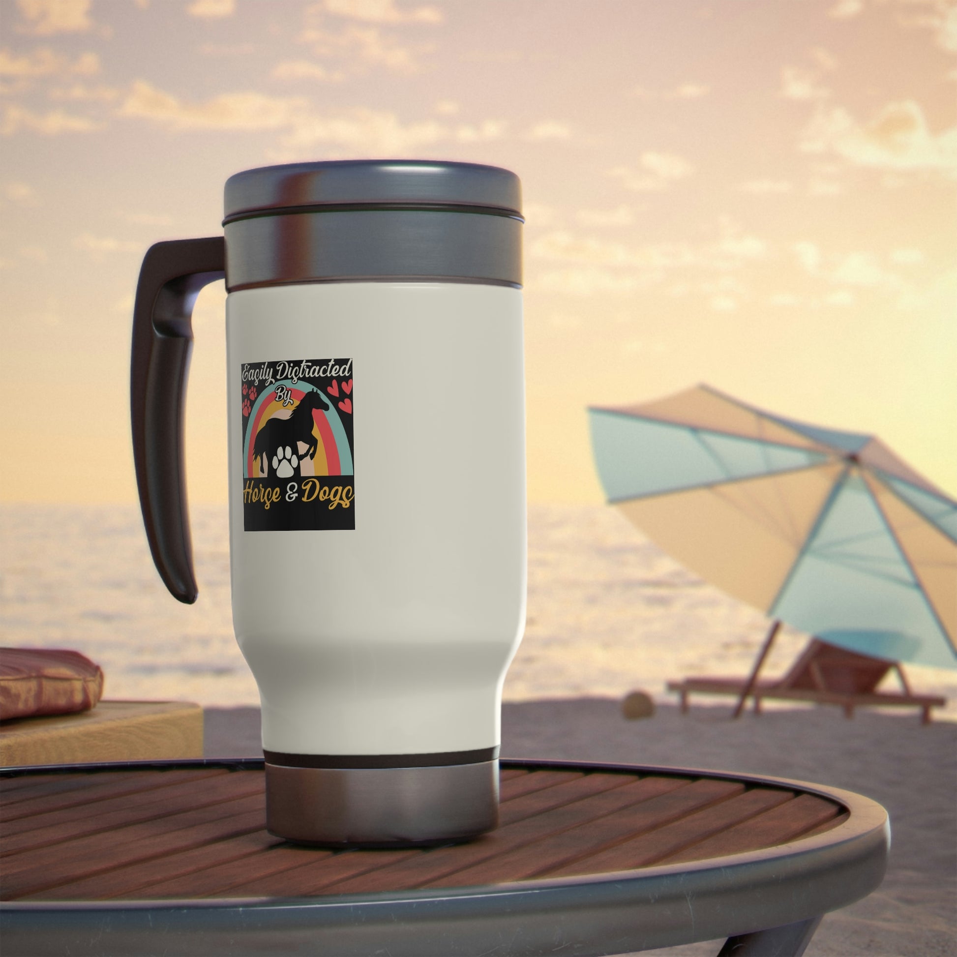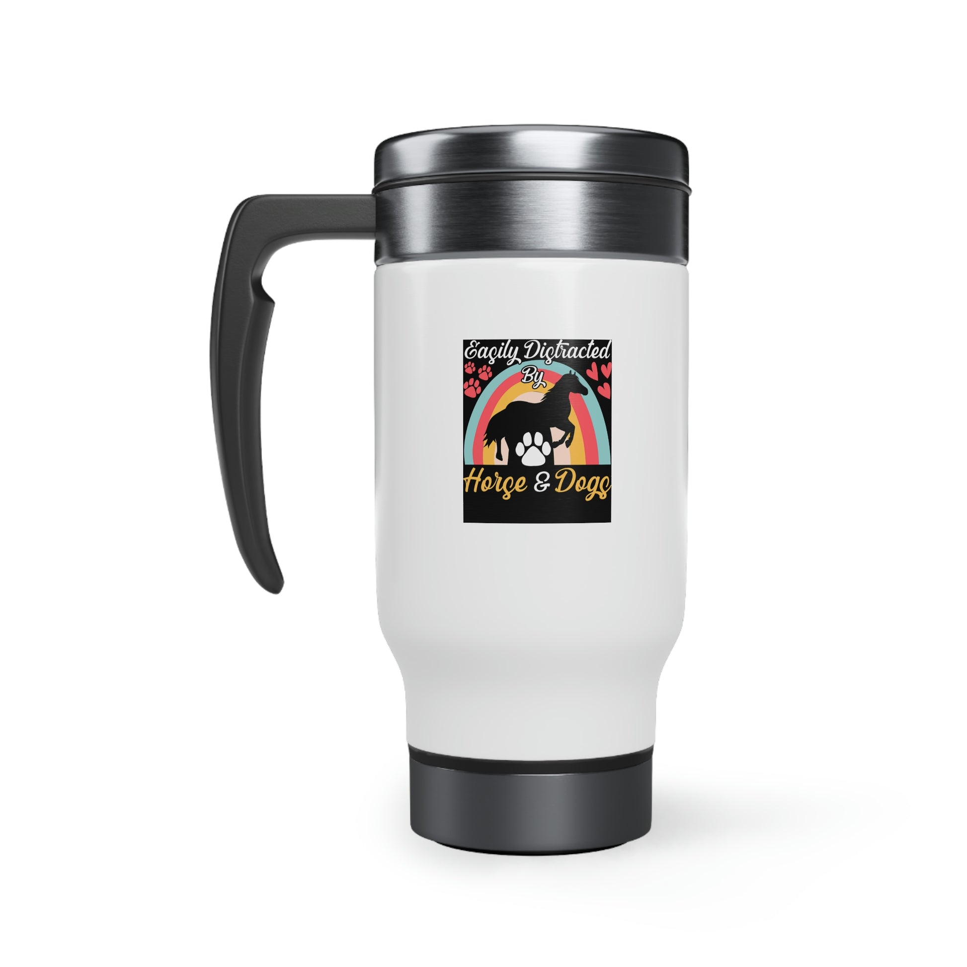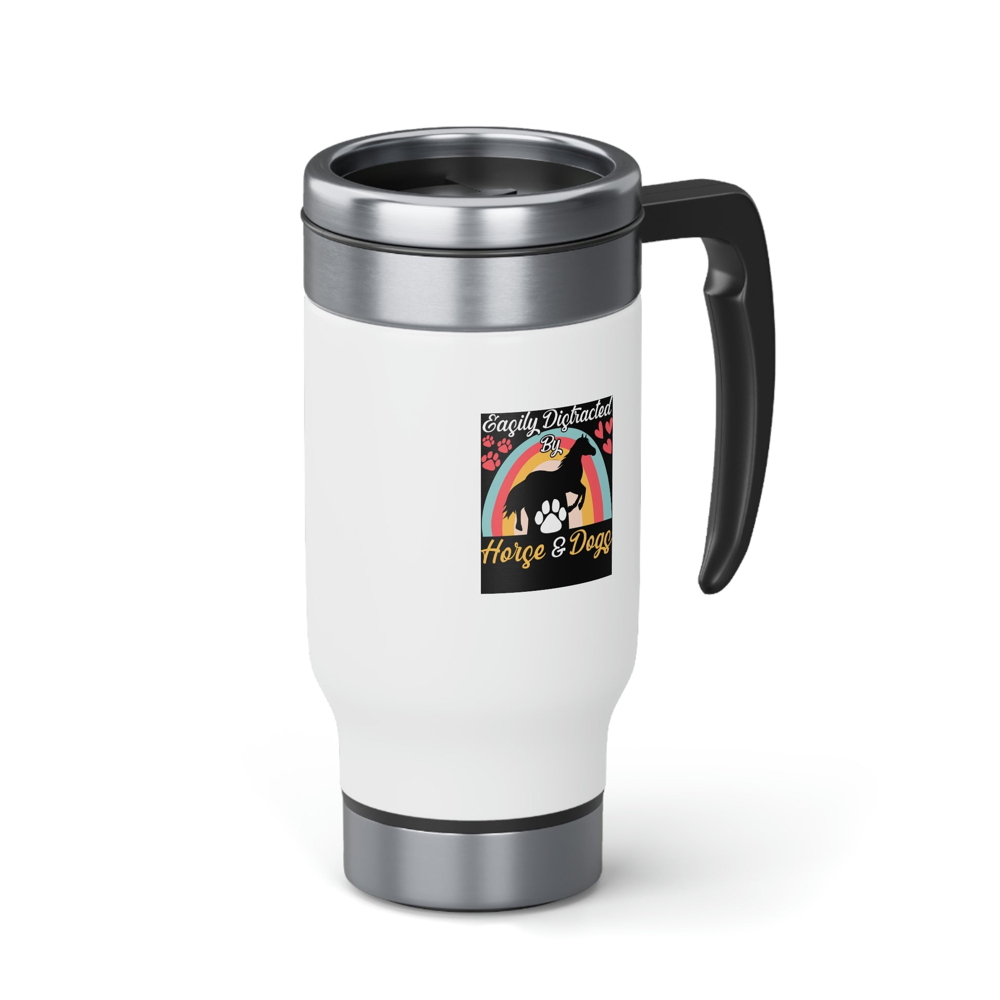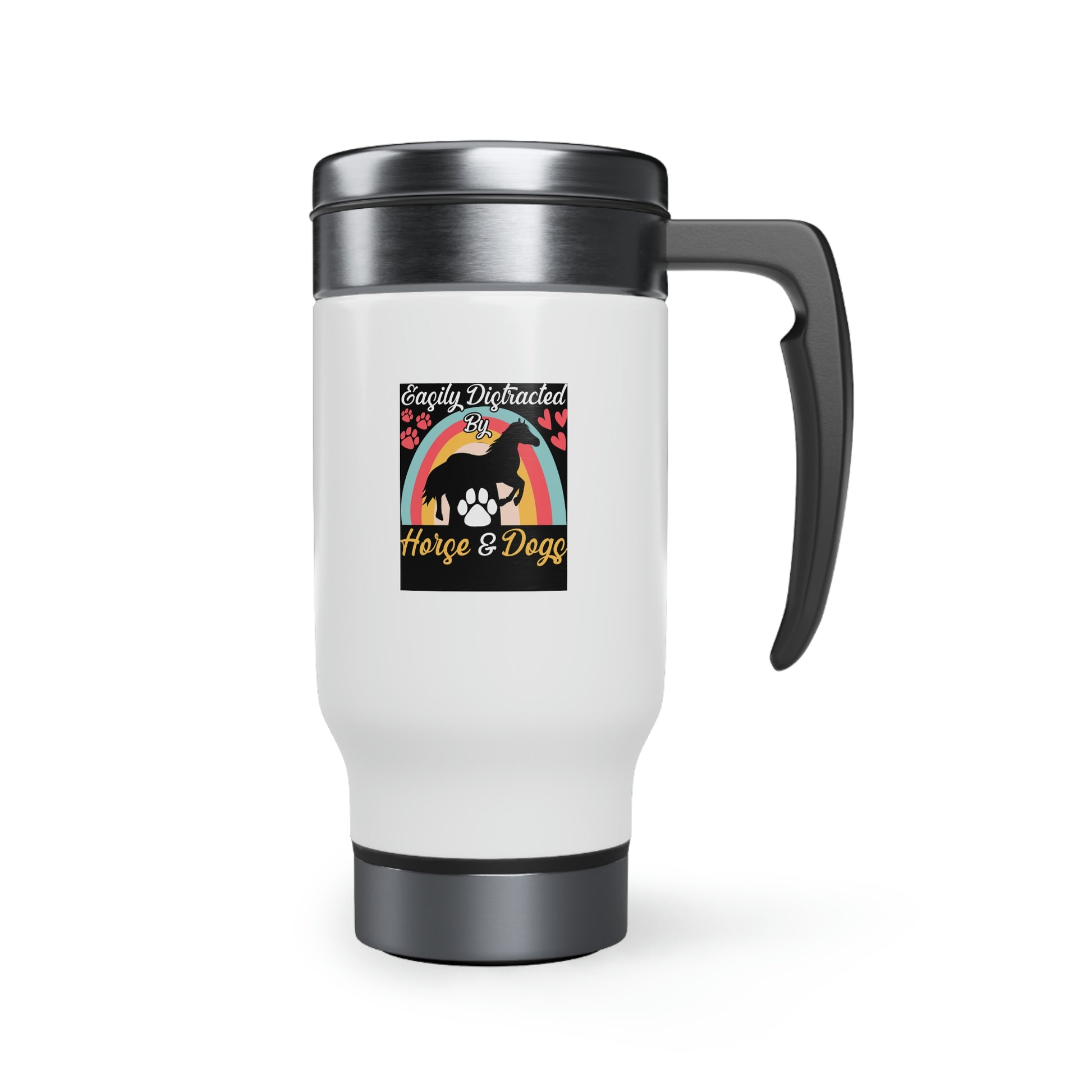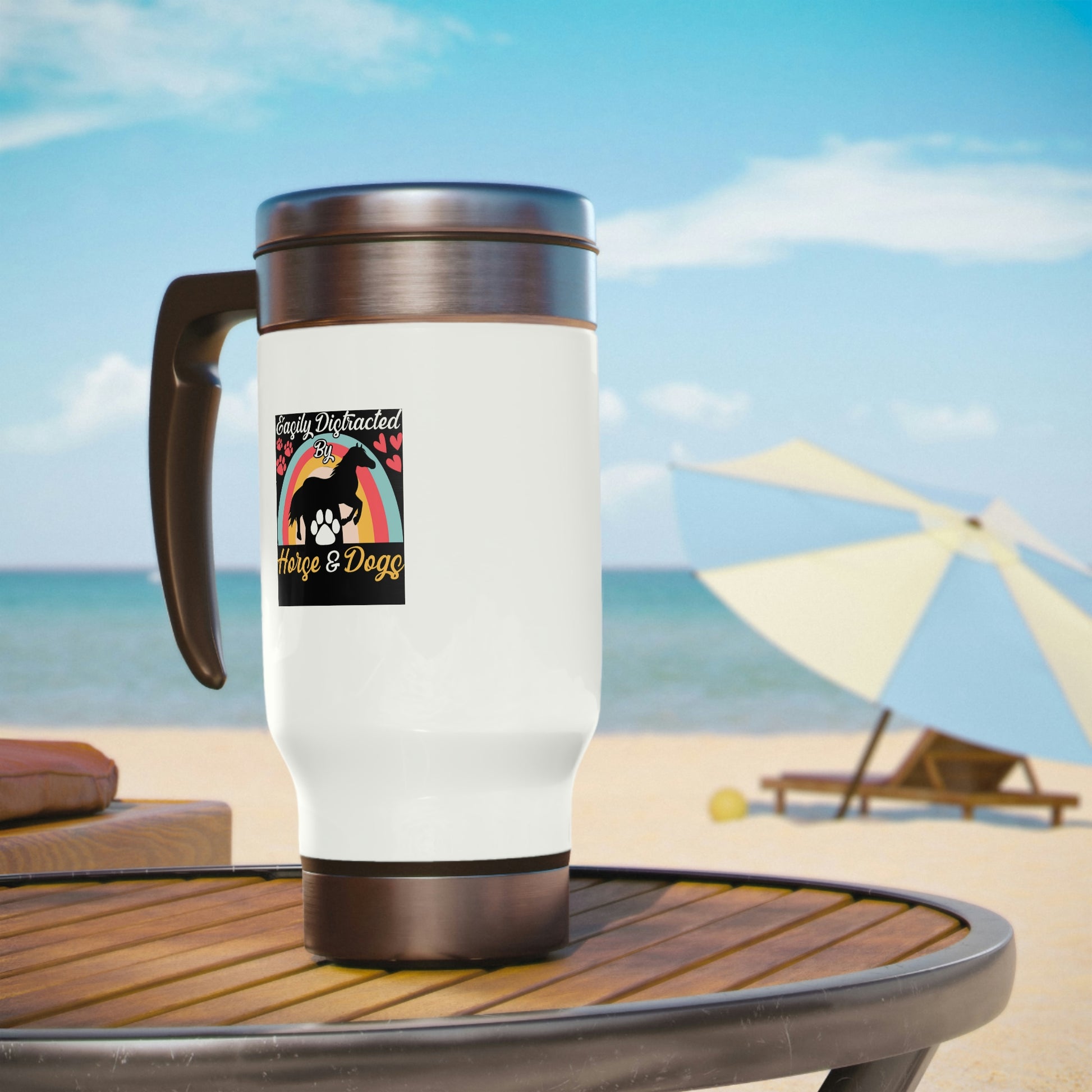 Easily Distracted by Horse and Dogs Stainless Steel Travel Mug with Handle, 14oz