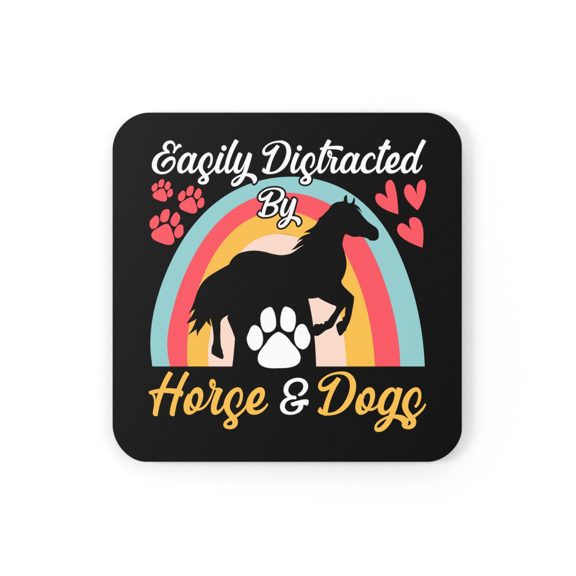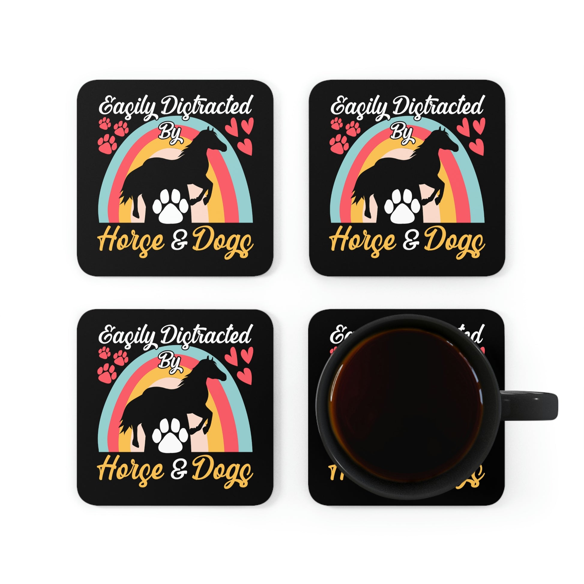Easily Distracted by Horse & Dogs Corkwood Coaster Set