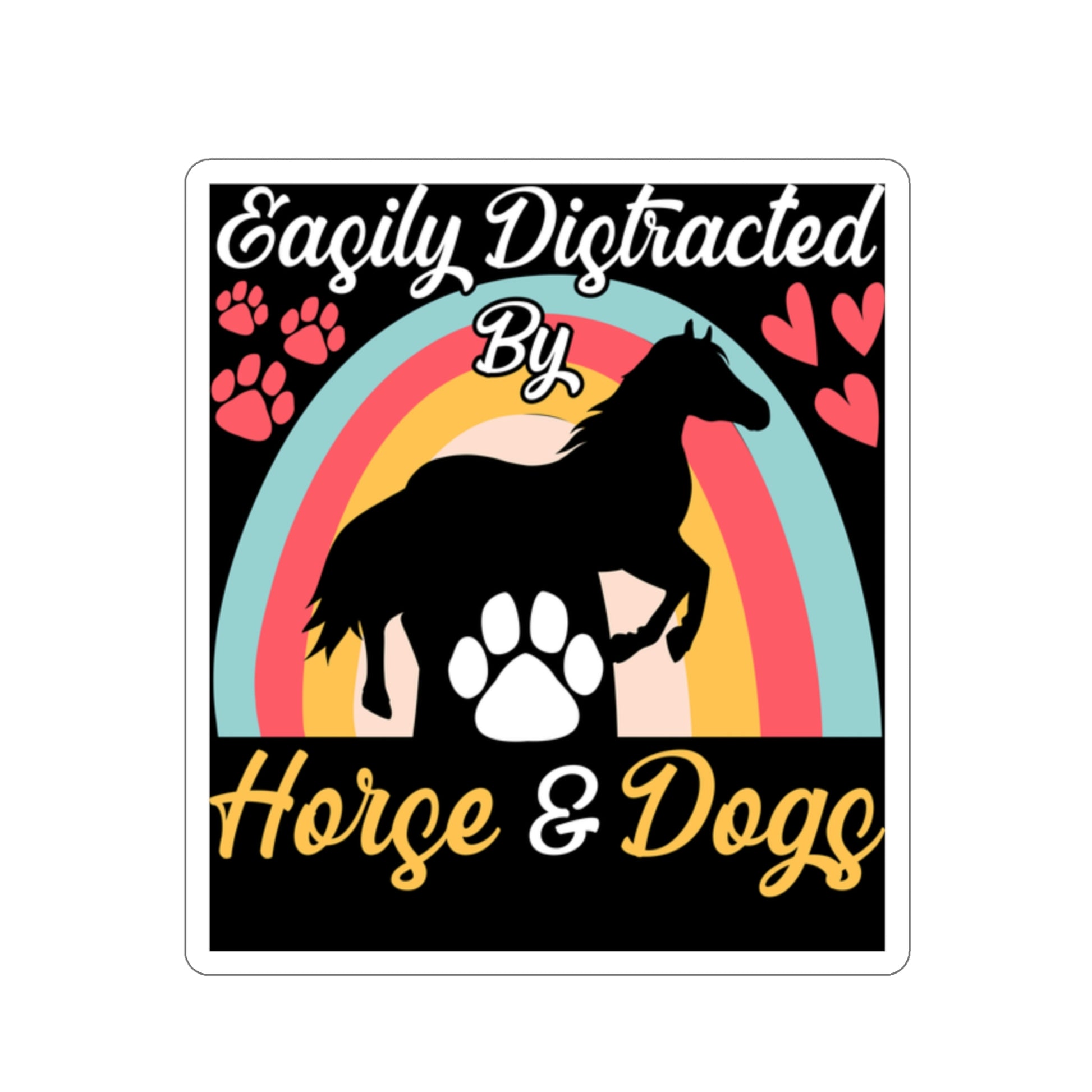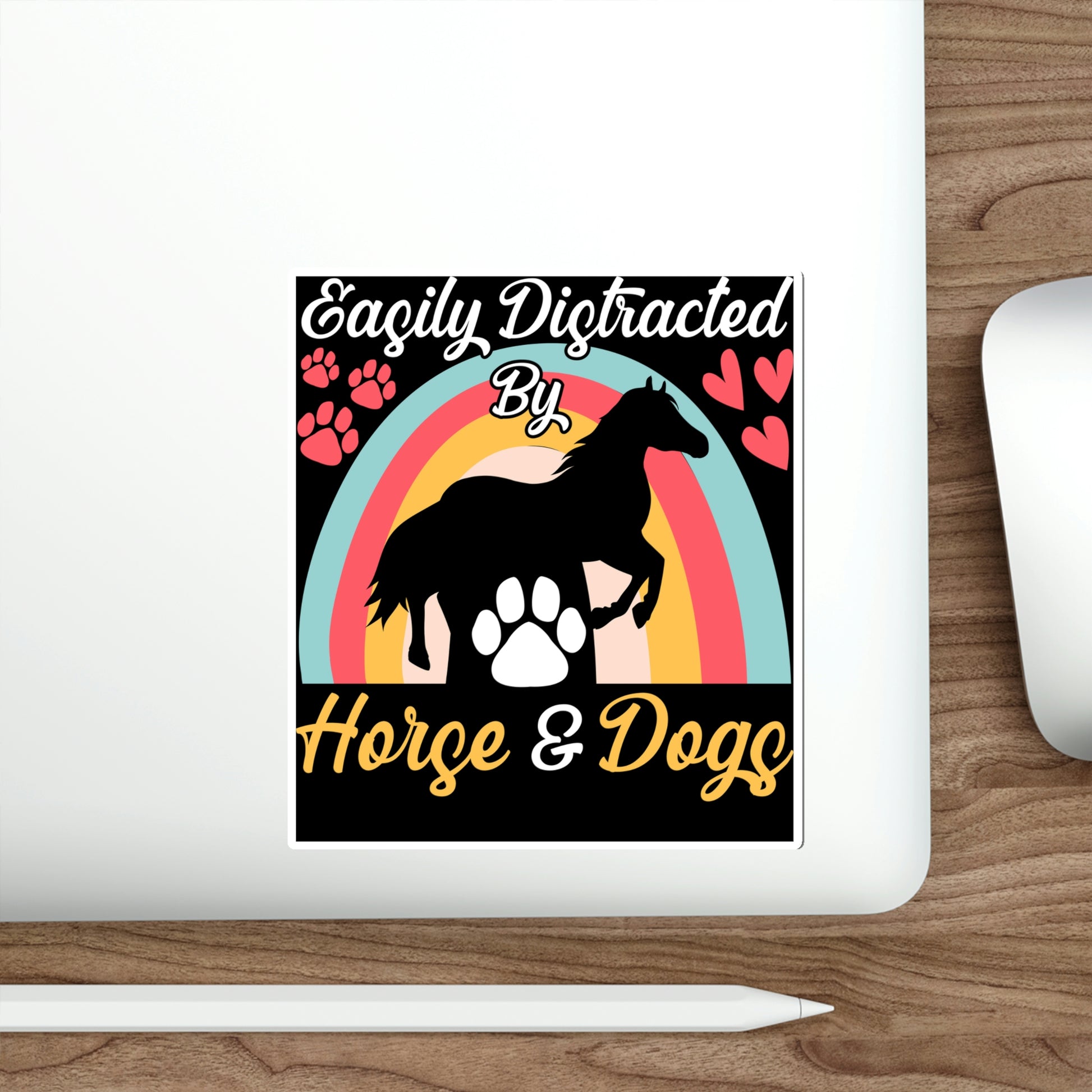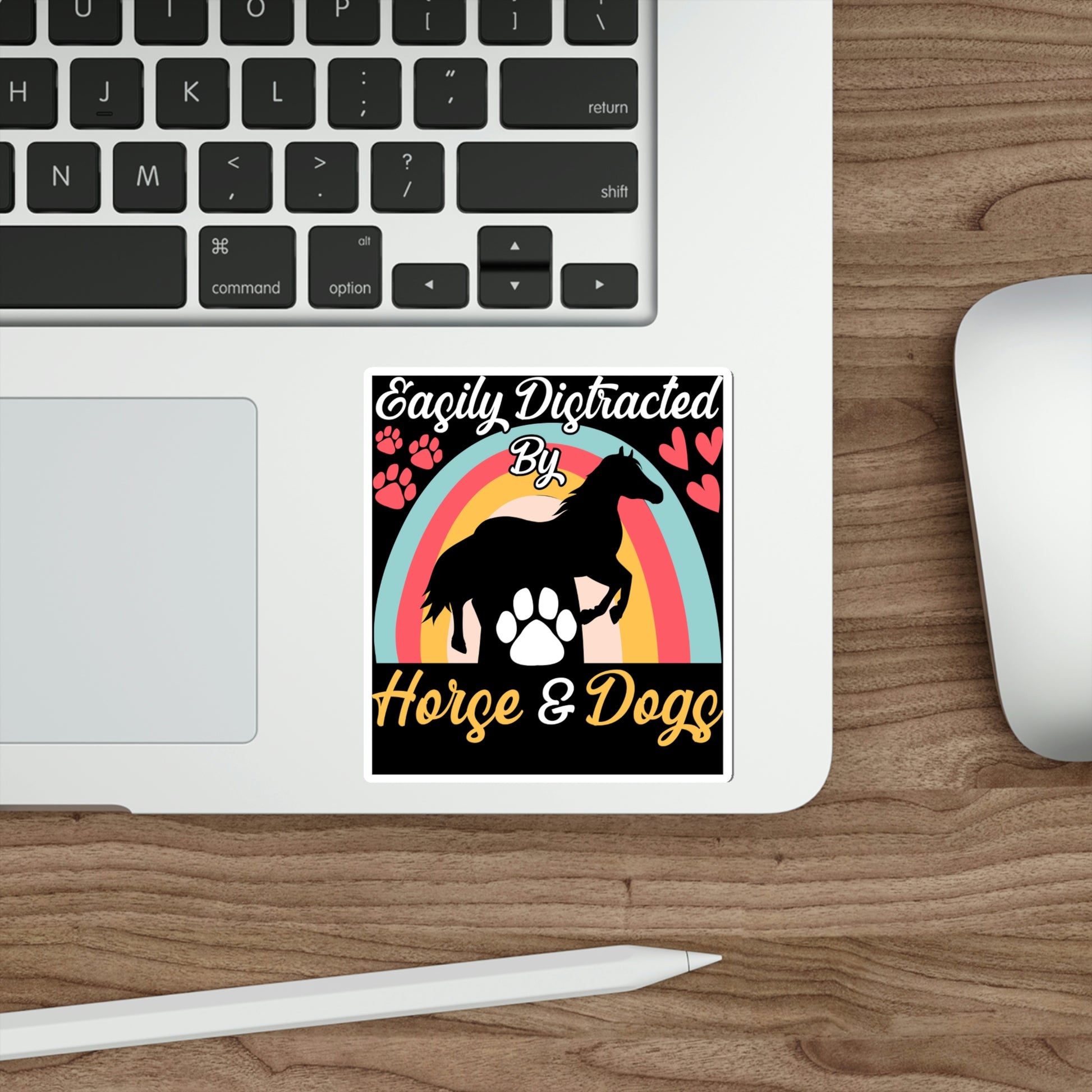 Easily Distracted by Horse & Dogs Die-Cut Stickers