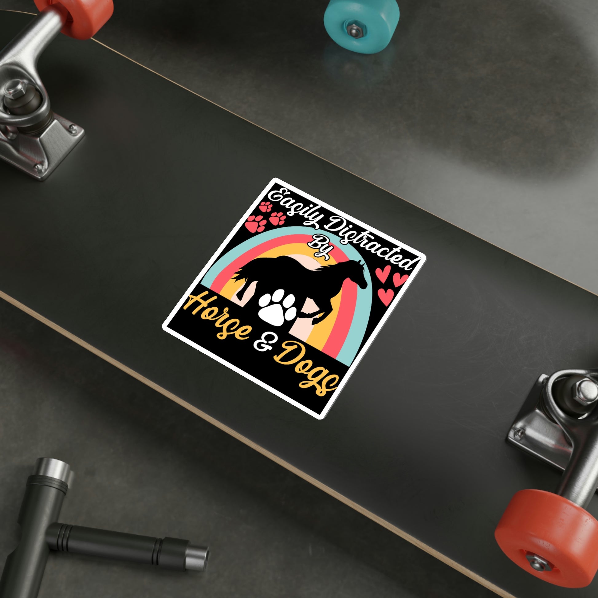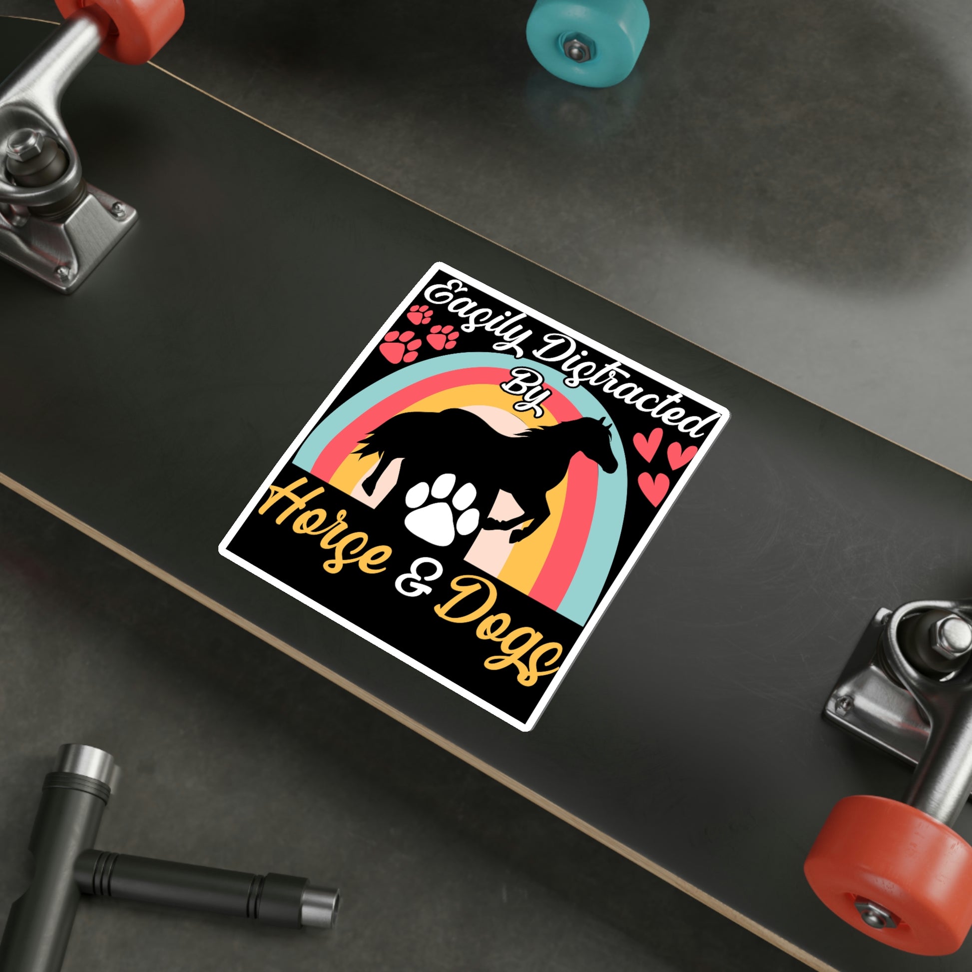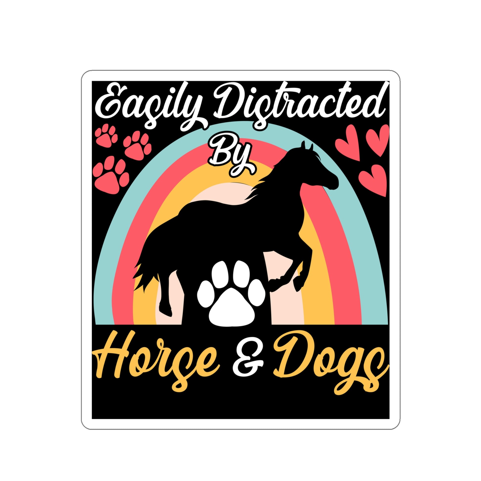 Easily Distracted by Horse & Dogs Die-Cut Stickers