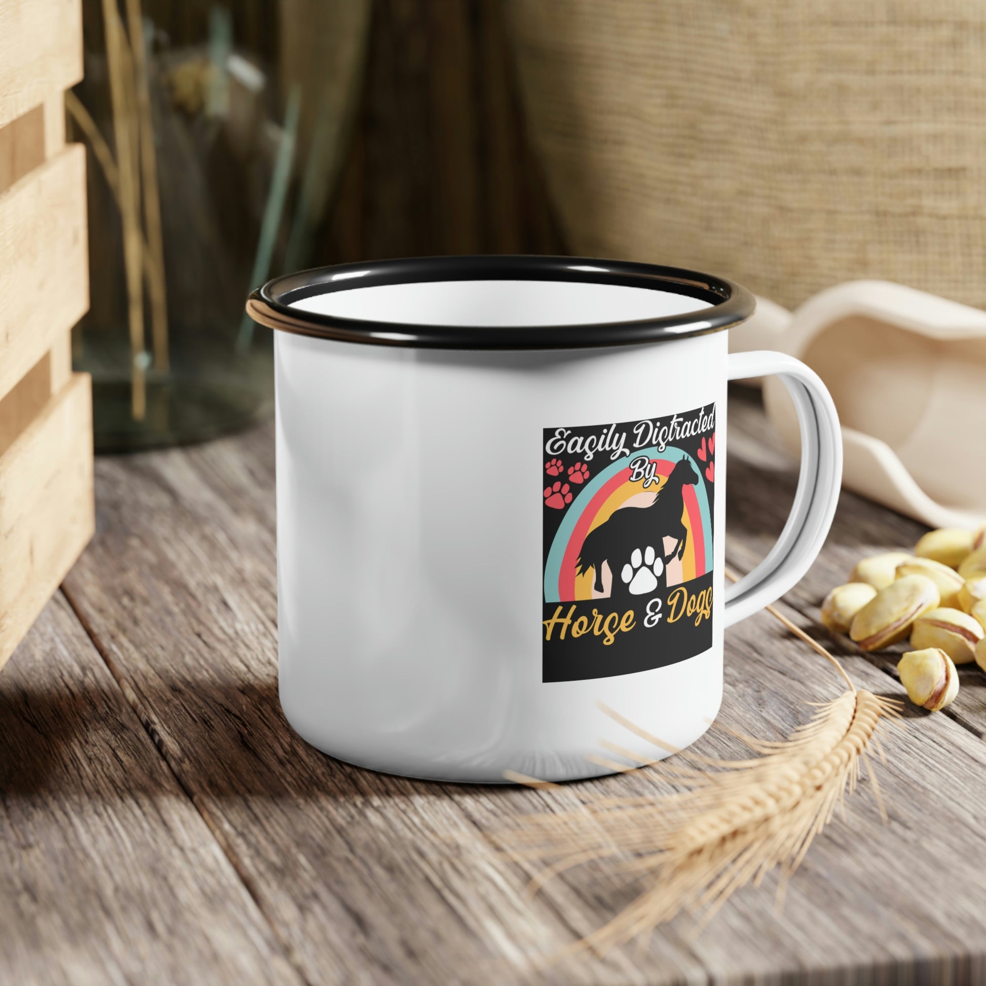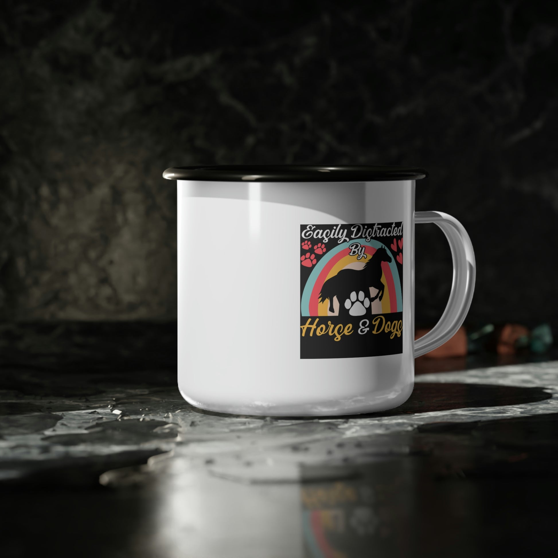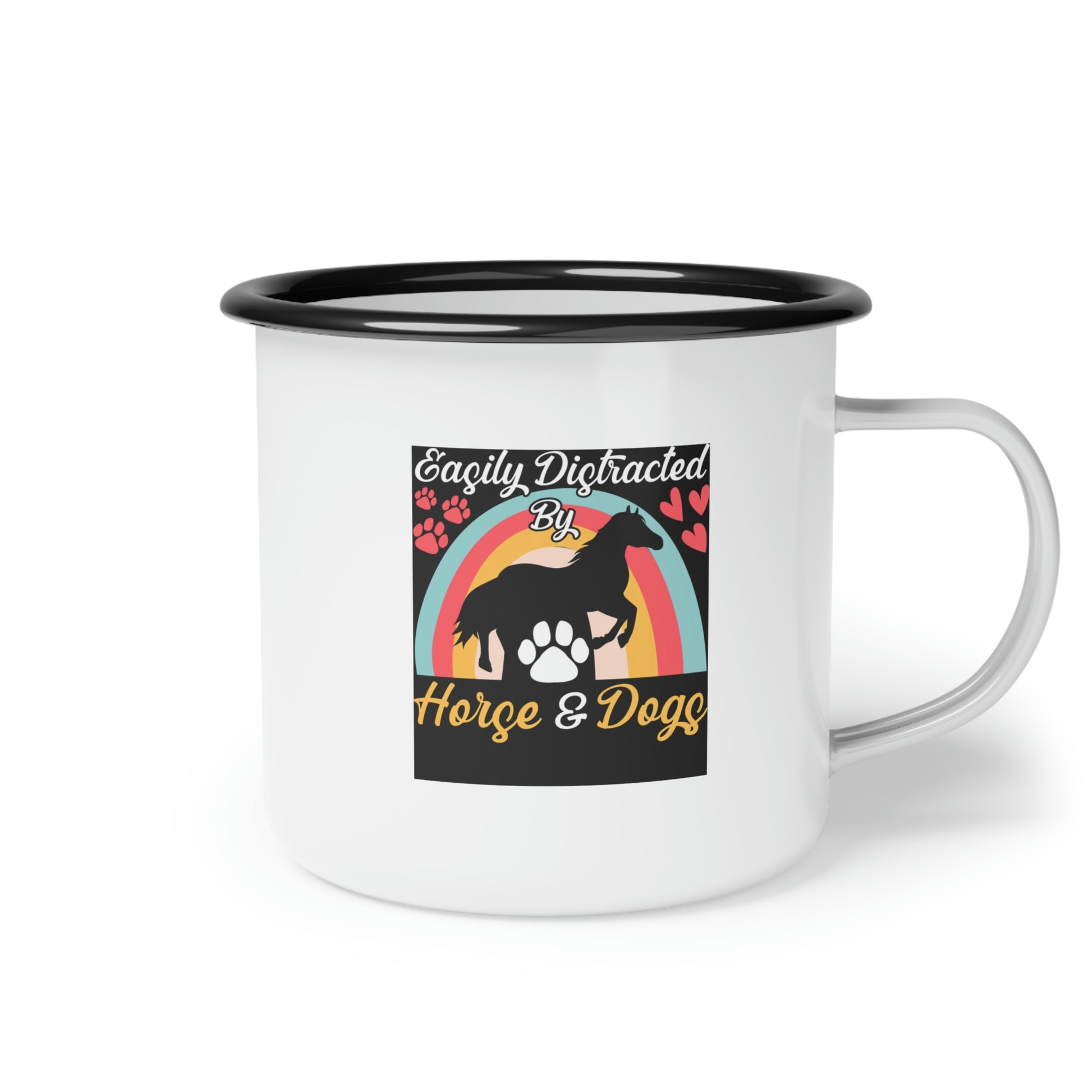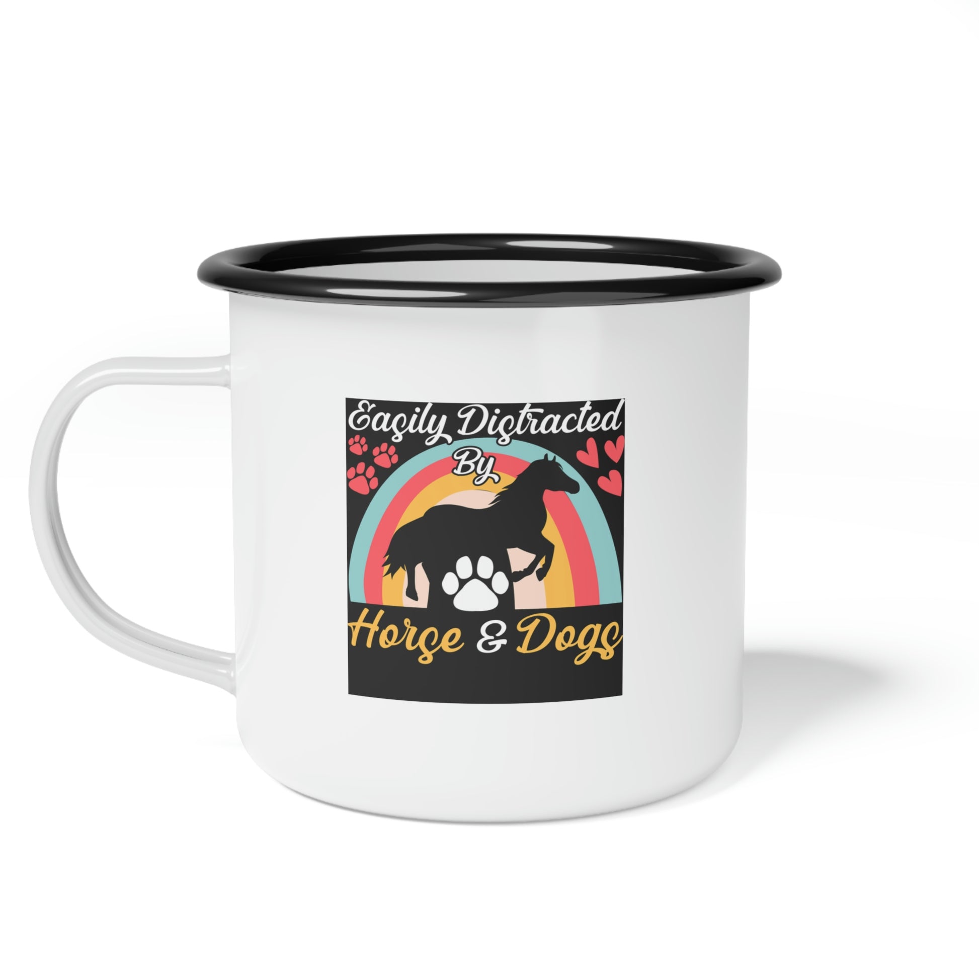 Easily Distracted Horse by Dogs White Enamel Camp Cup