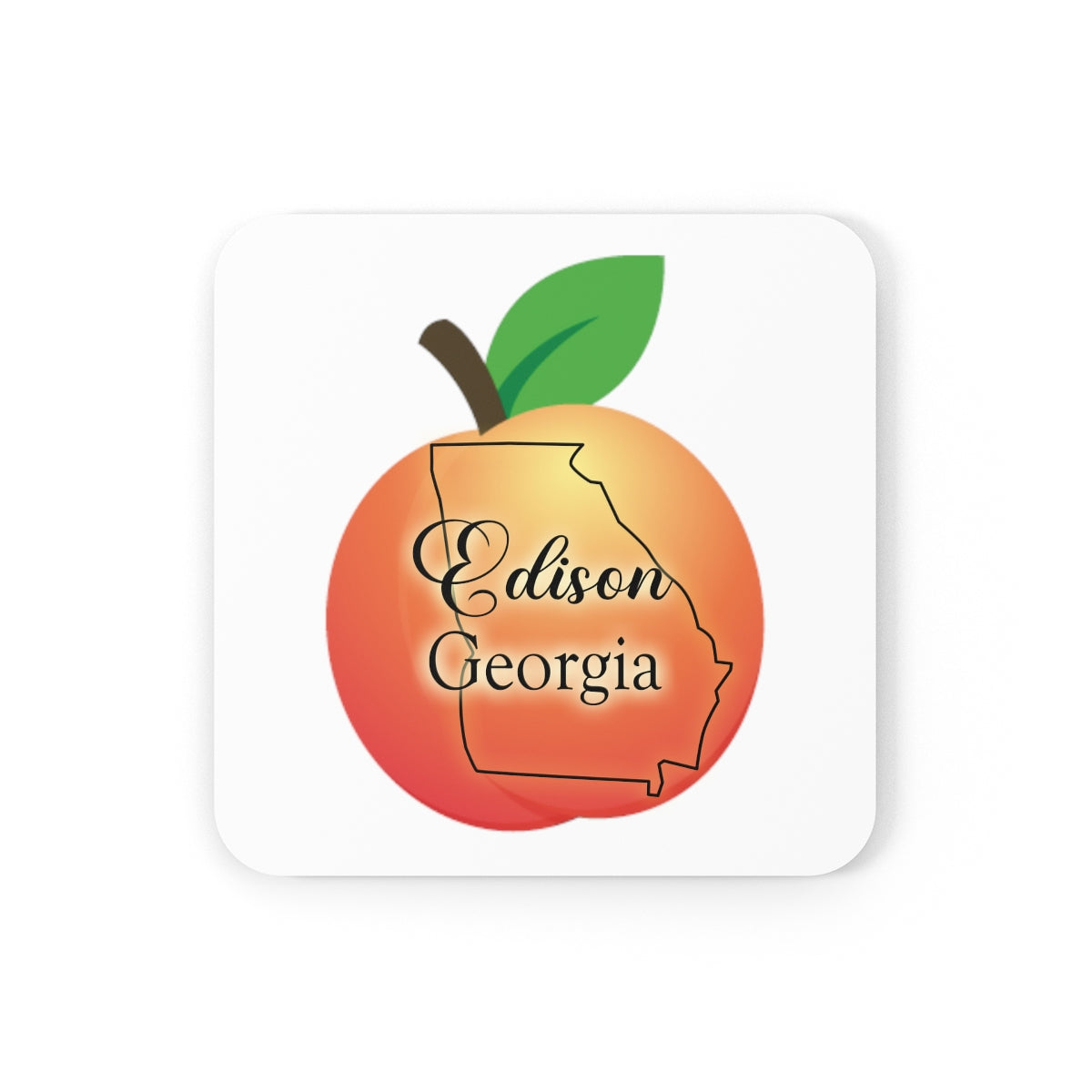 This coaster set comes with 4 coasters in one size. They are made with a high-gloss top and feature a cork back to prevent sliding.