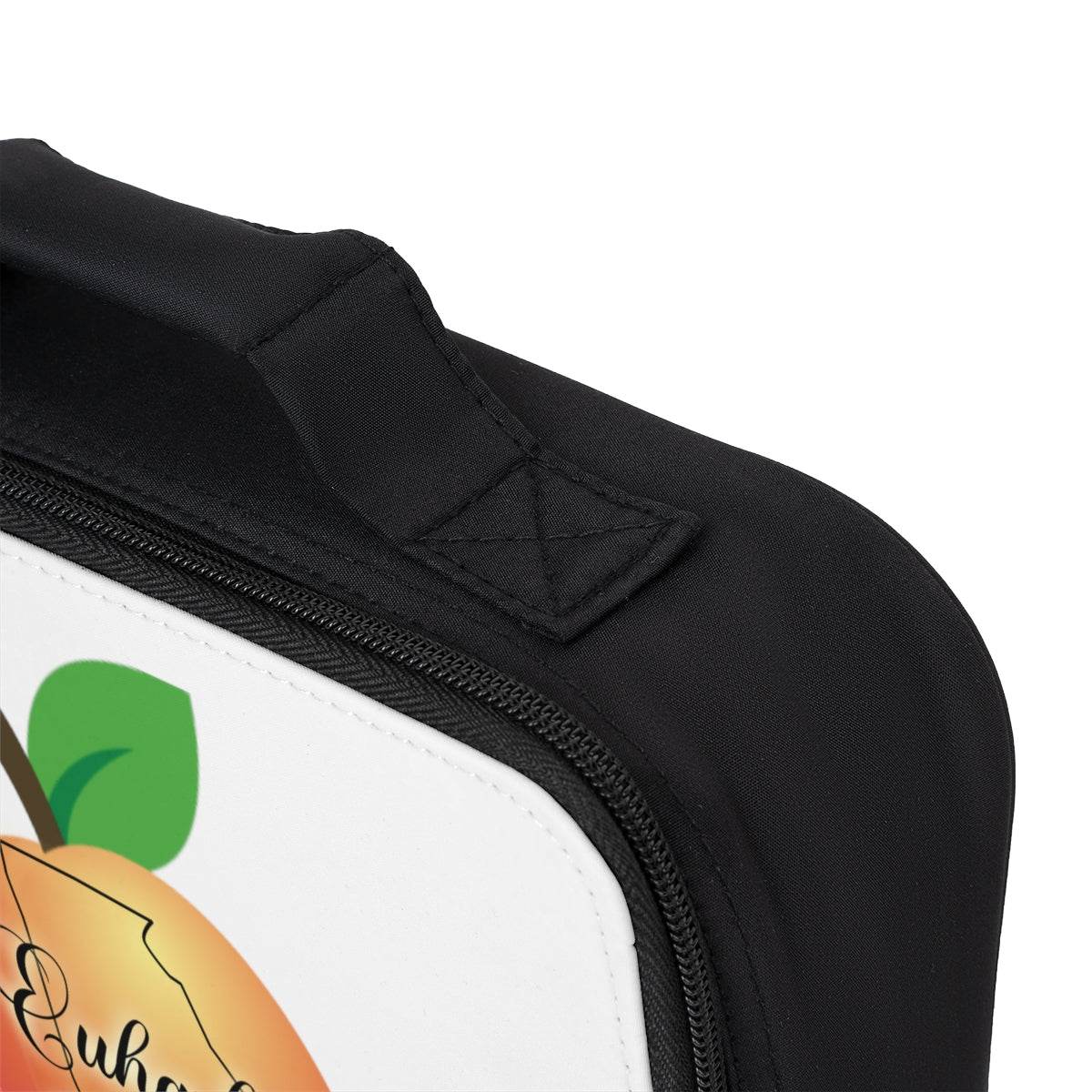 Show your love and pride in your home town or county. This lunch bag has a zippered closure, a convenient carrying handle, and a durable fabric made with 20% cotton - 80% polyester.