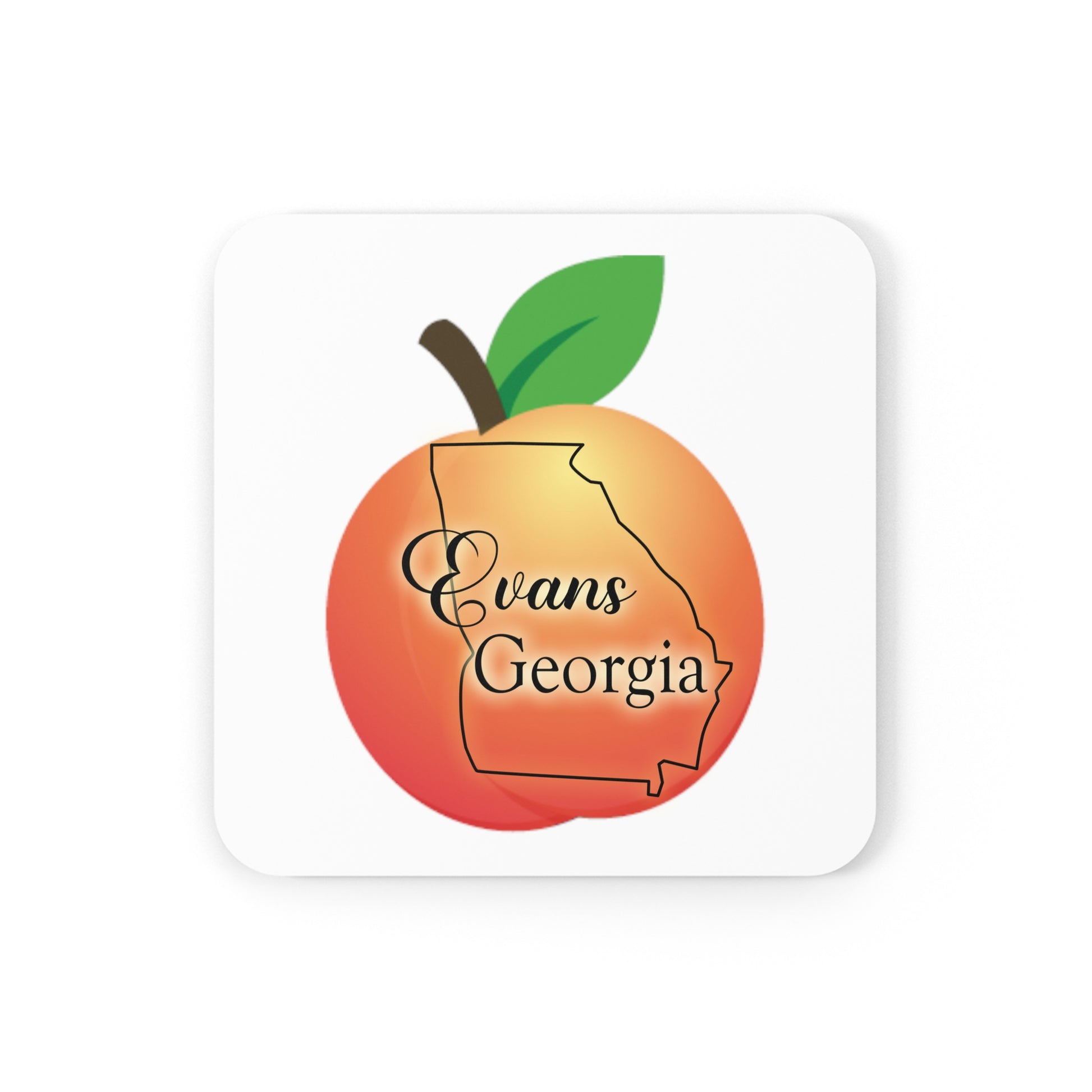 This coaster set comes with 4 coasters in one size. They are made with a high-gloss top and feature a cork back to prevent sliding.