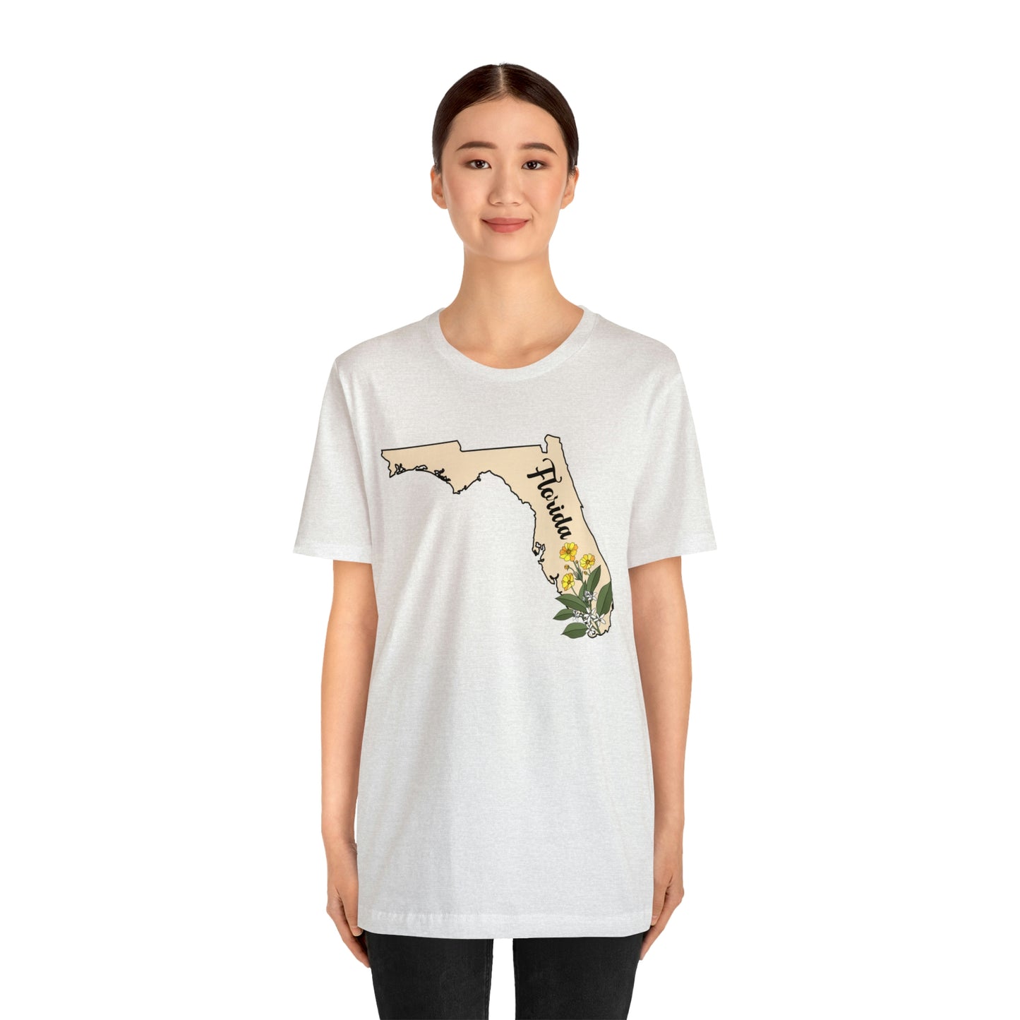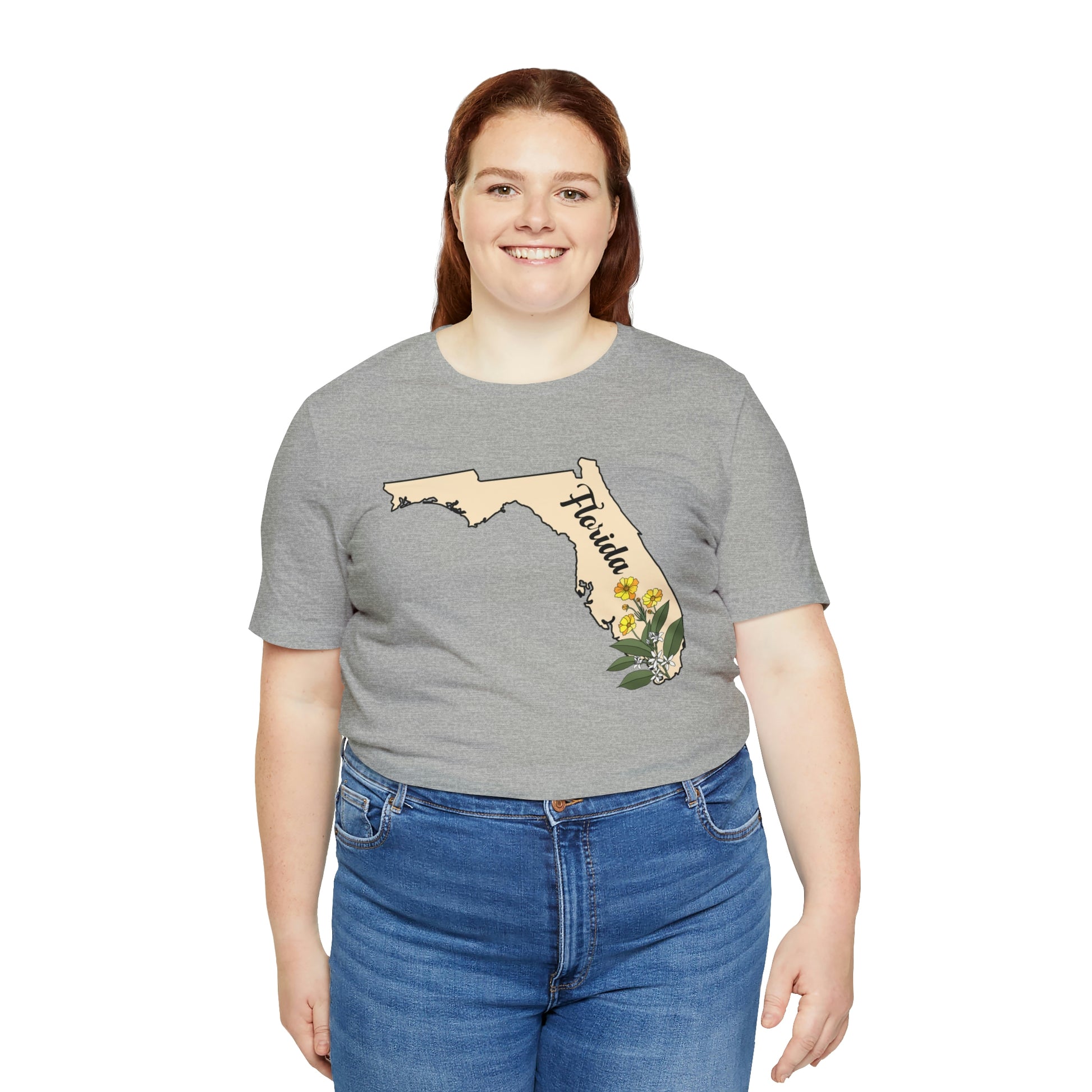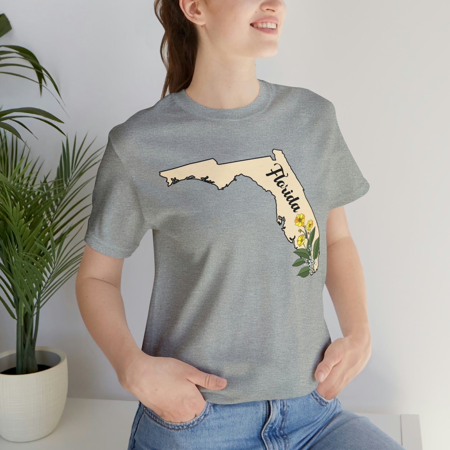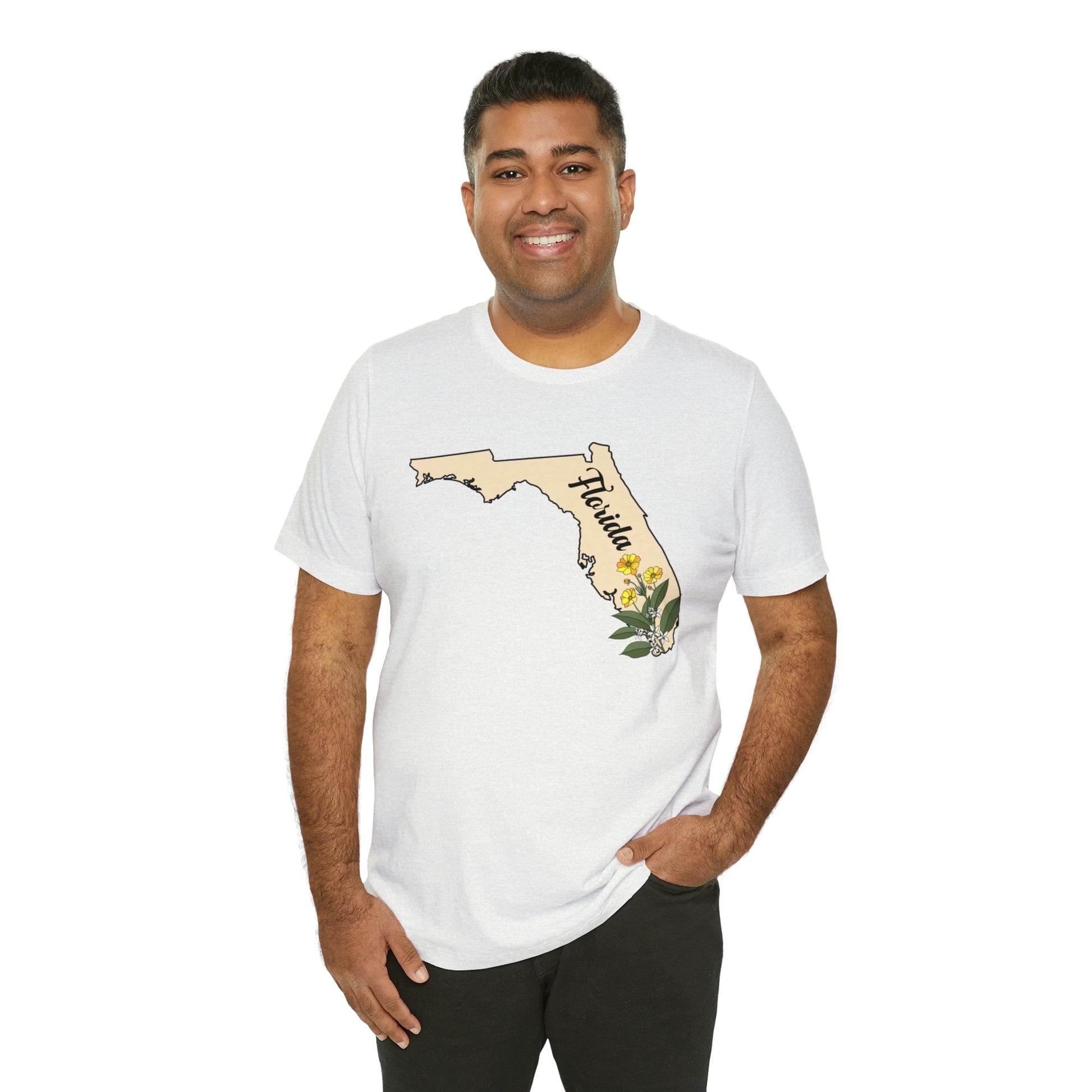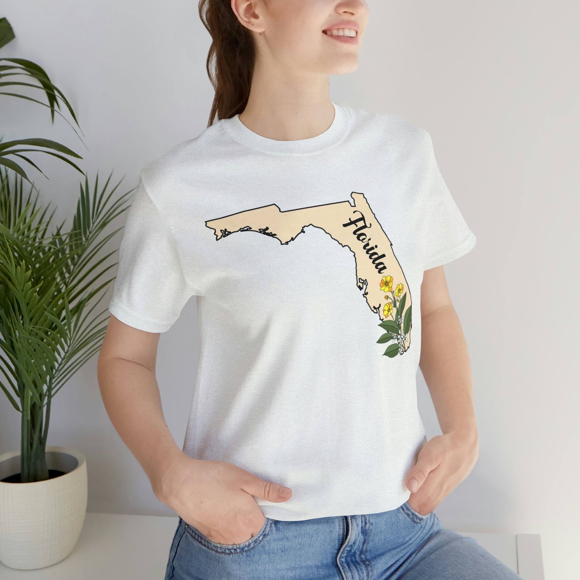Show off your love and pride in Florida with this classic unisex short sleeve t-shirt showing Florida with a orange blossom on it. This tee fits like a well-loved favorite. Soft cotton and quality print make you fall in love with it over and over again. These t-shirts have ribbed knit collars to bolster shaping. The shoulders have taping for better fit over time. Dual side seams hold the garment's shape for longer.