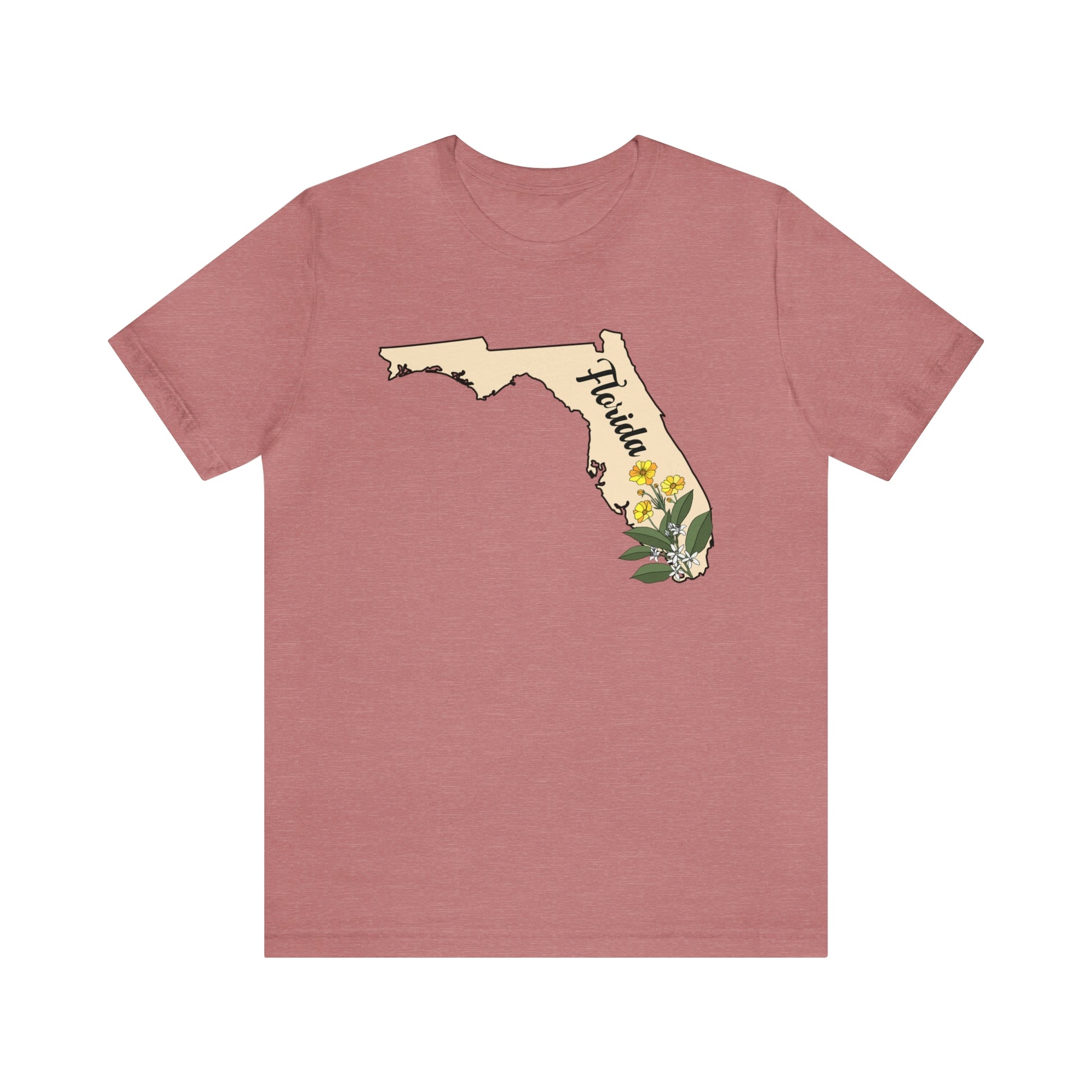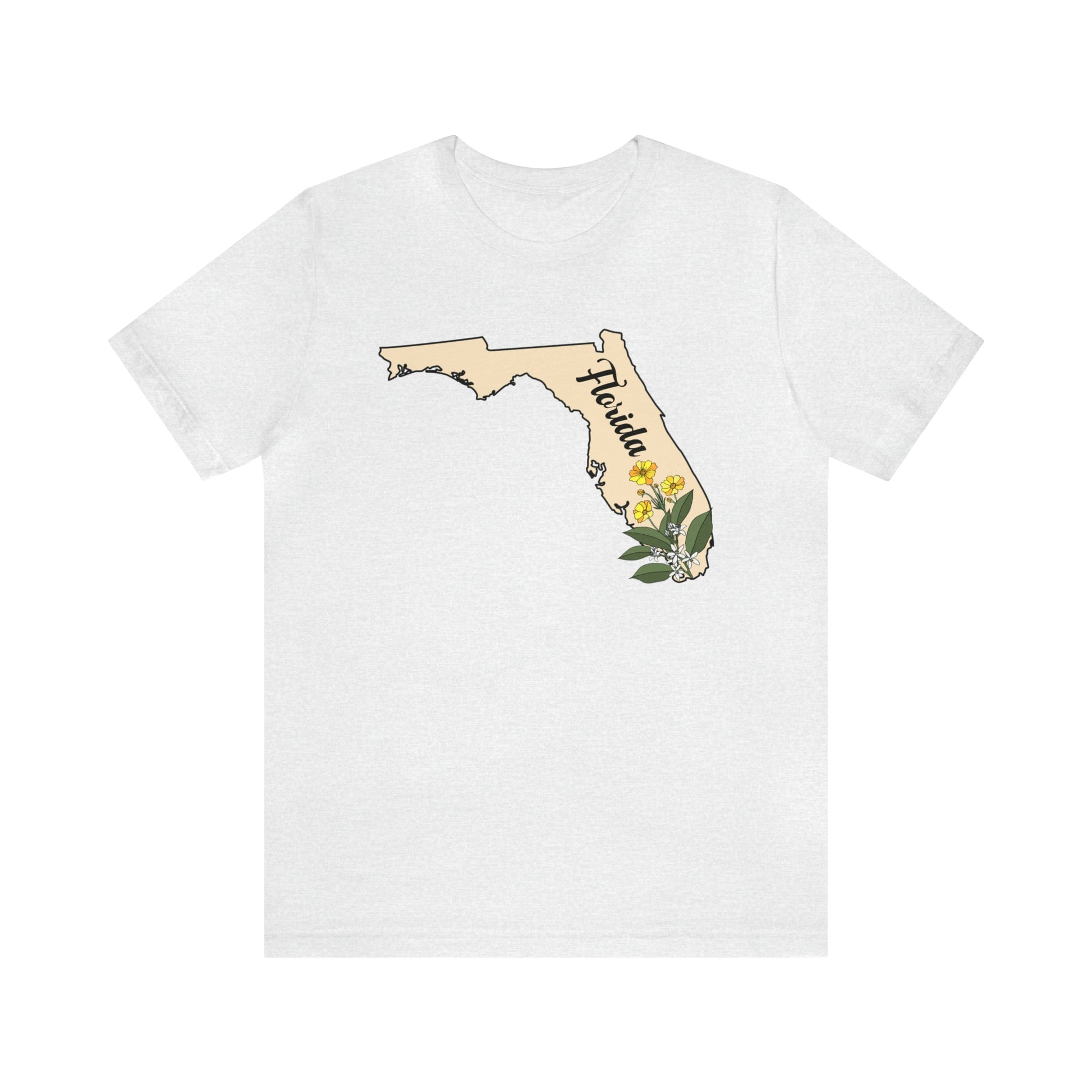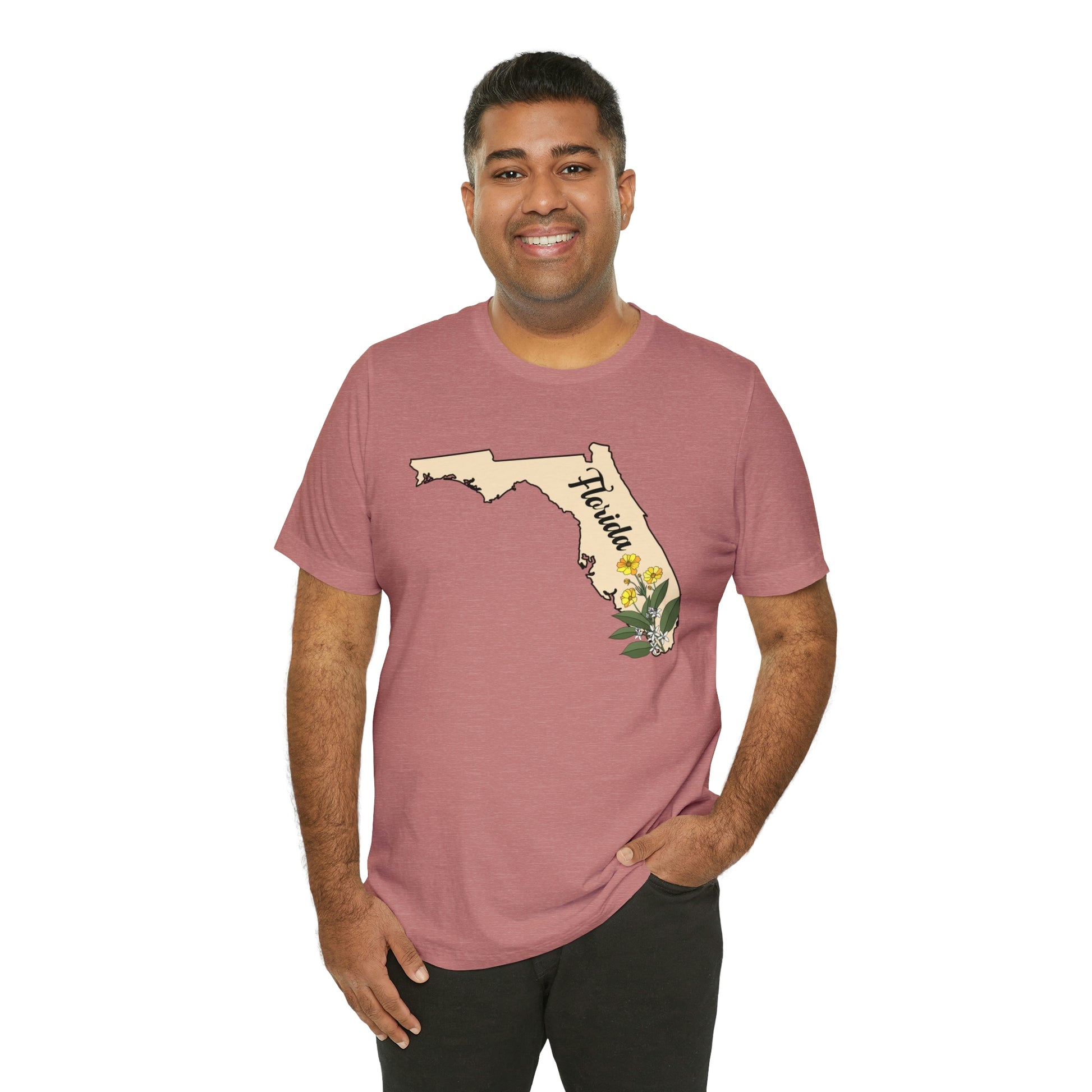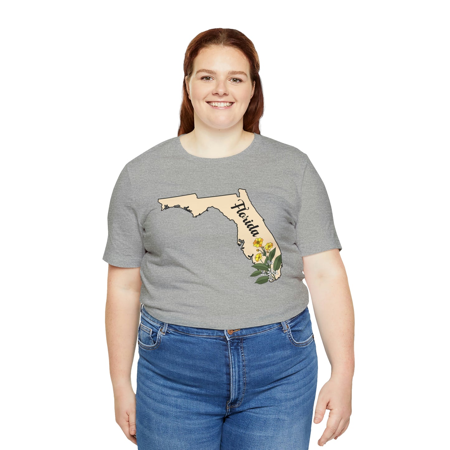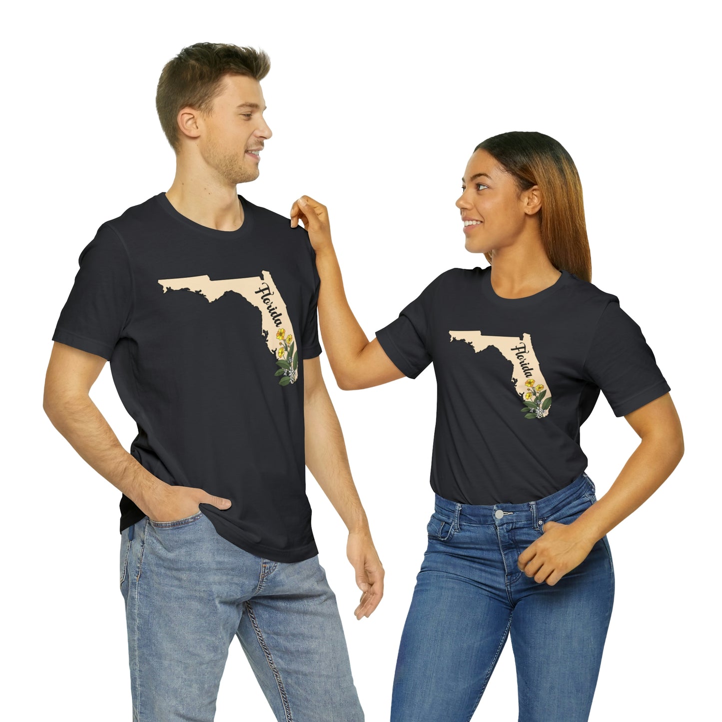 Show off your love and pride in Florida with this classic unisex short sleeve t-shirt showing Florida with a orange blossom on it. This tee fits like a well-loved favorite. Soft cotton and quality print make you fall in love with it over and over again. These t-shirts have ribbed knit collars to bolster shaping. The shoulders have taping for better fit over time. Dual side seams hold the garment's shape for longer.