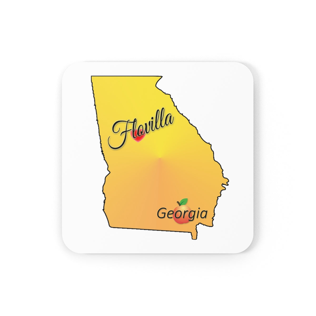 This coaster set comes with 4 coasters in one size. They are made with a high-gloss top and feature a cork back to prevent sliding.
