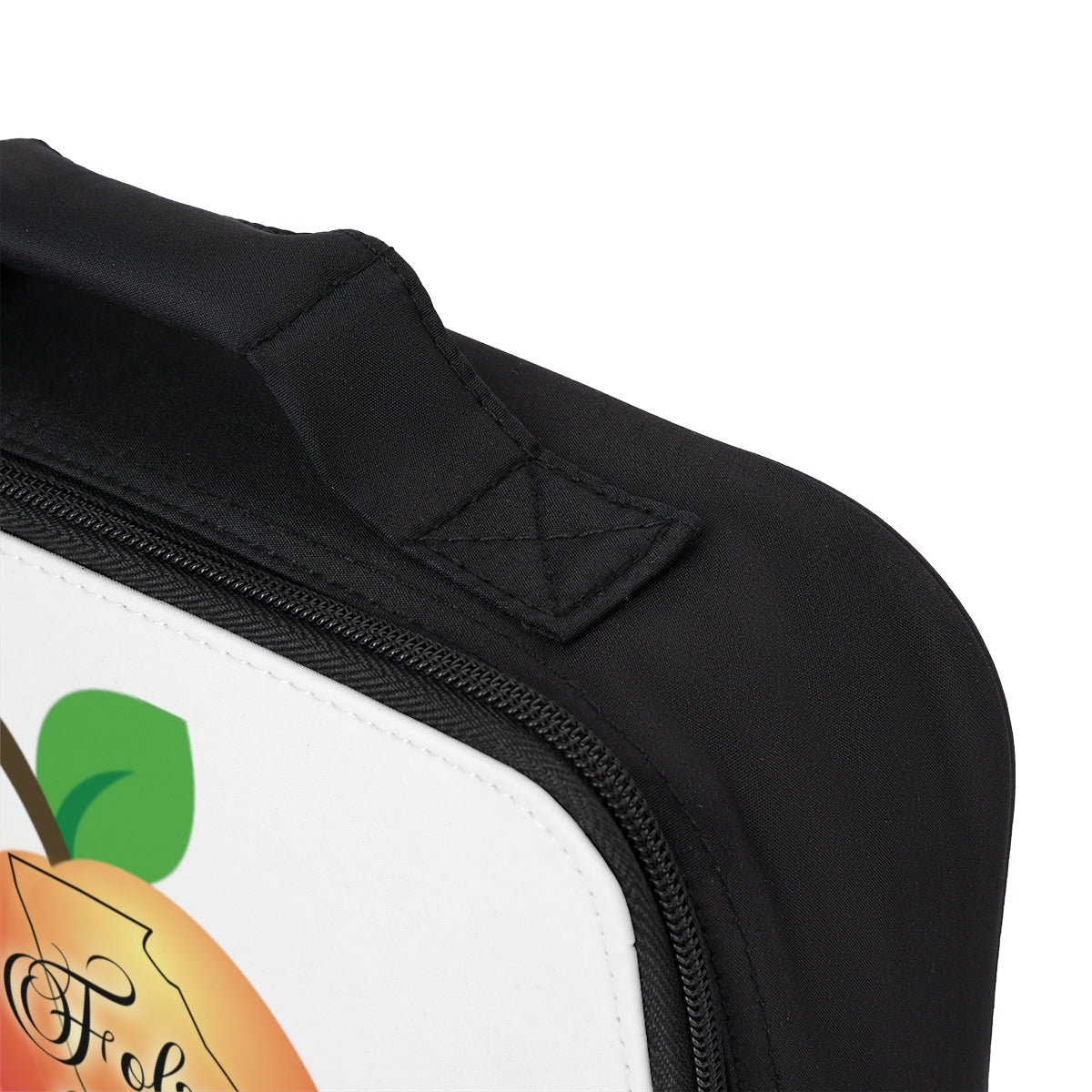 Show your love and pride in your home town or county. This lunch bag has a zippered closure, a convenient carrying handle, and a durable fabric made with 20% cotton - 80% polyester.