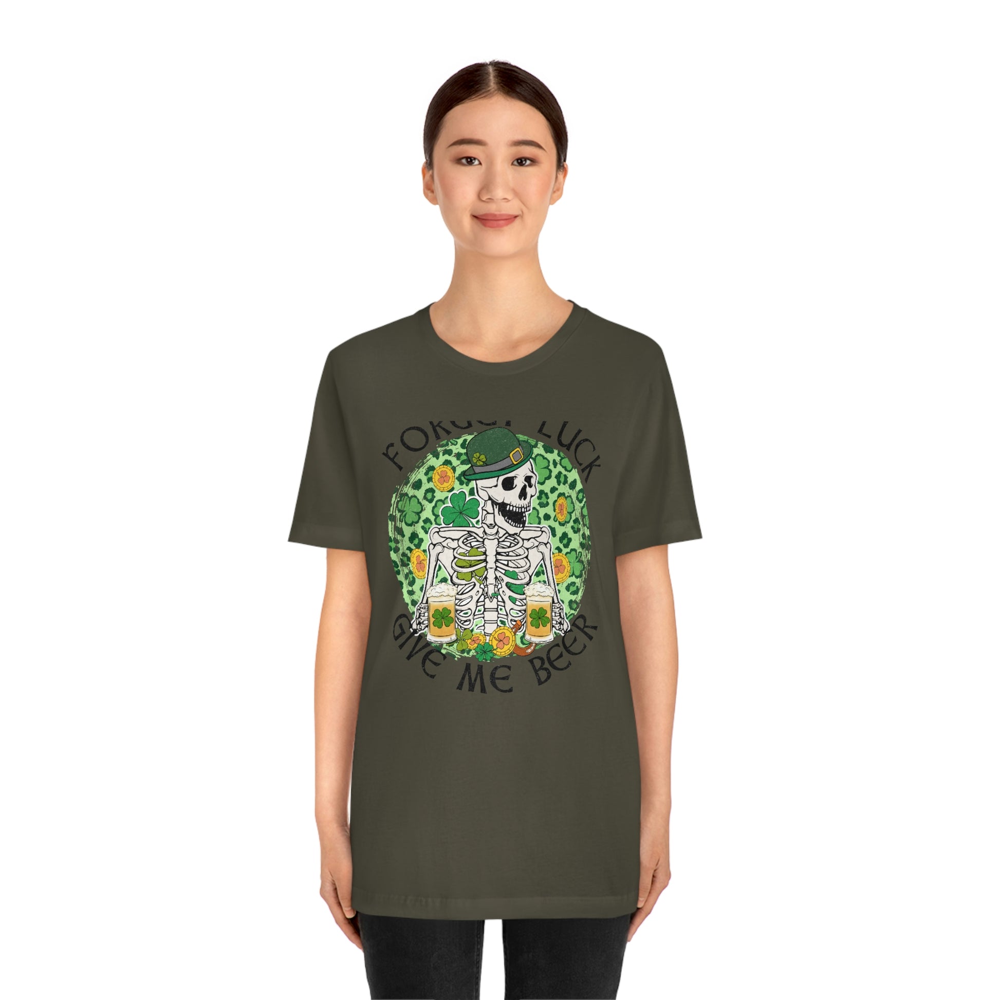 Forget Luck Give Me a Beer St. Patrick's Day Unisex Jersey Short Sleeve Tee