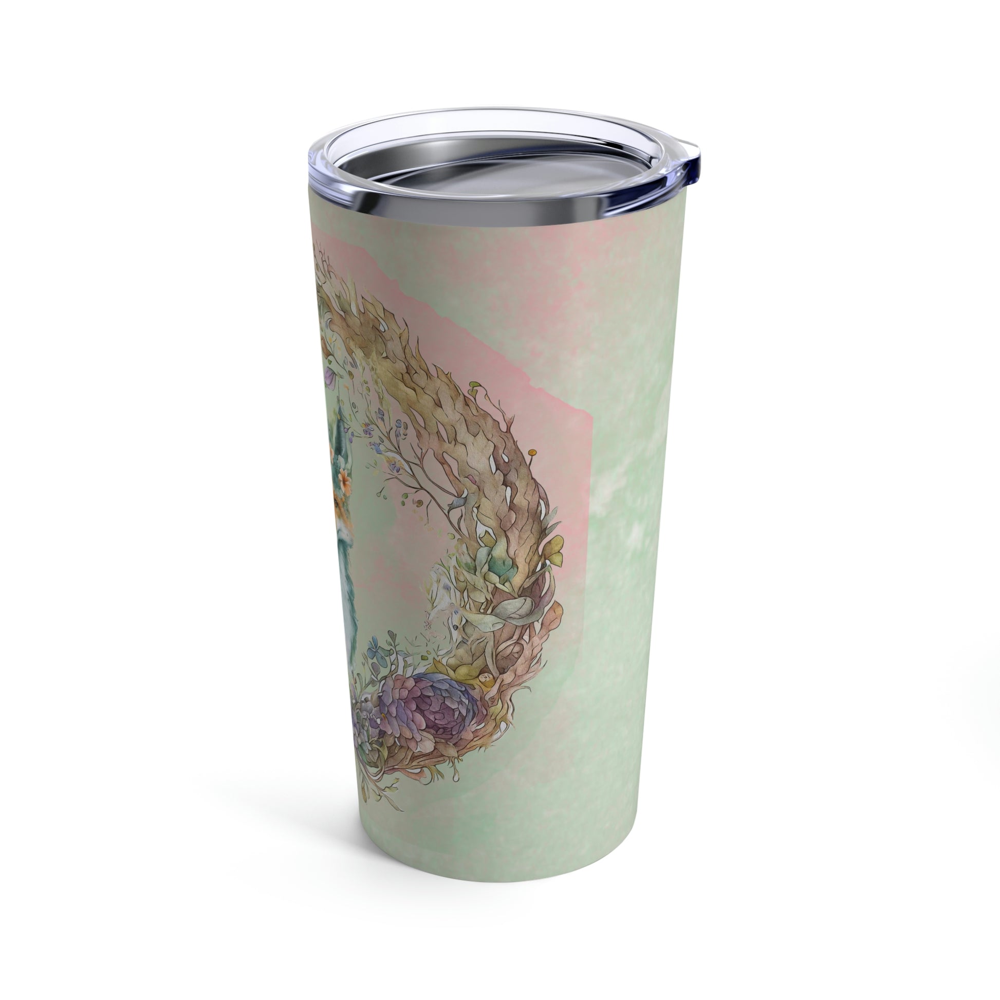 Fox Spring Flowers Wreath Watercolor Tumbler 20oz