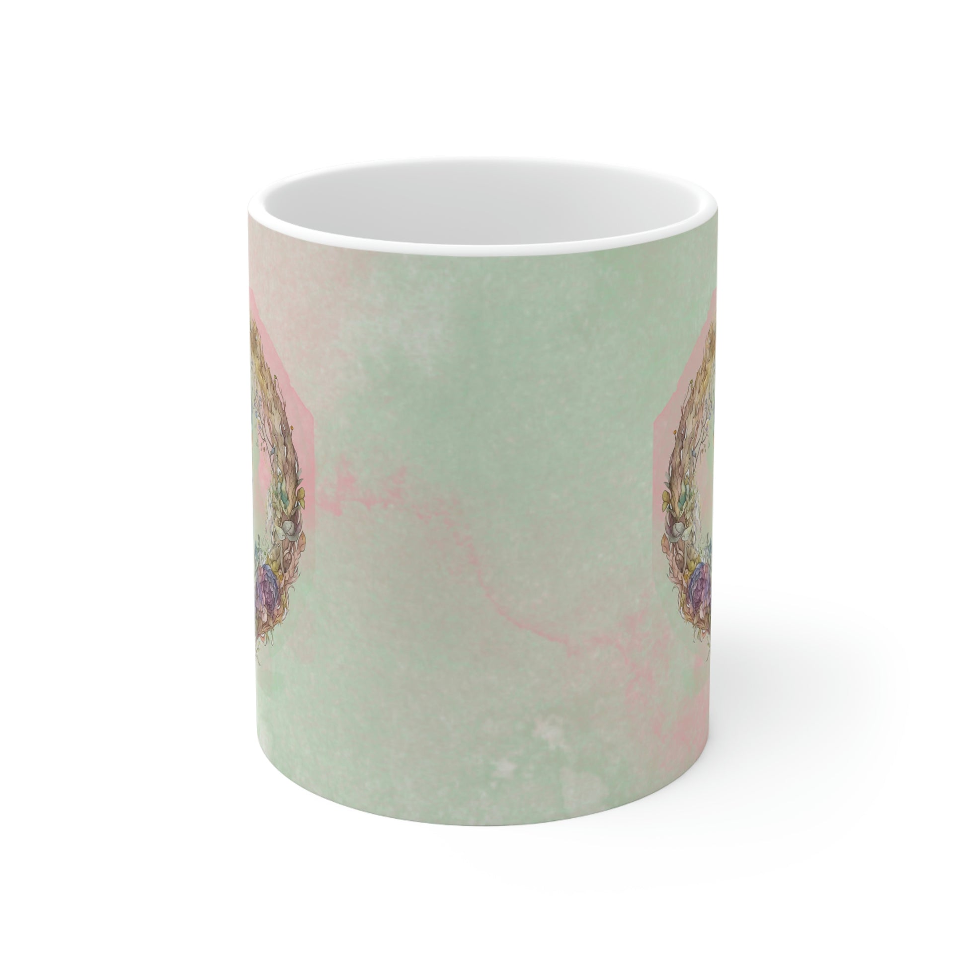 Warm-up with a nice cuppa out of this ceramic coffee mug with a colorful girl in fox in a wreath watercolor design. It’s BPA and Lead-free, microwave & dishwasher-safe, and made of white, durable ceramic in 11-ounce size.
