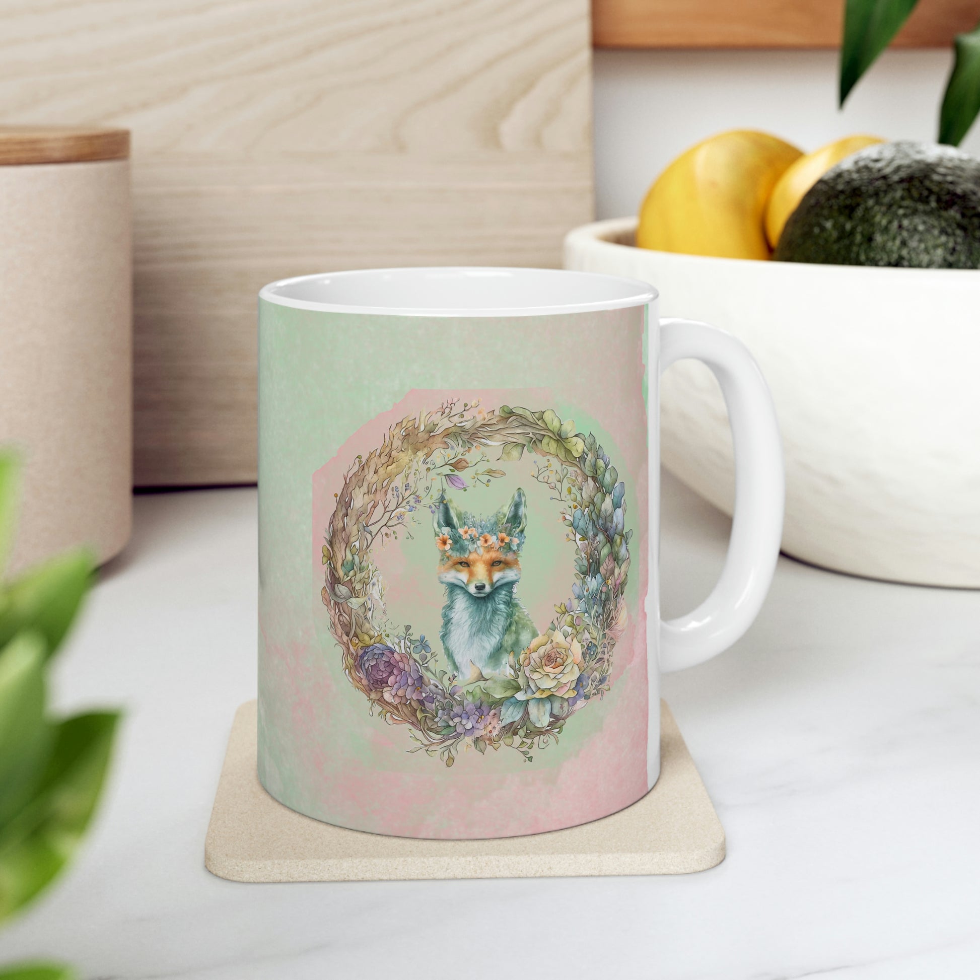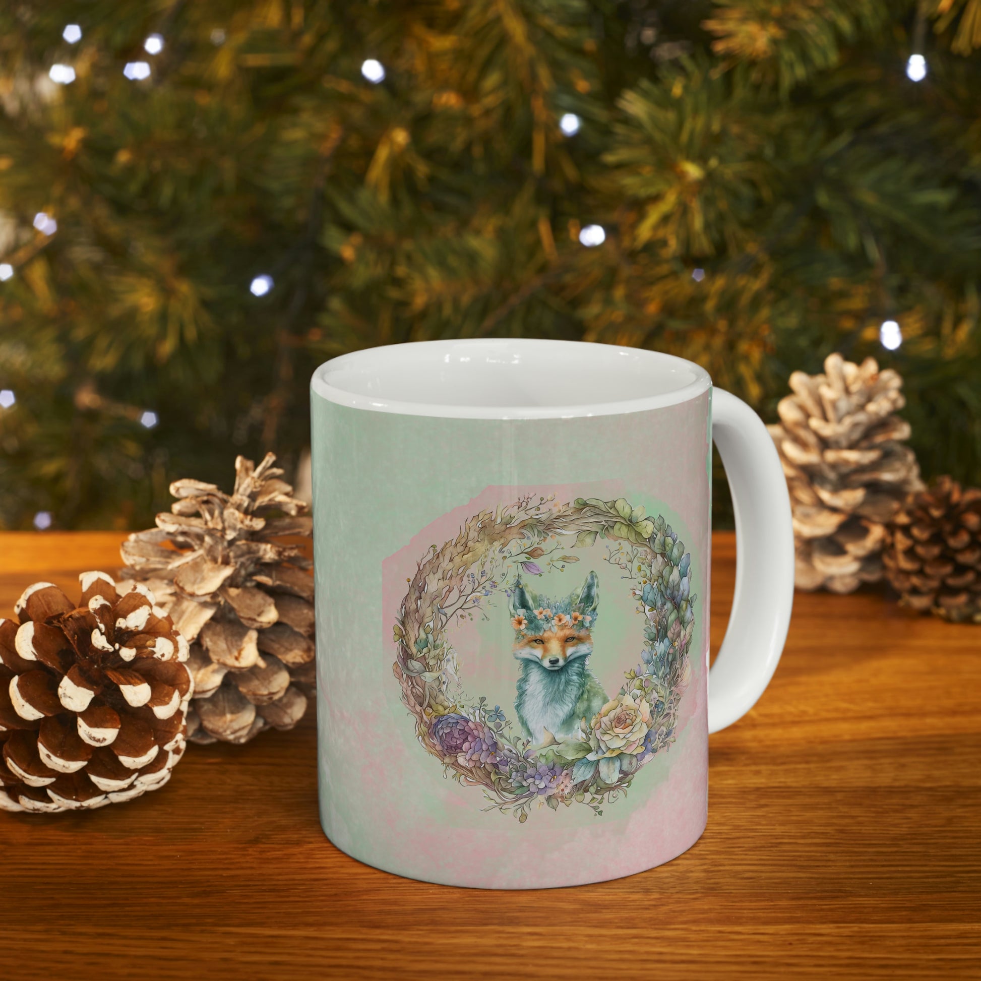 Fox Wreath Watercolor Ceramic Mug 11oz