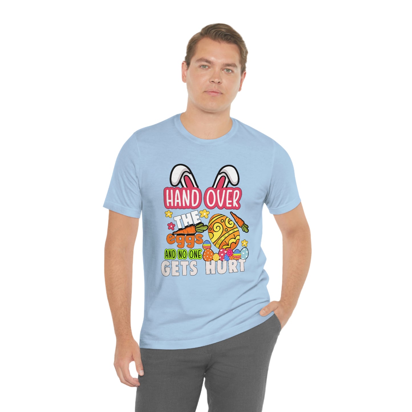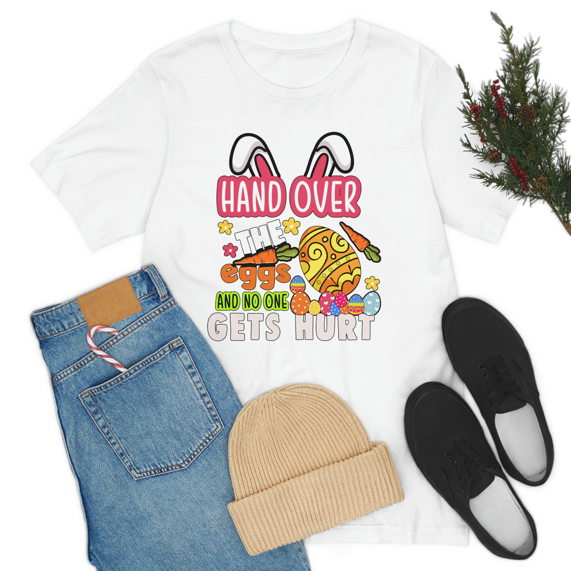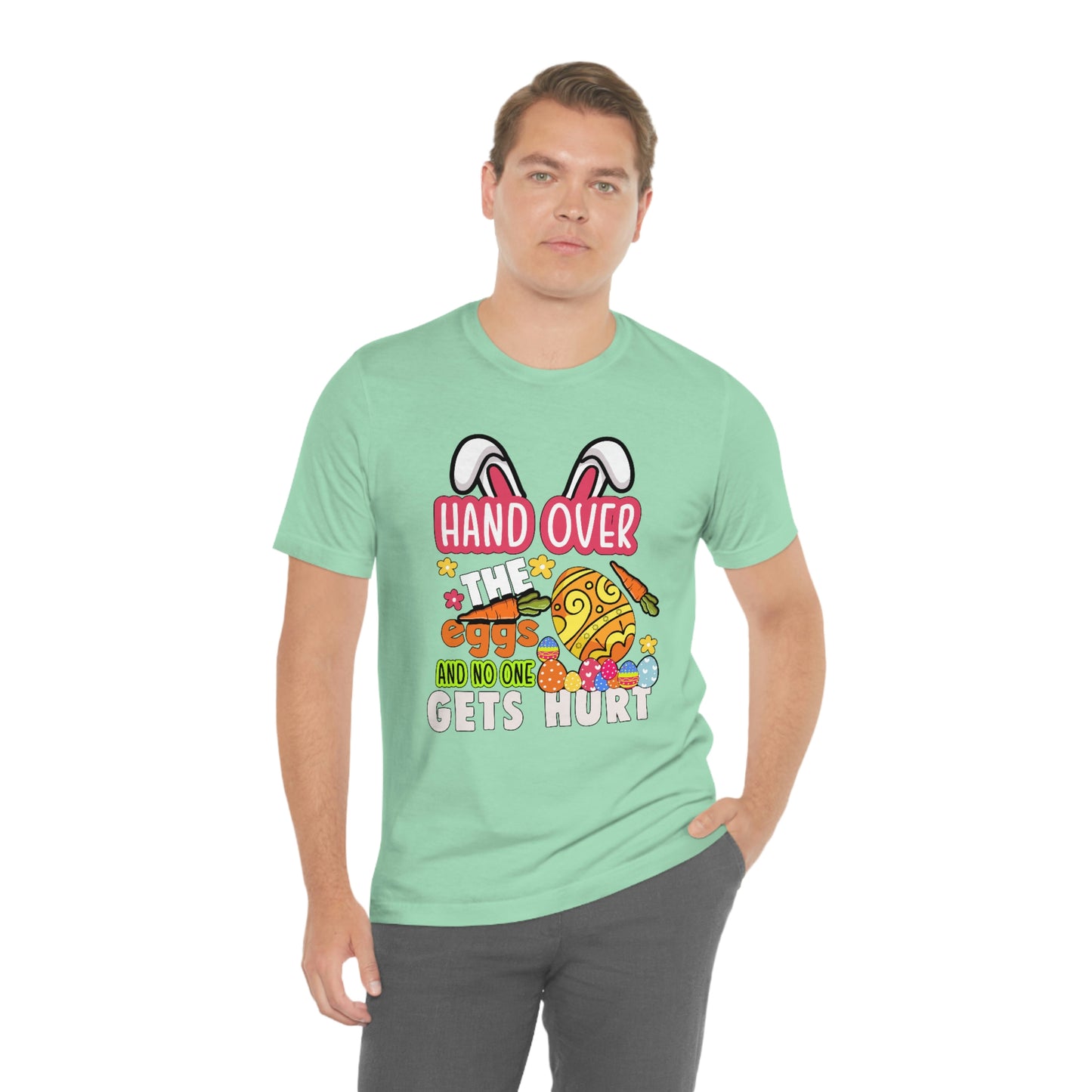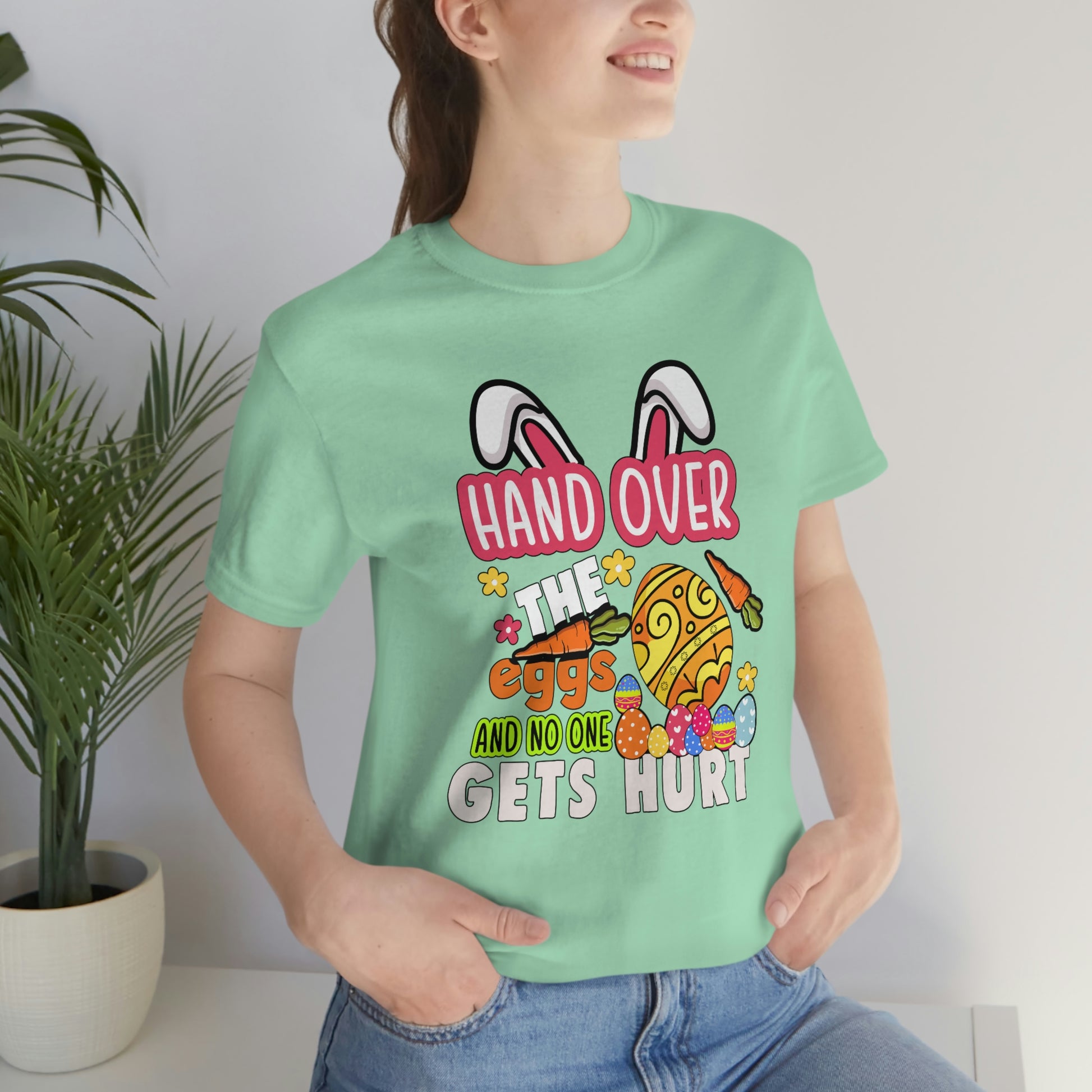 Hand Over the Eggs and No One Gets Hurt Spring Easter Unisex Jersey Short Sleeve Tee