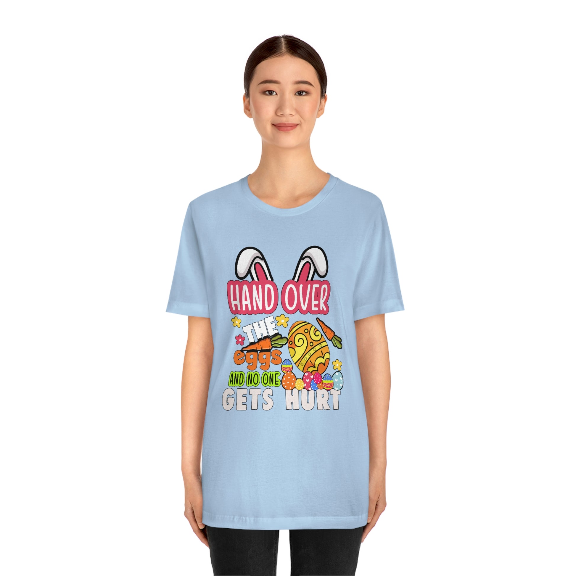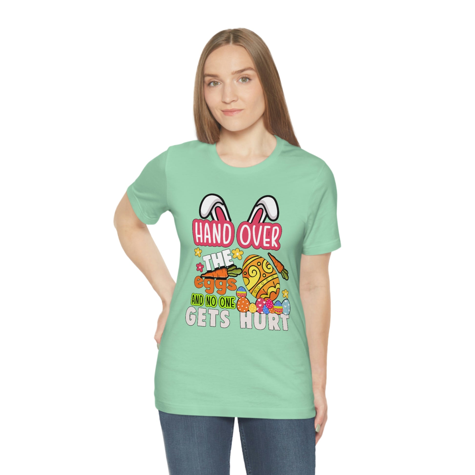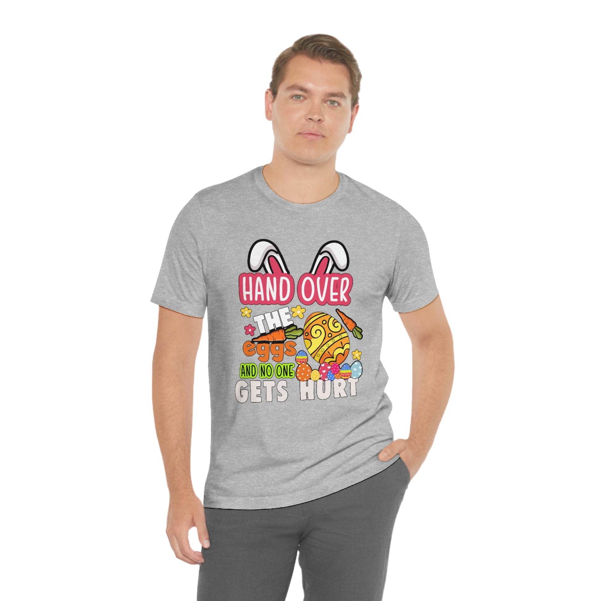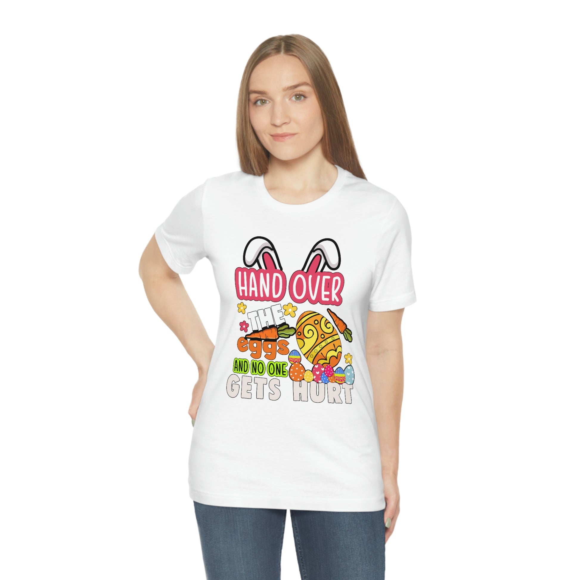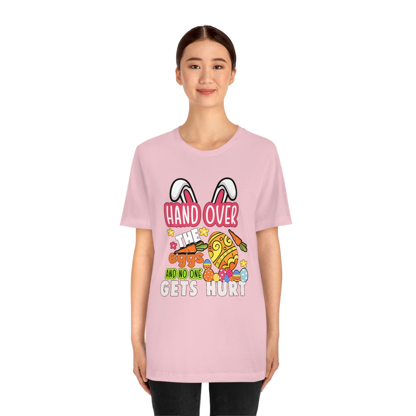 Hand Over the Eggs and No One Gets Hurt Spring Easter Unisex Jersey Short Sleeve Tee