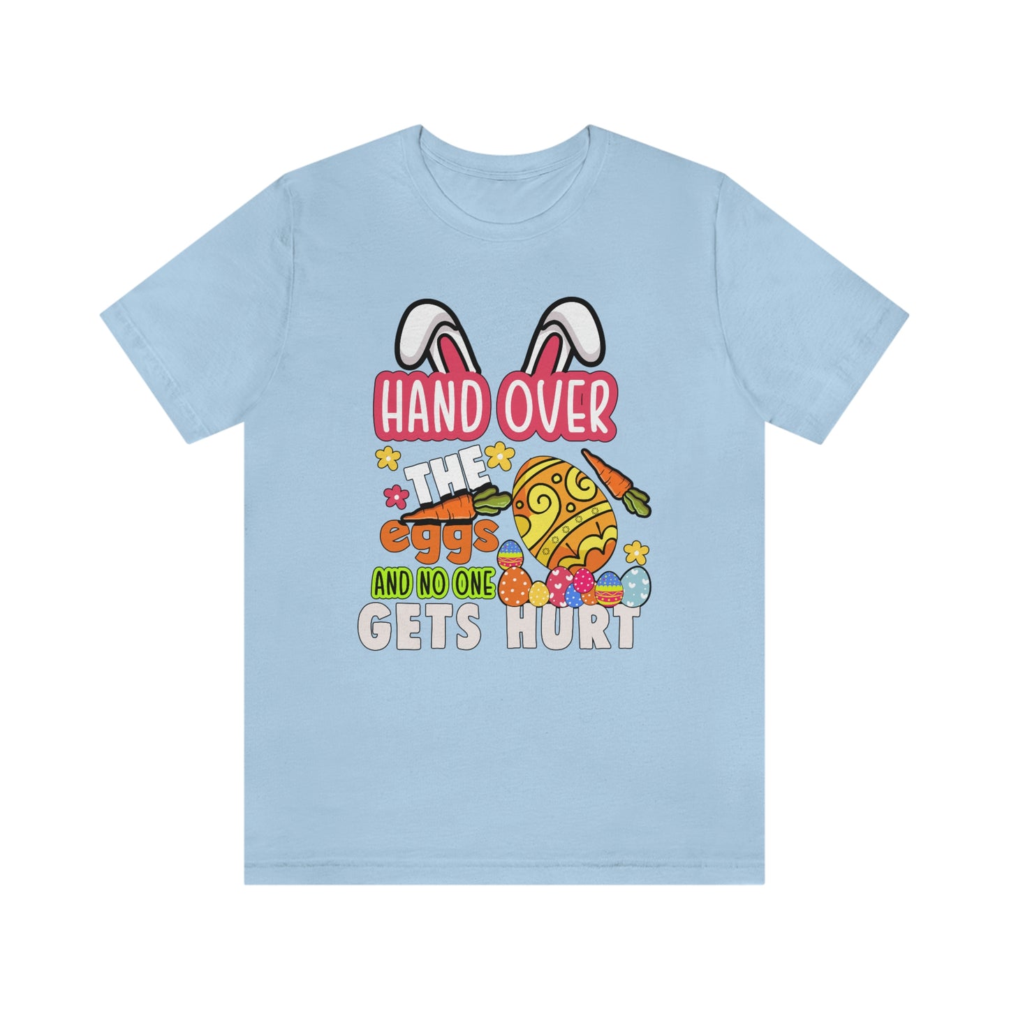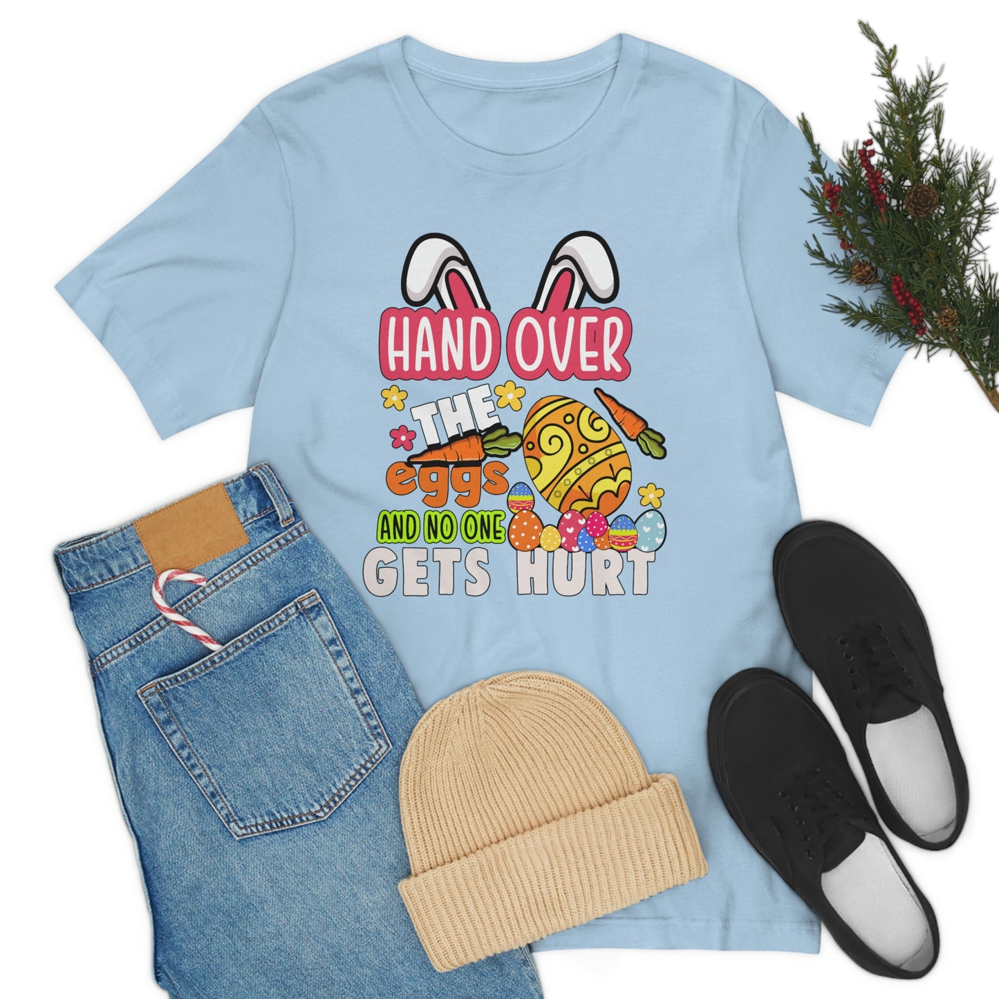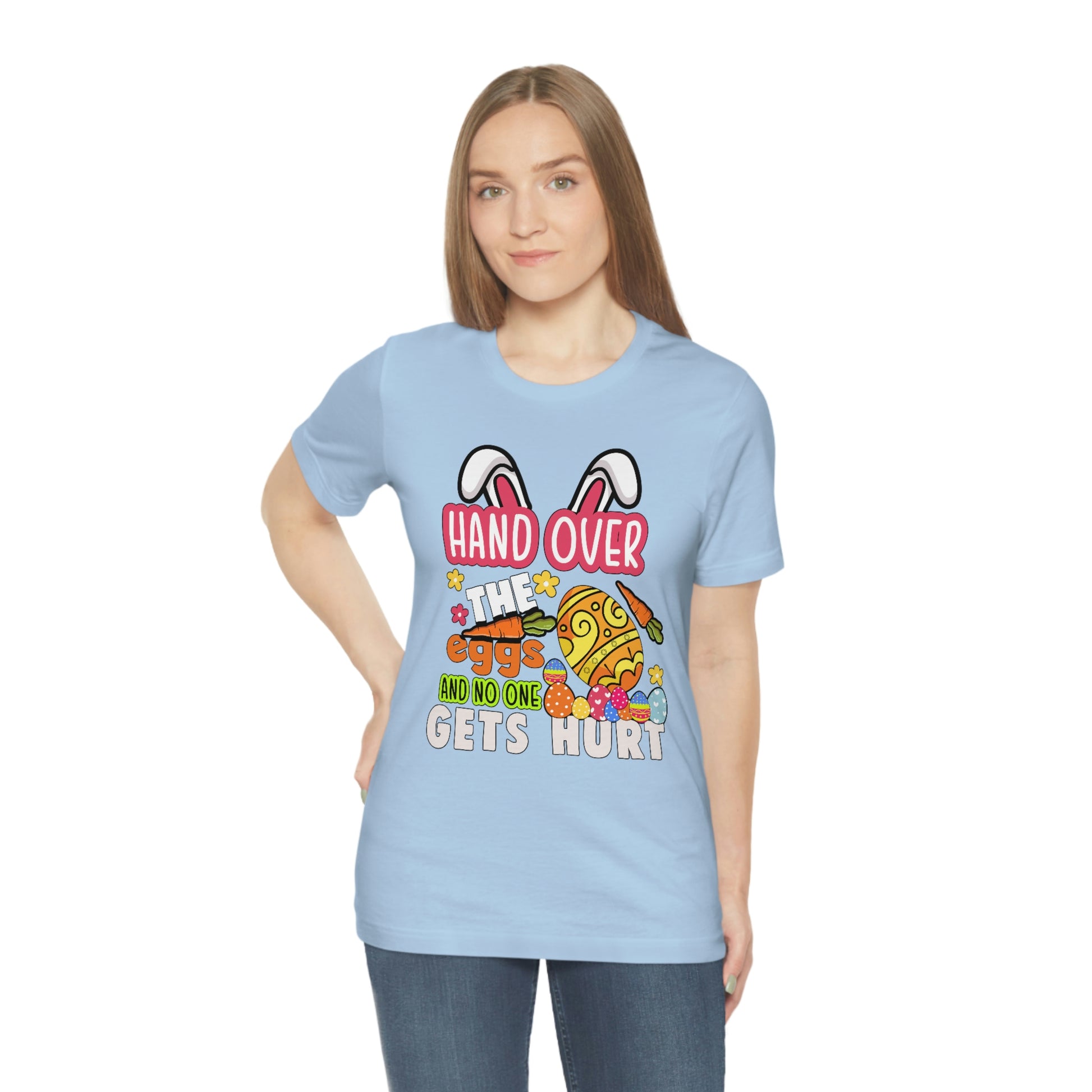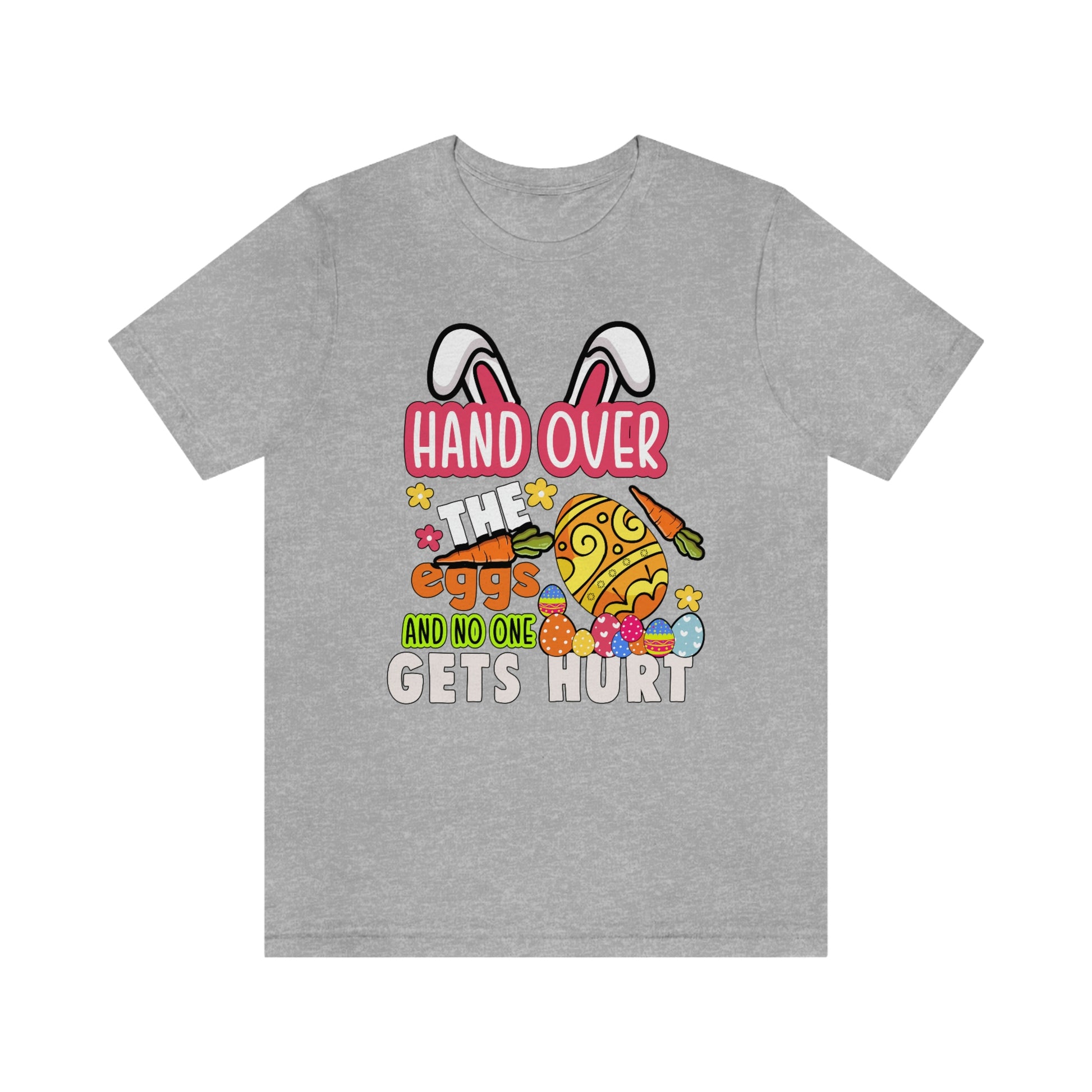 Hand Over the Eggs and No One Gets Hurt Spring Easter Unisex Jersey Short Sleeve Tee